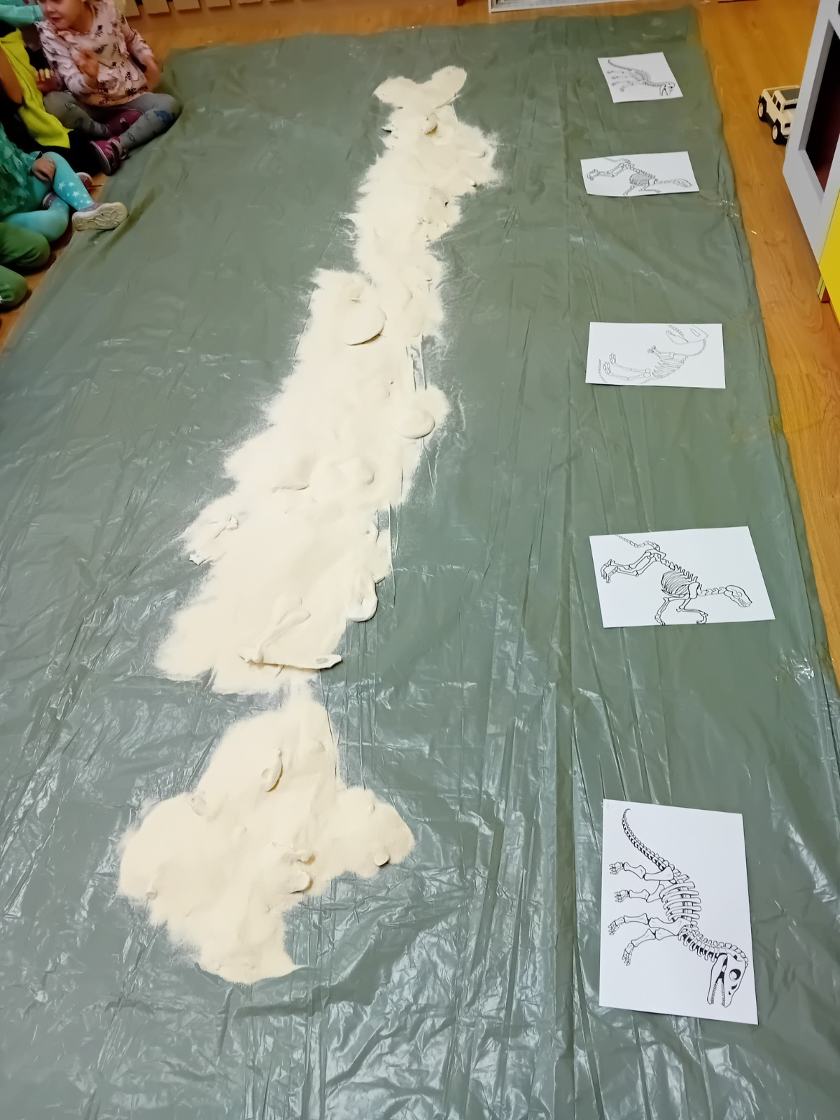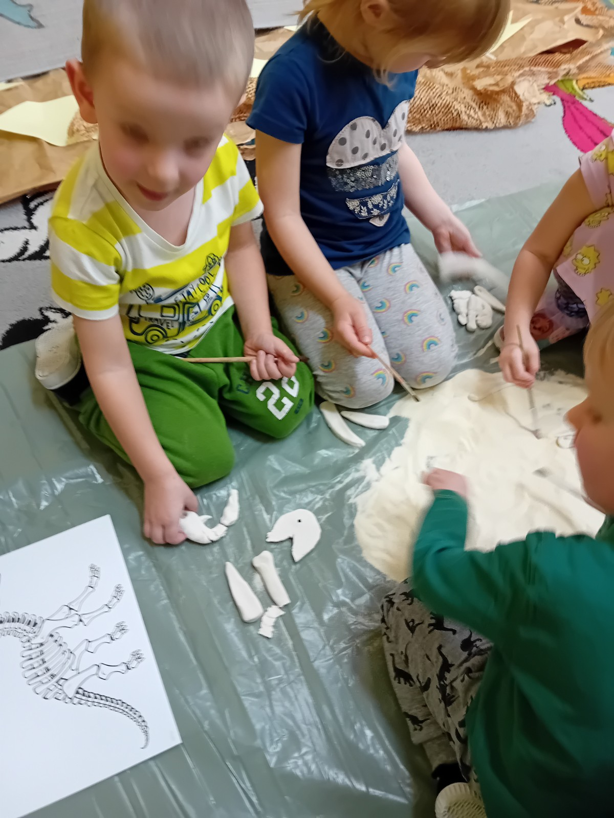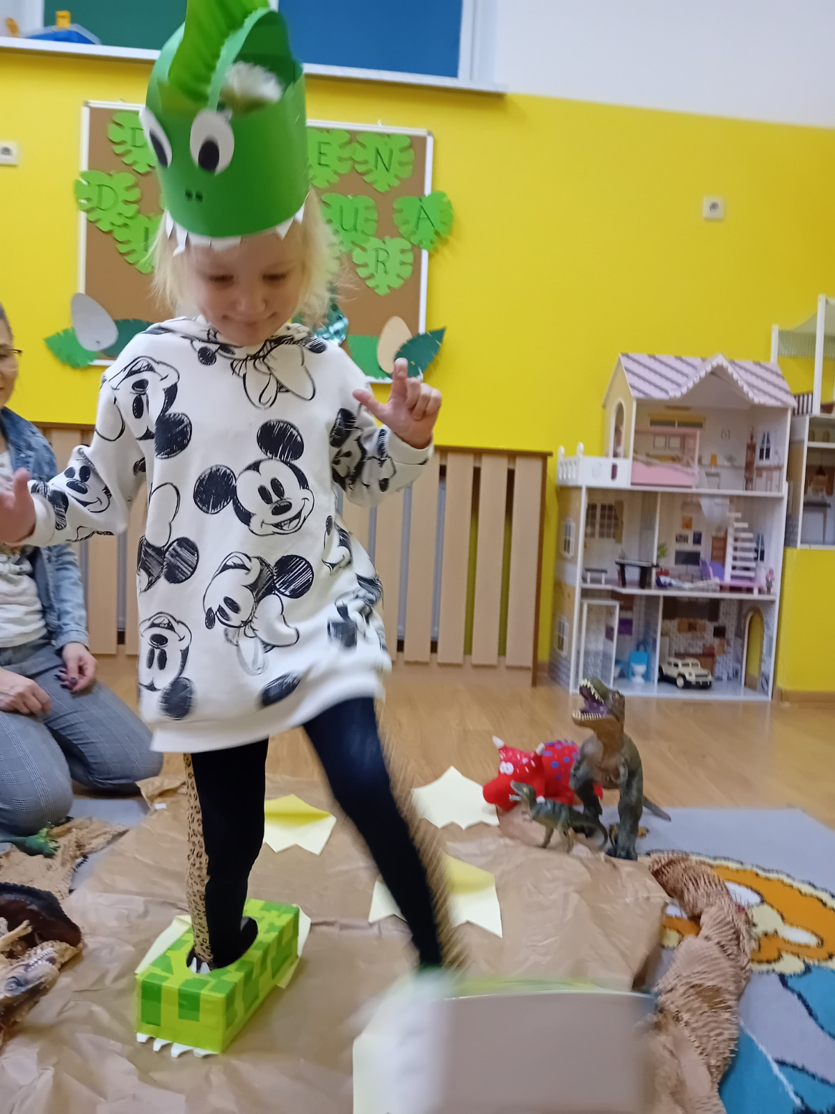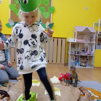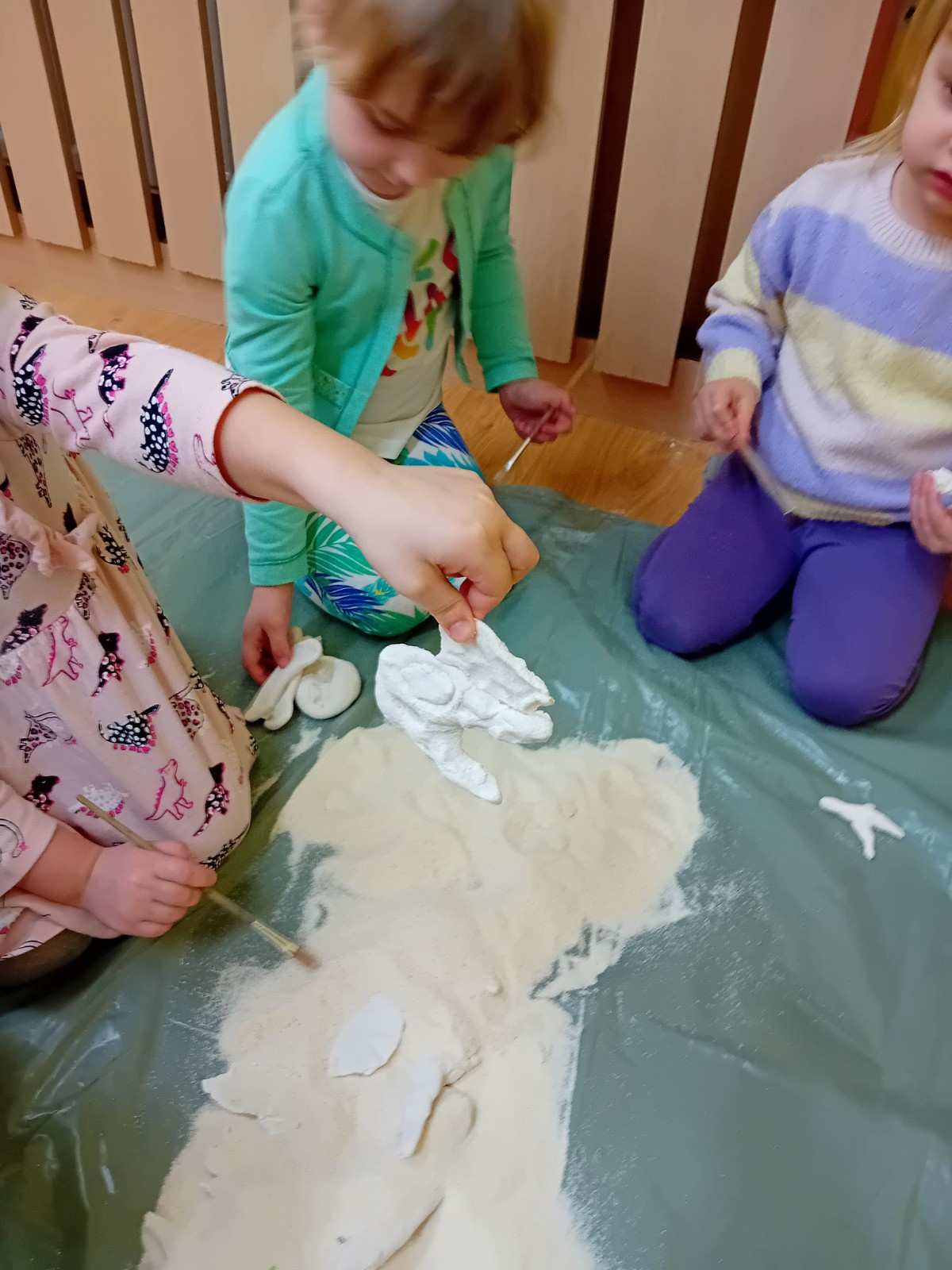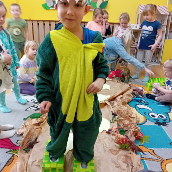 Aktywny Dzień Dinozaura w grupie Krasnale. Miedzy innymi podążaliśmy śladami dinozaurów, poznaliśmy pracę paleontologa na wykopaliskach. Zapoznaliśmy wiele gatunków dinozaurów przyniesionych przez dzieci.
