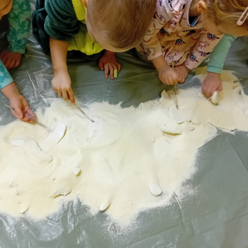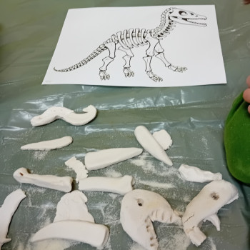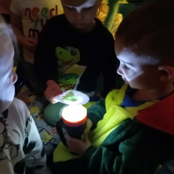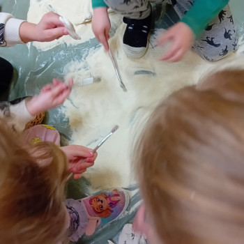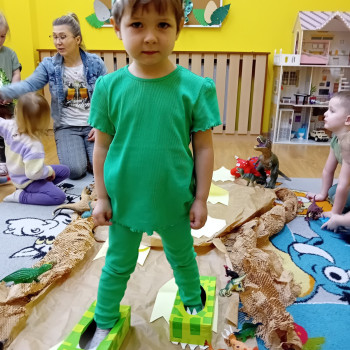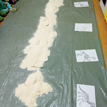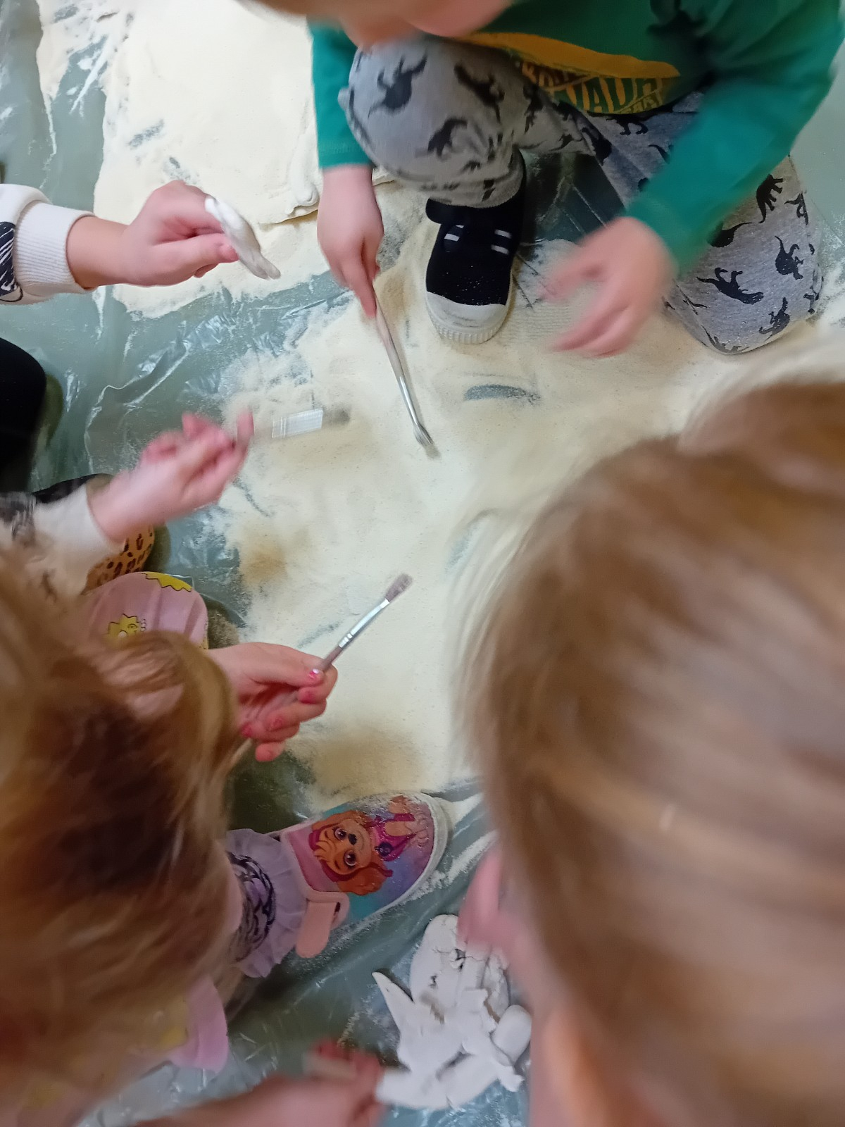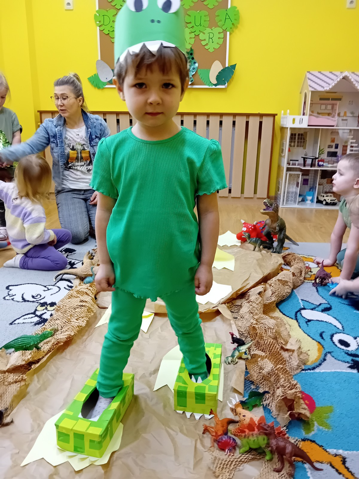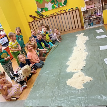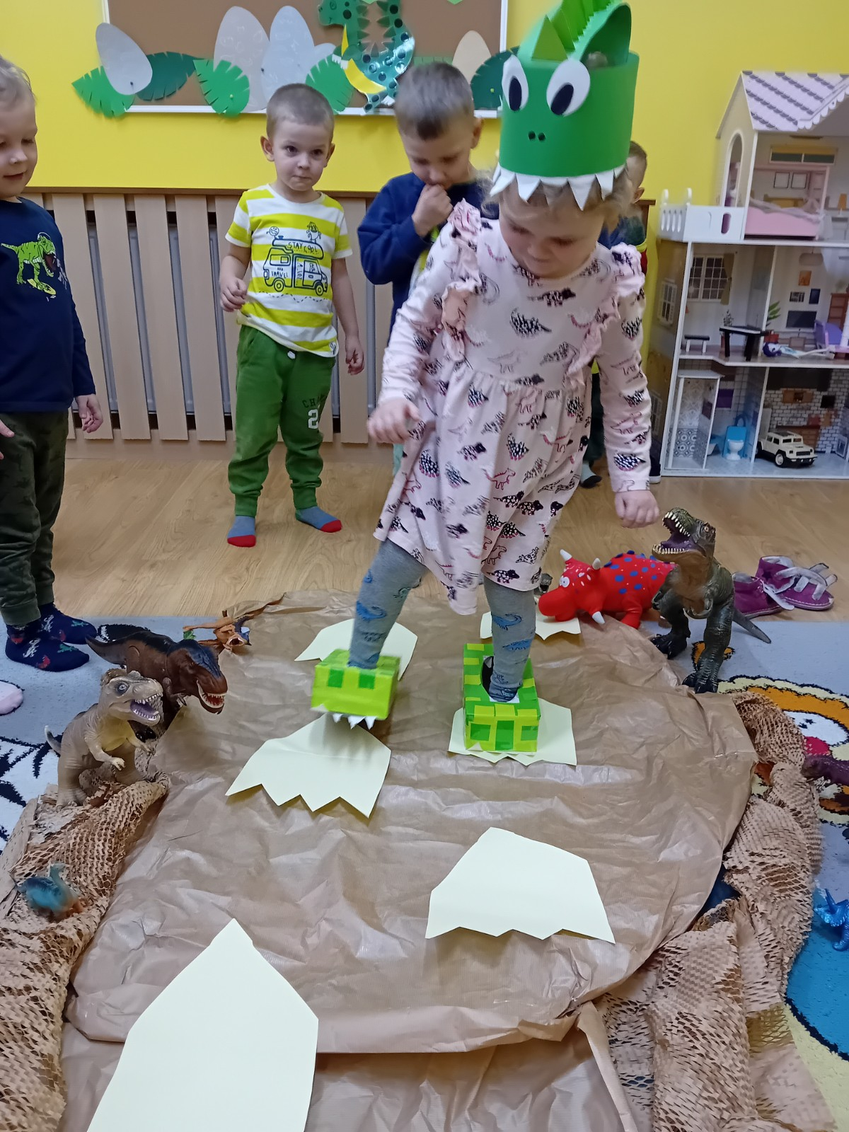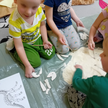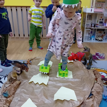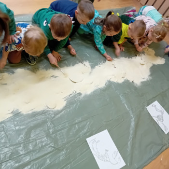 Aktywny Dzień Dinozaura w grupie Krasnale. Miedzy innymi podążaliśmy śladami dinozaurów, poznaliśmy pracę paleontologa na wykopaliskach. Zapoznaliśmy wiele gatunków dinozaurów przyniesionych przez dzieci.