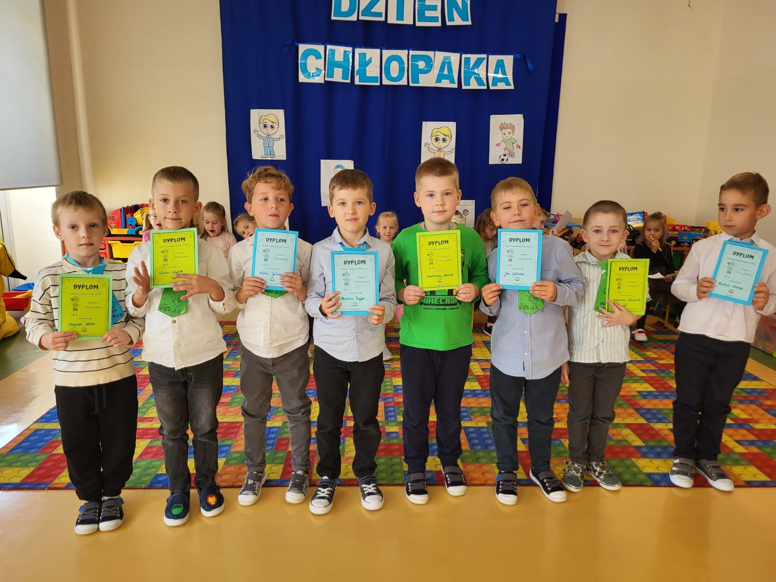 Dzień upłynął w miłej atmosferze . Były wspólne zabawy i gry . A także konkursy dla chłopców , którzy na koniec otrzymali dyplomy superchłopaka.