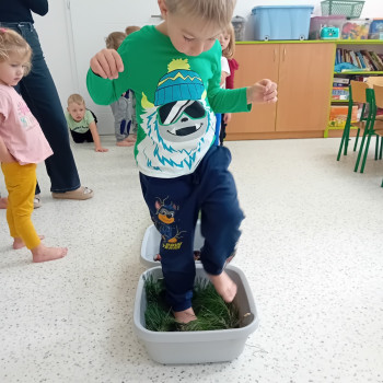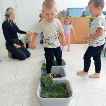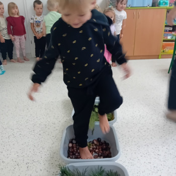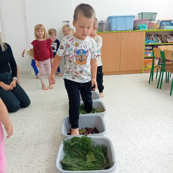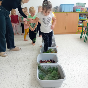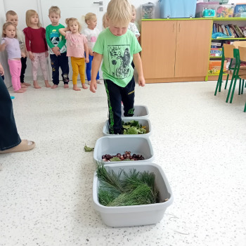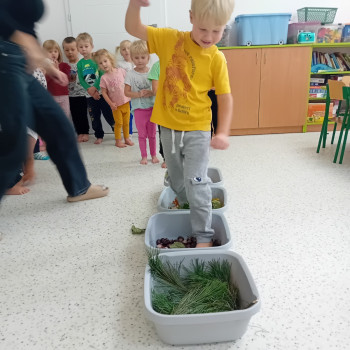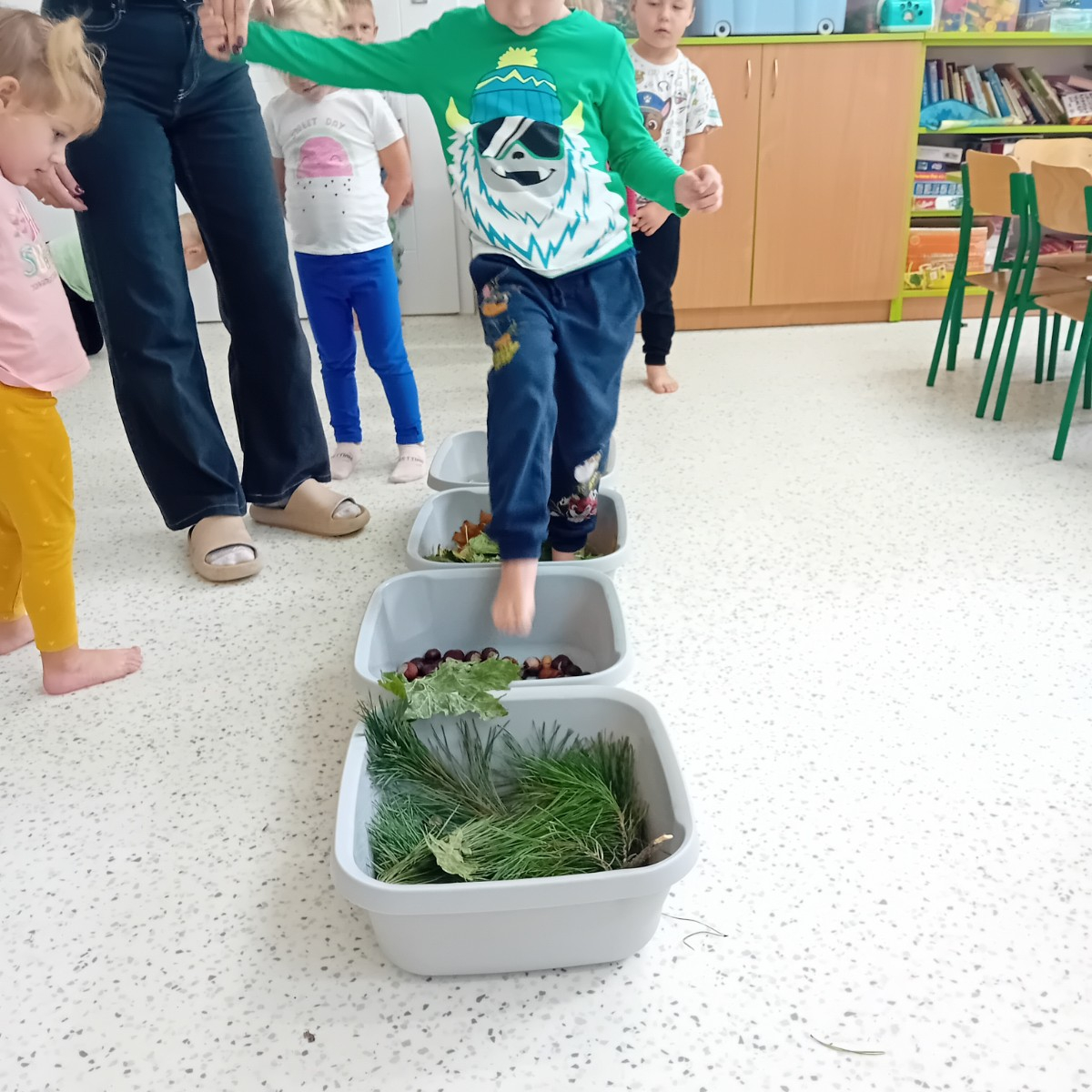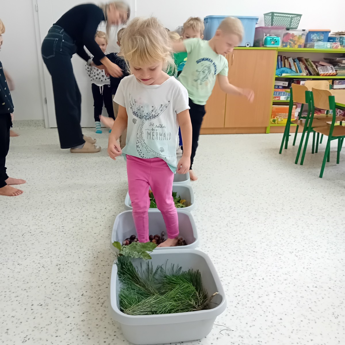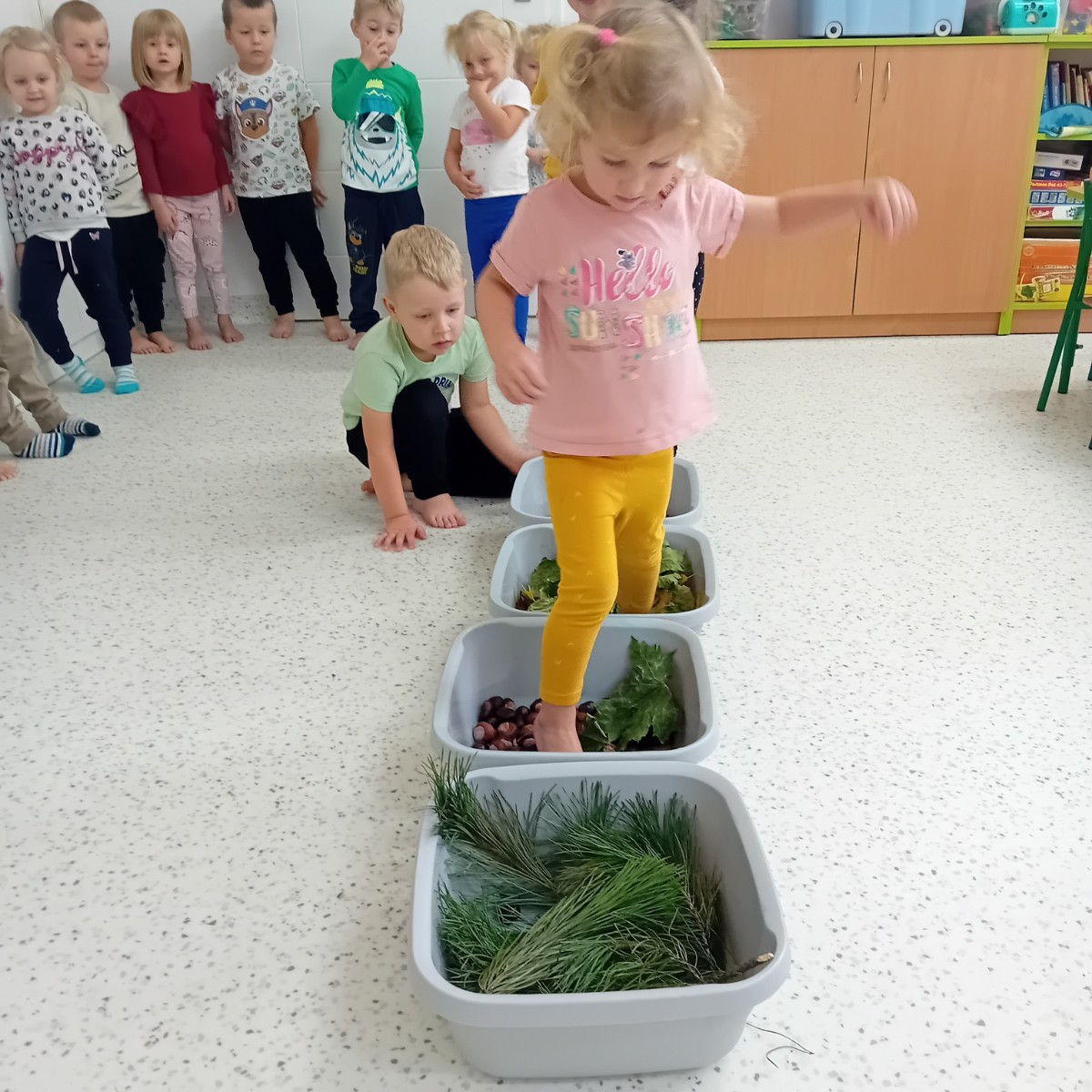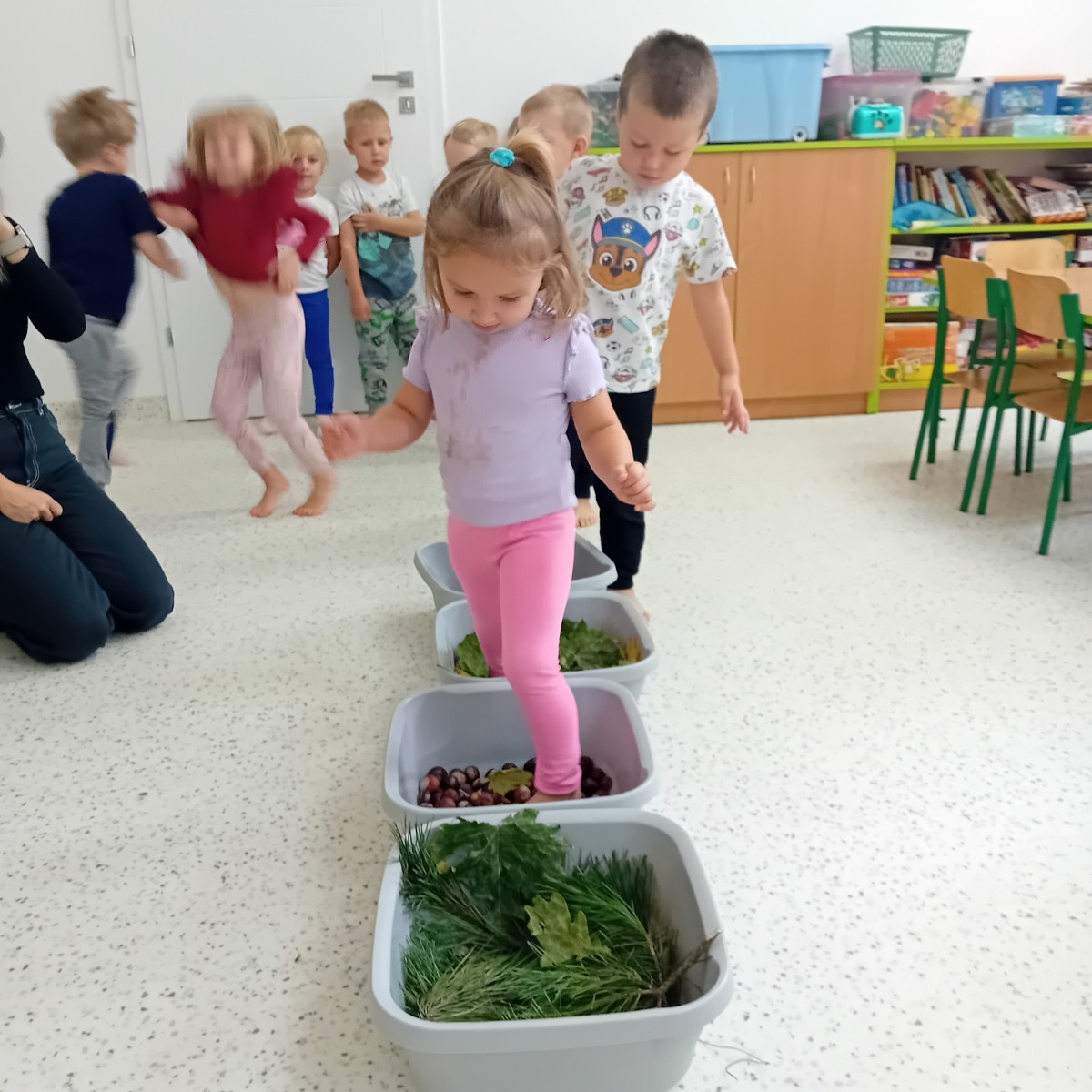 10 października obchodziliśmy w naszym przedszkolu Dzień Drzewa. Dzieci poznały budowę drzewa co nam daje drzewo i co możemy zrobić z drzewa. Przyniesione przez Dzieci dary jesieni zostały wykorzystane do utwożnia ścieżki sensoryczne. Krasnale próbowały przełamywać swoje lęki poprzez dobrą zabawę.