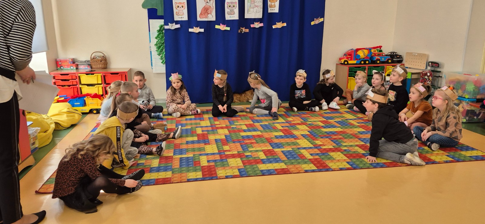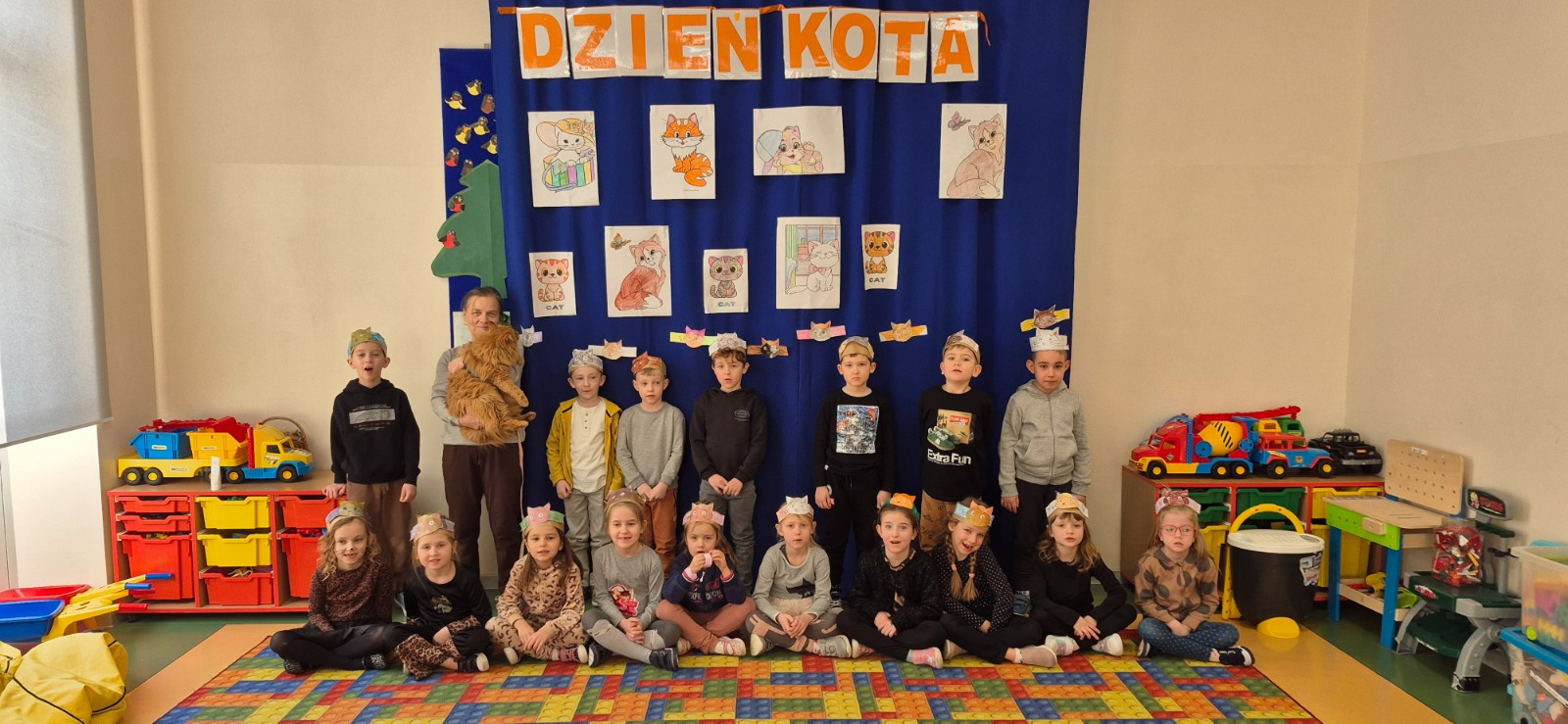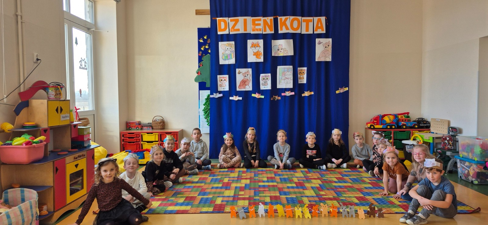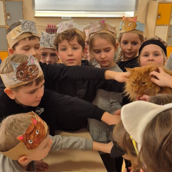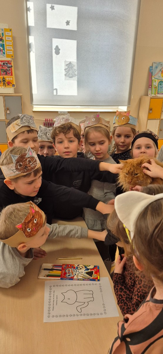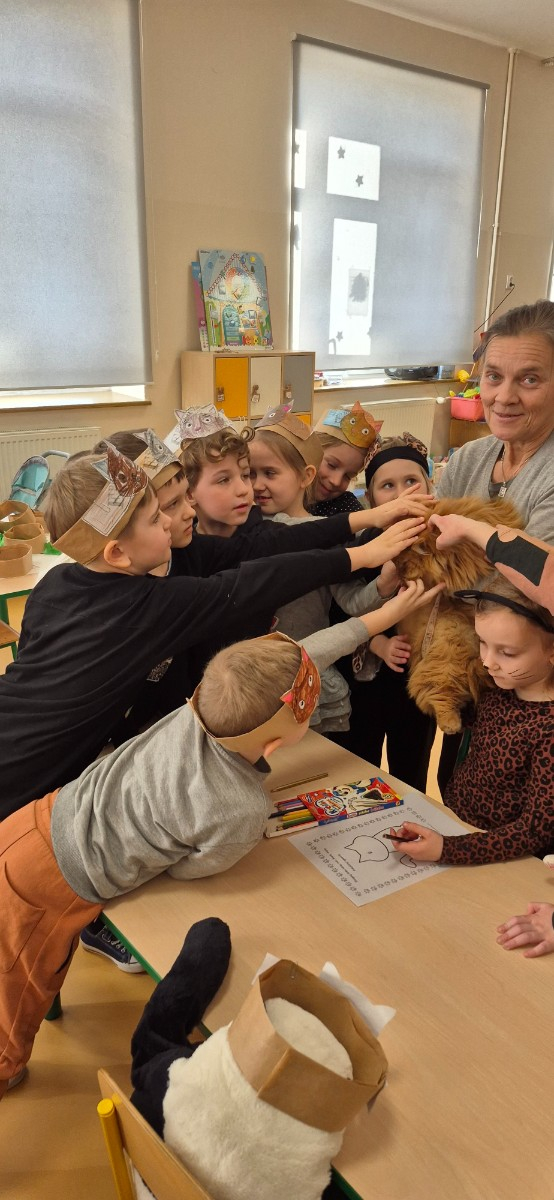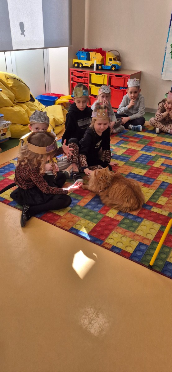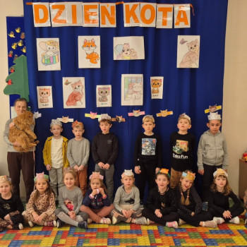 Dzień Kota w naszej zerówce obchodziliśmy trochę później ,Z tej okazji, przedszkolaki na zajęciach zamieniły się w kociaki. Wysłuchały opowiadania o chorym kotku a później uczyły się, w jaki sposób opiekować się tymi zwierzętami, śpiewały piosenki o kotkach, oglądały ilustracje przedstawiające milusińskie zwierzątka, dowiedziały się wiele ciekawych rzeczy na ich temat. Były też wesołe „kocie zabawy", rozwiązywanie zagadek oraz wykonanie kotka .