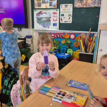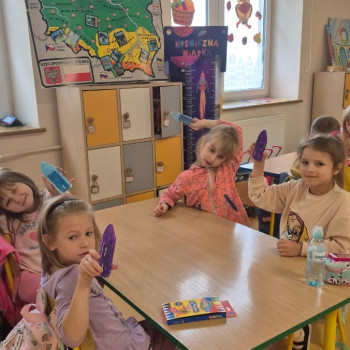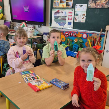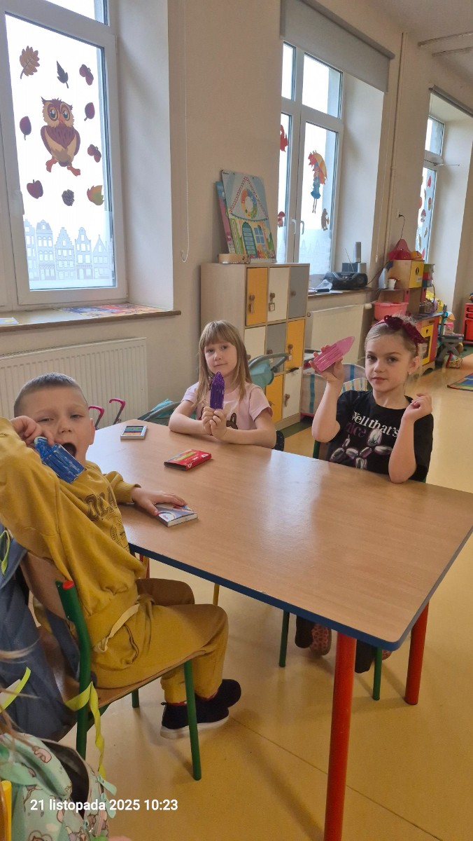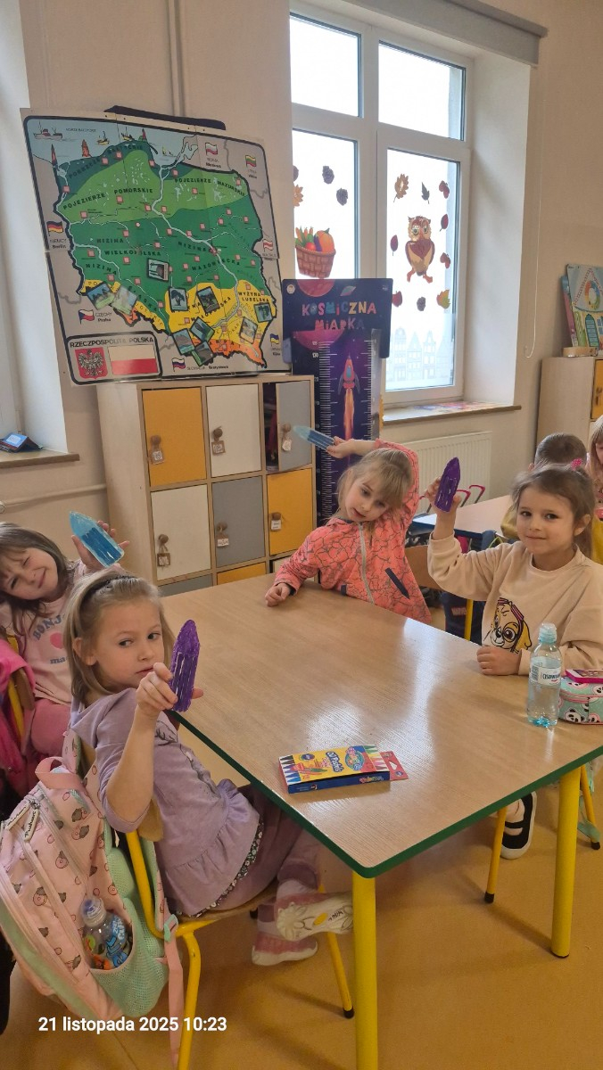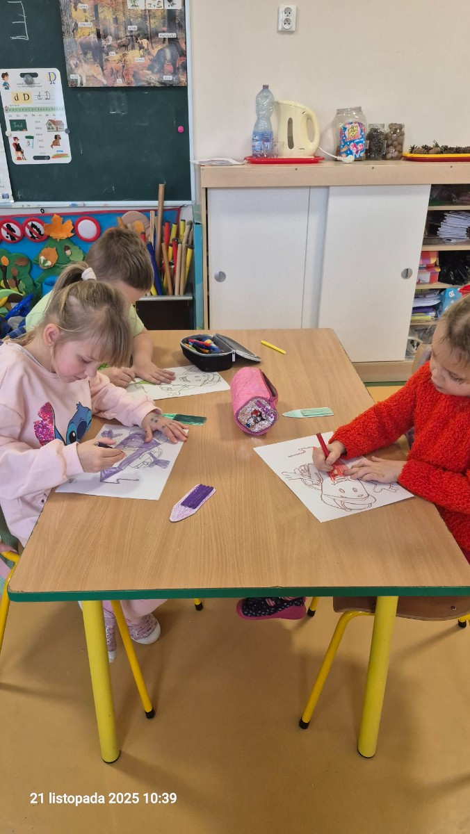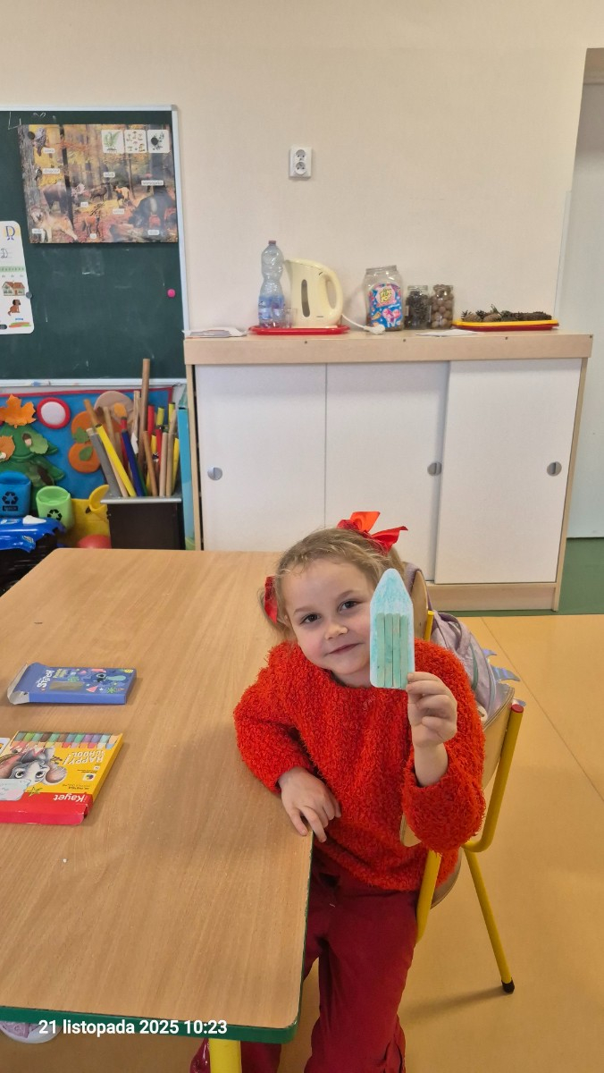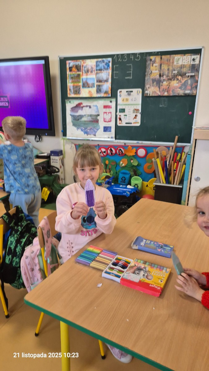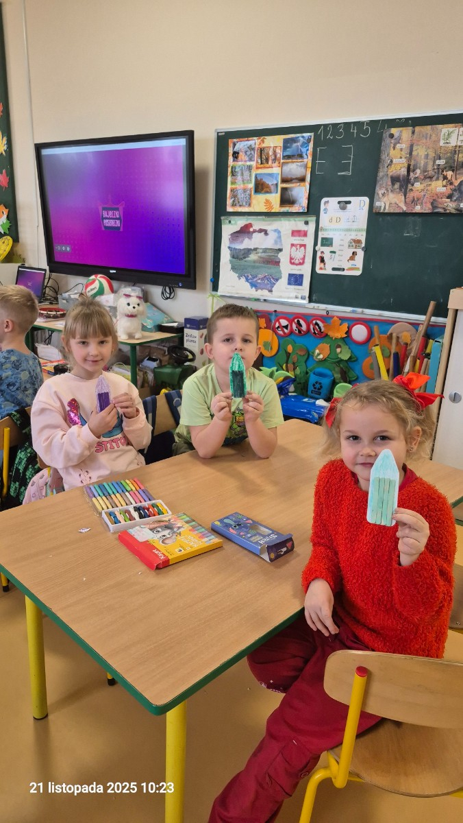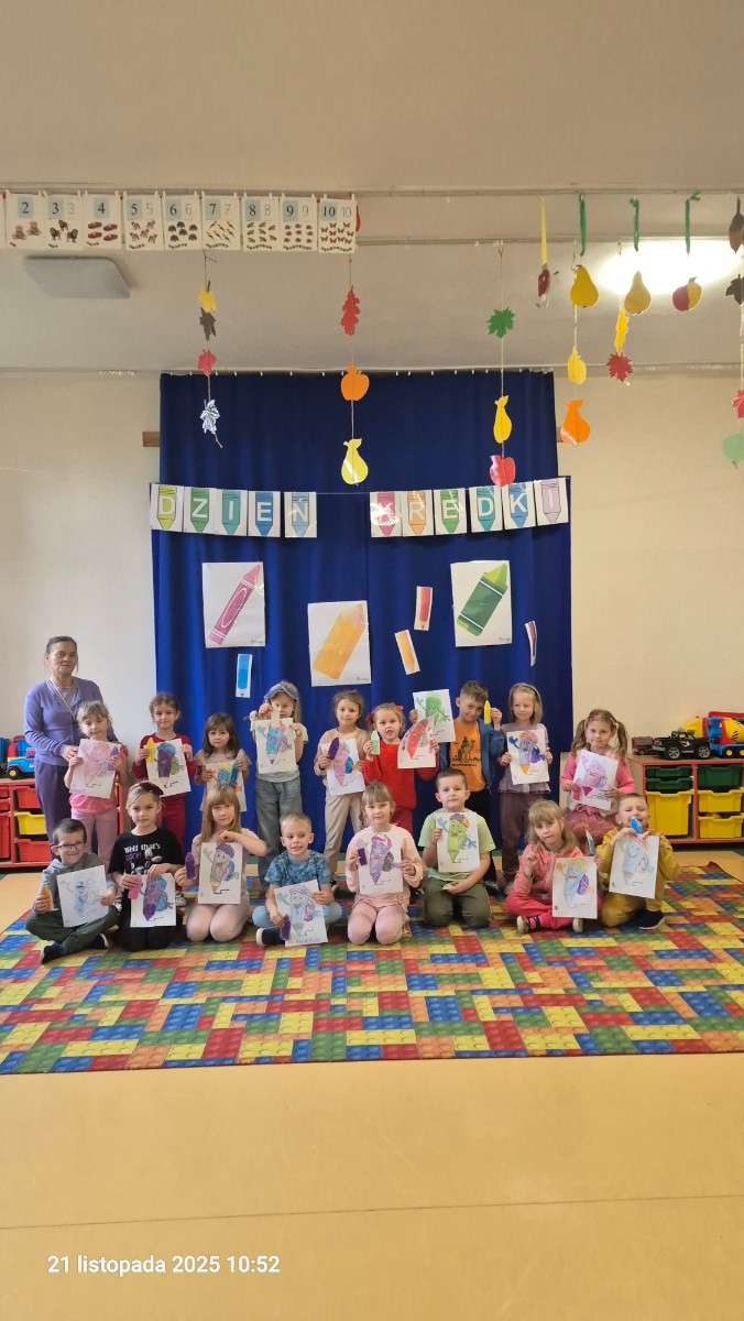 W ostatnim tygodniu listopada w zerówce dzieci obchodziły " DZIEŃ KREDKI". Z tej okazji u odbywały się zabawy z kredkami w roli głównej! Przedszkolaki brały udział w zabawach muzyczno- ruchowych przy piosence pt." Kolorowe Kredki". Dzieci poznały rodzaje kredek, tworzyły zbiory kredek według kryterium koloru, kształtu, wielkości. Na koniec nasze dzieci wykonały kredki z kartonu i patyczków od lodów. Potem pokolorowały kredkowy obrazek.