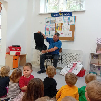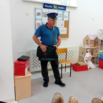 Dziś obchodziliśmy w naszym przedszkolu Dzień listonosza i poczty Polskiej. Gościliśmy pana Mariana tutejszego listonosza, bardzo dziękujemy za odwiedziny i opowiedzenie nam o pana pracy.