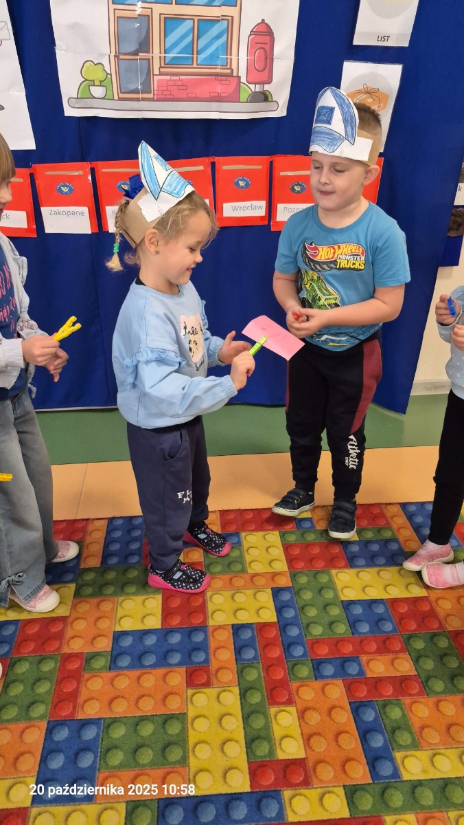 W poniedziałek w naszej zerówce obchodziliśmy Dzień Poczty Polskiej. Celem zajęć było przybliżenie dzieciom pracy listonosza oraz znaczenia poczty w codziennym życiu.