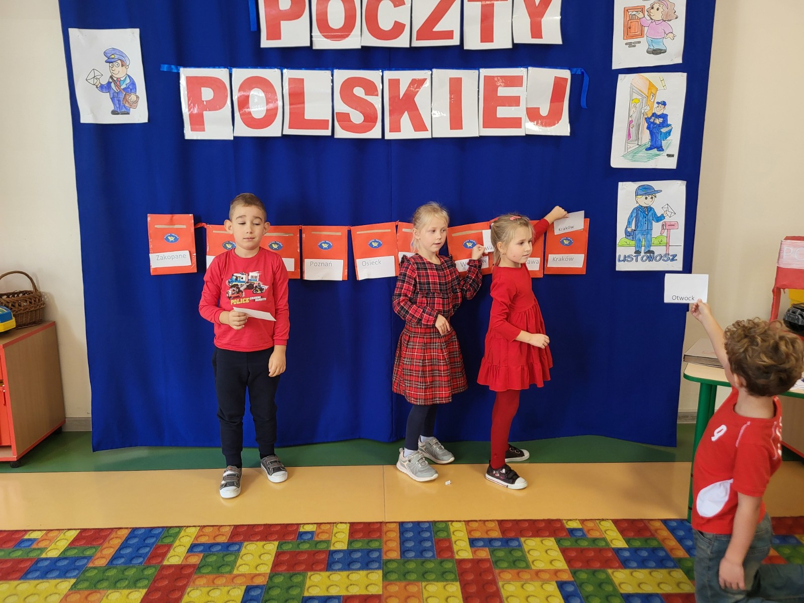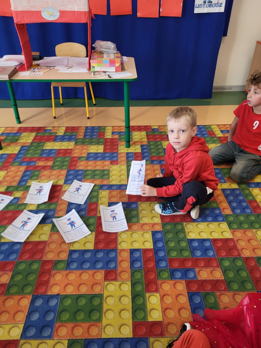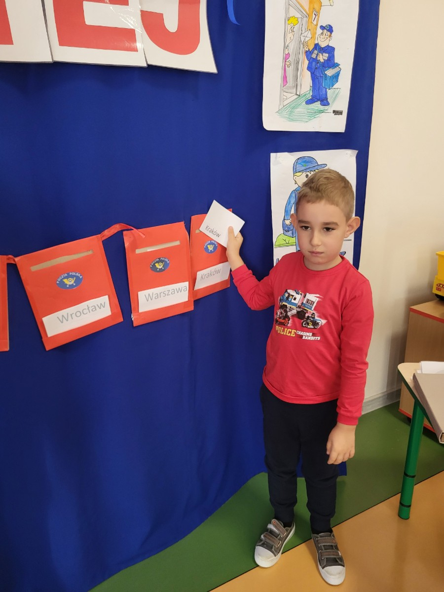 Dzieci poznały zawód listonosza , jego obowiązki oraz jakie przedmioty są mu niezbędne do wykonywania pracy . Wiedzą już jak do domu trafiają paczki i listy.