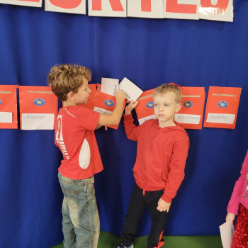 Przedszkolaki rozwiązywały rebusy i zagadki. Wrzucały koperty do odpowiednich skrzynek.