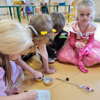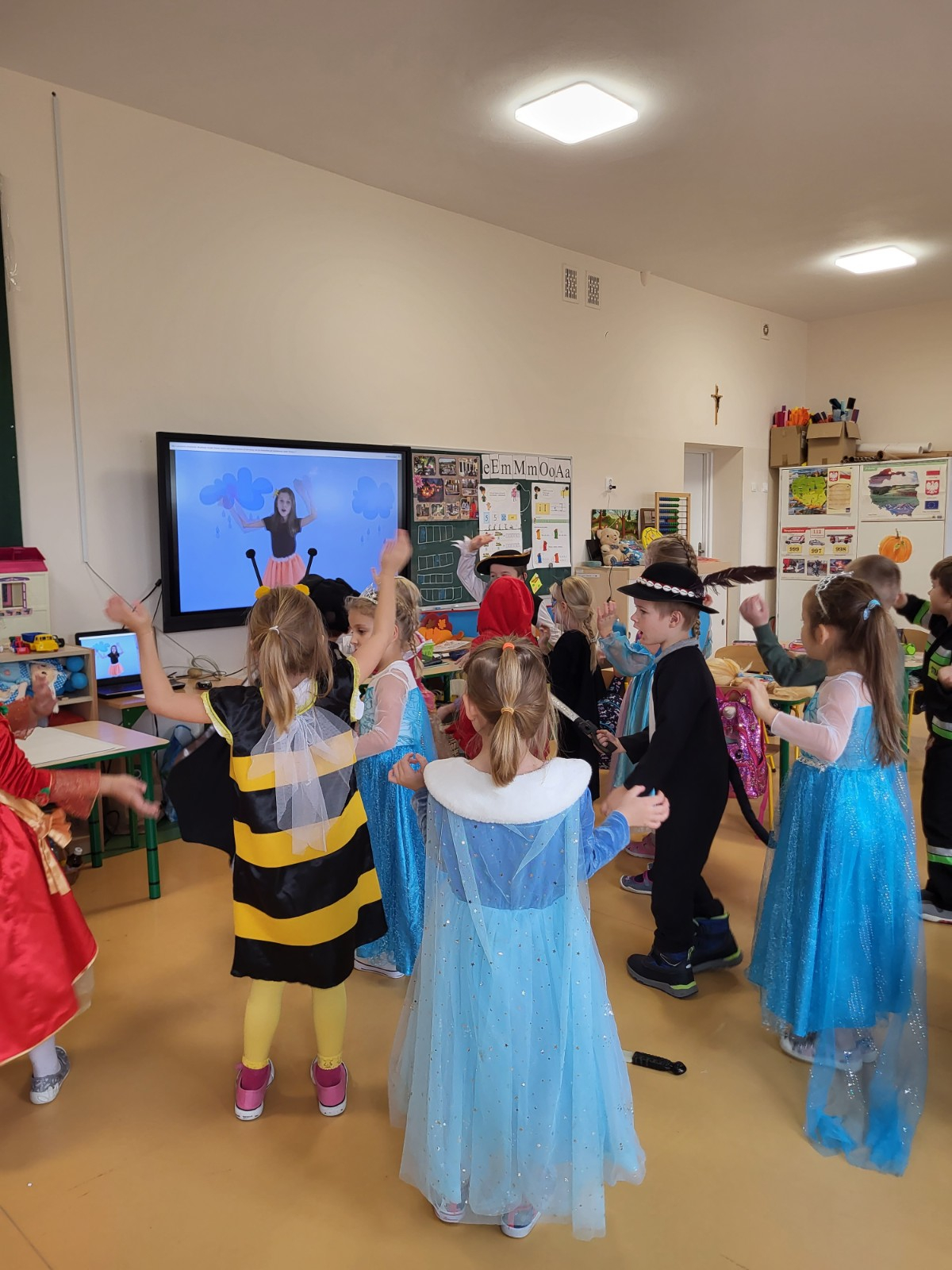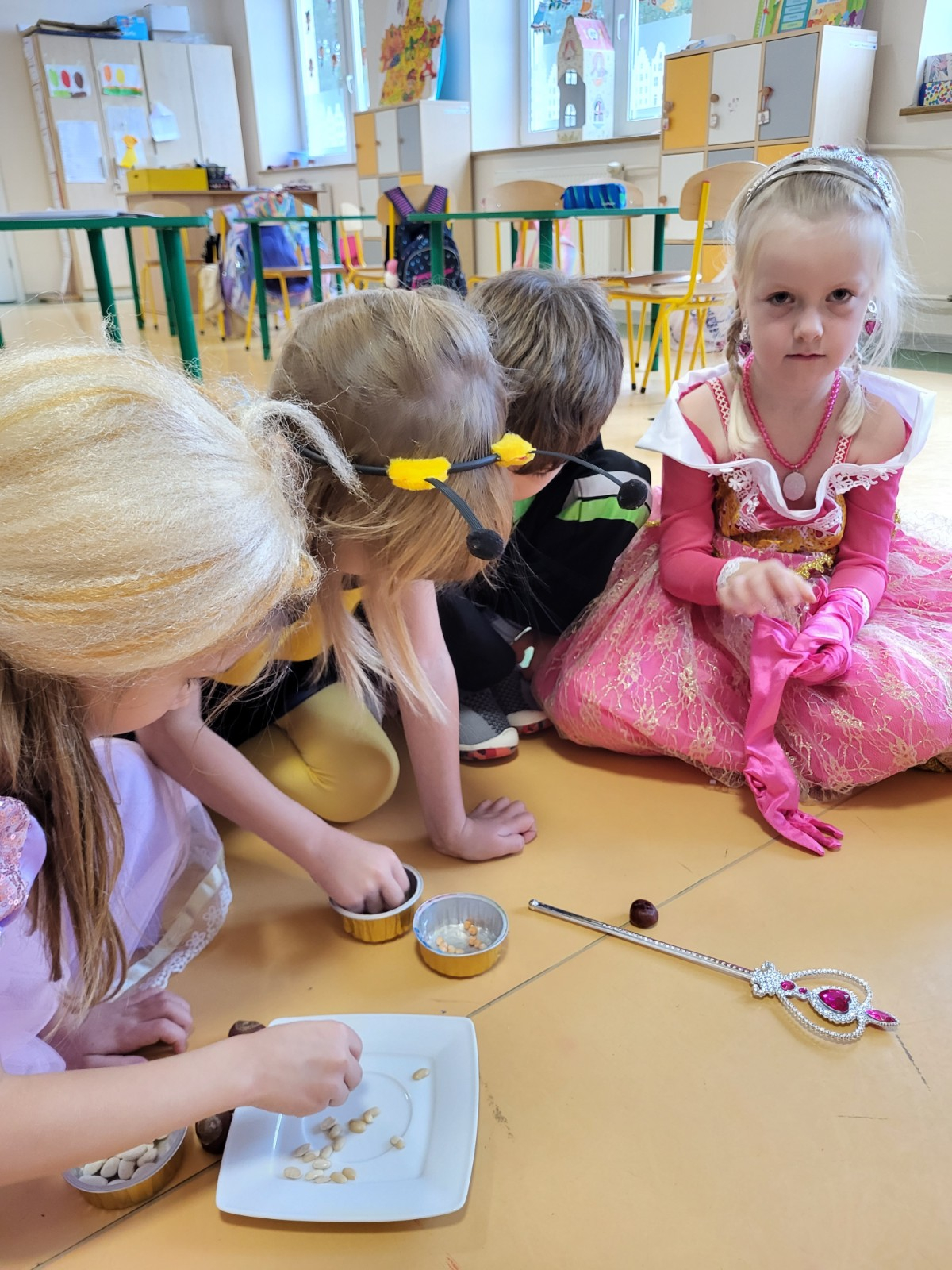 Dnia 6.11.2023 r. nasze 6-latki z zerówki miały spotkanie z postaciami z bajek. Przedszkolaki uczestniczyły w zabawach muzyczno-ruchowych i quizach . Wysłuchały fragmentów bajek , a następnie rozpoznawały ich tytuły . Segregowały bajkowe rekwizyty . Pomagały Kopciuszkowi segregować nasiona grochu. Super prezentowały się w bajkowych strojach.