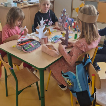 Przedszkolaki tańczyły jesienne tańce . Nie zabrakło również kolorowych prac plastycznych.