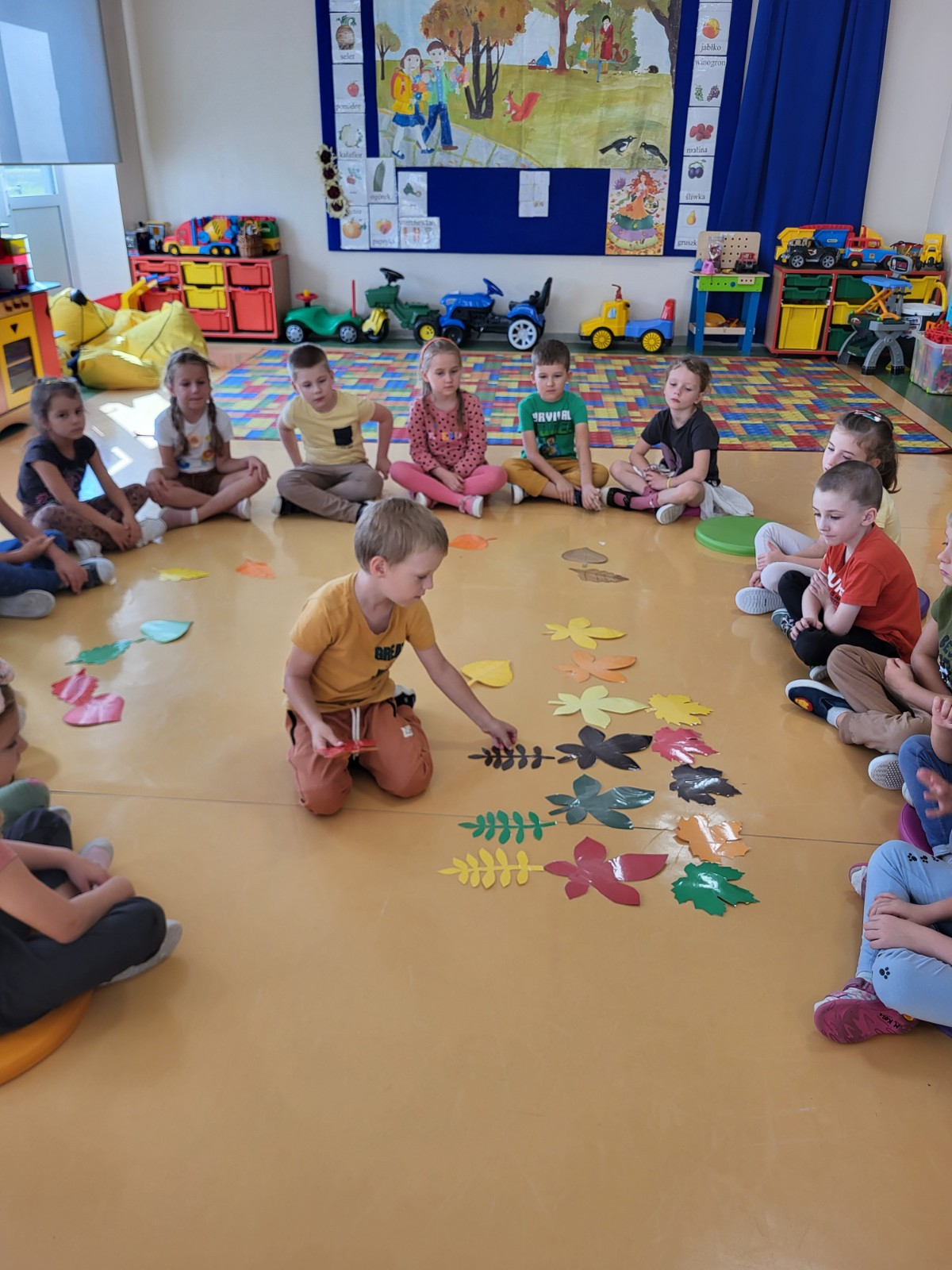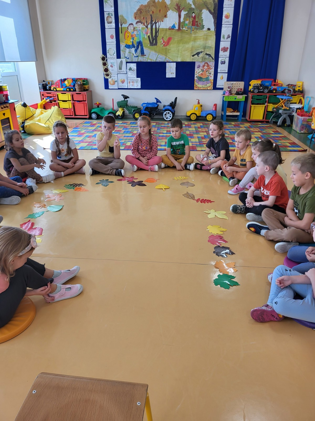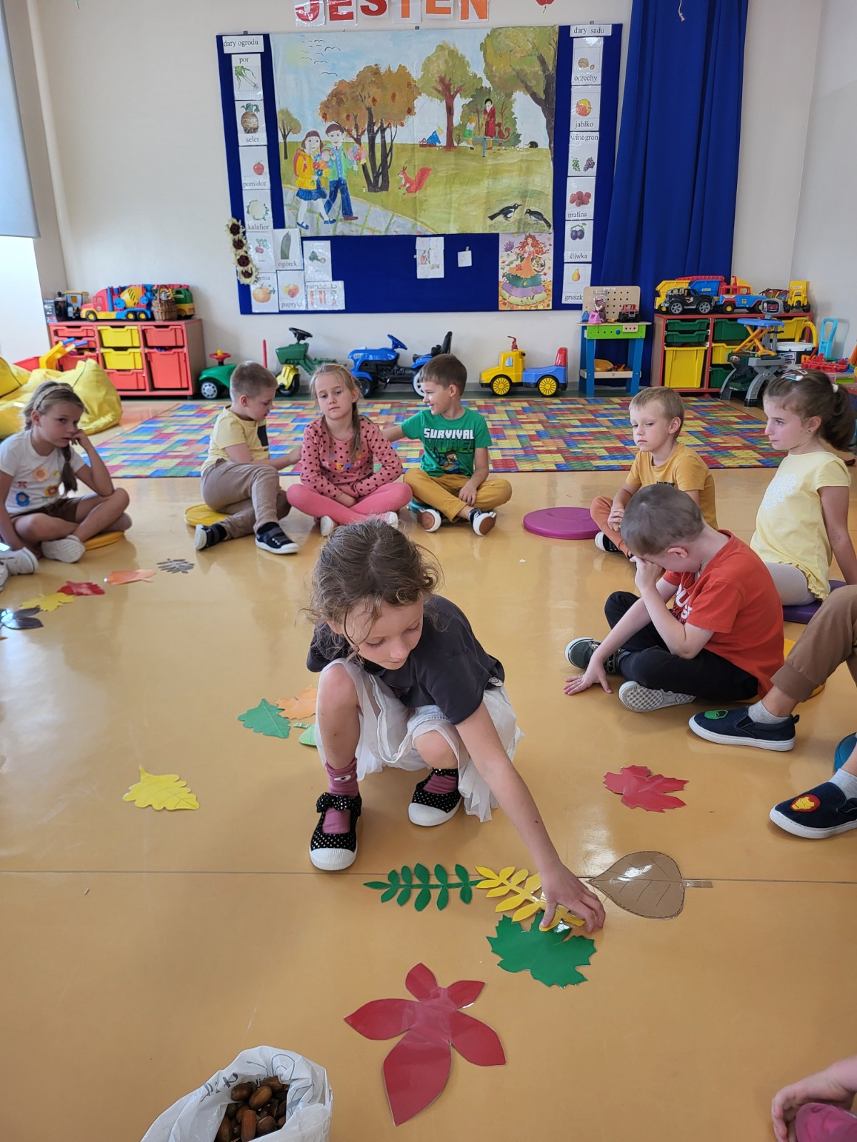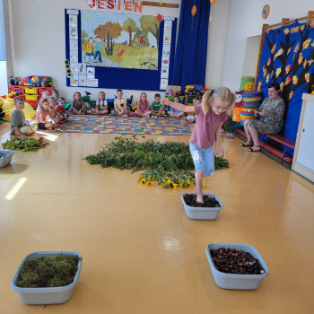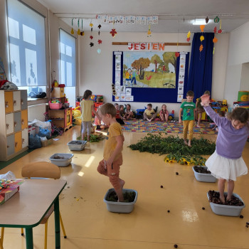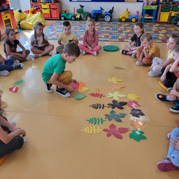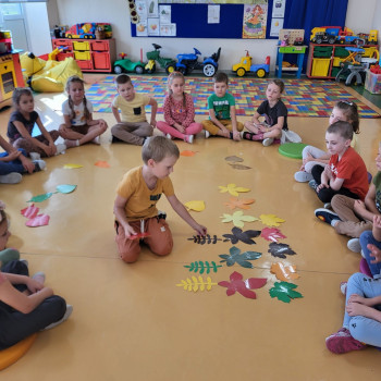 23 września zgodnie z tradycją w naszej grupie 6-latków odbyło się “Powitanie Jesieni”, gdyż tego dnia kończy się astronomiczne lato, a zaczyna się kolejna pora roku – jesień. Celem zabaw związanych z tematyką było utrwalenie wiadomości o jesieni, integrowanie się dzieci, a przede wszystkim wspaniała zabawa. Pląsom i zabawom towarzyszyła muzyka i jesienne piosenki. . Potem rozwiązywaliśmy zagadki o tematyce jesiennej .