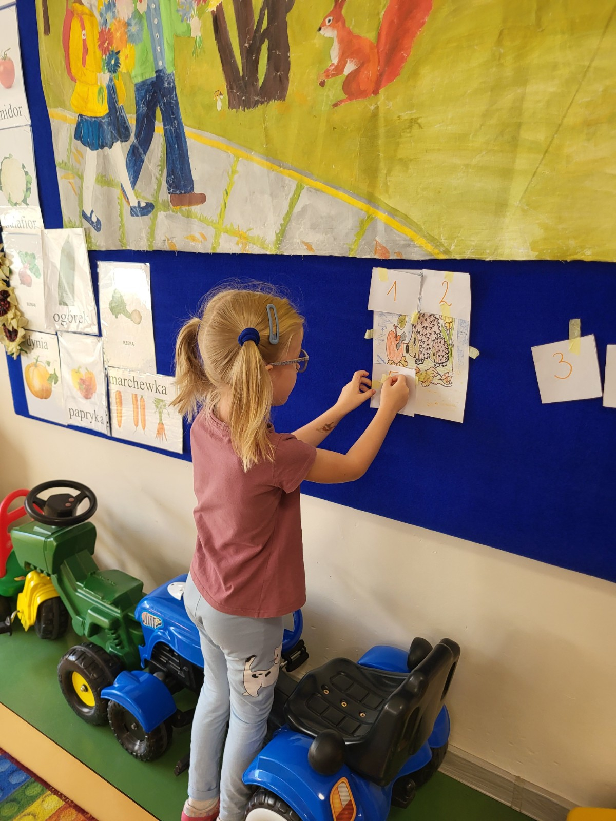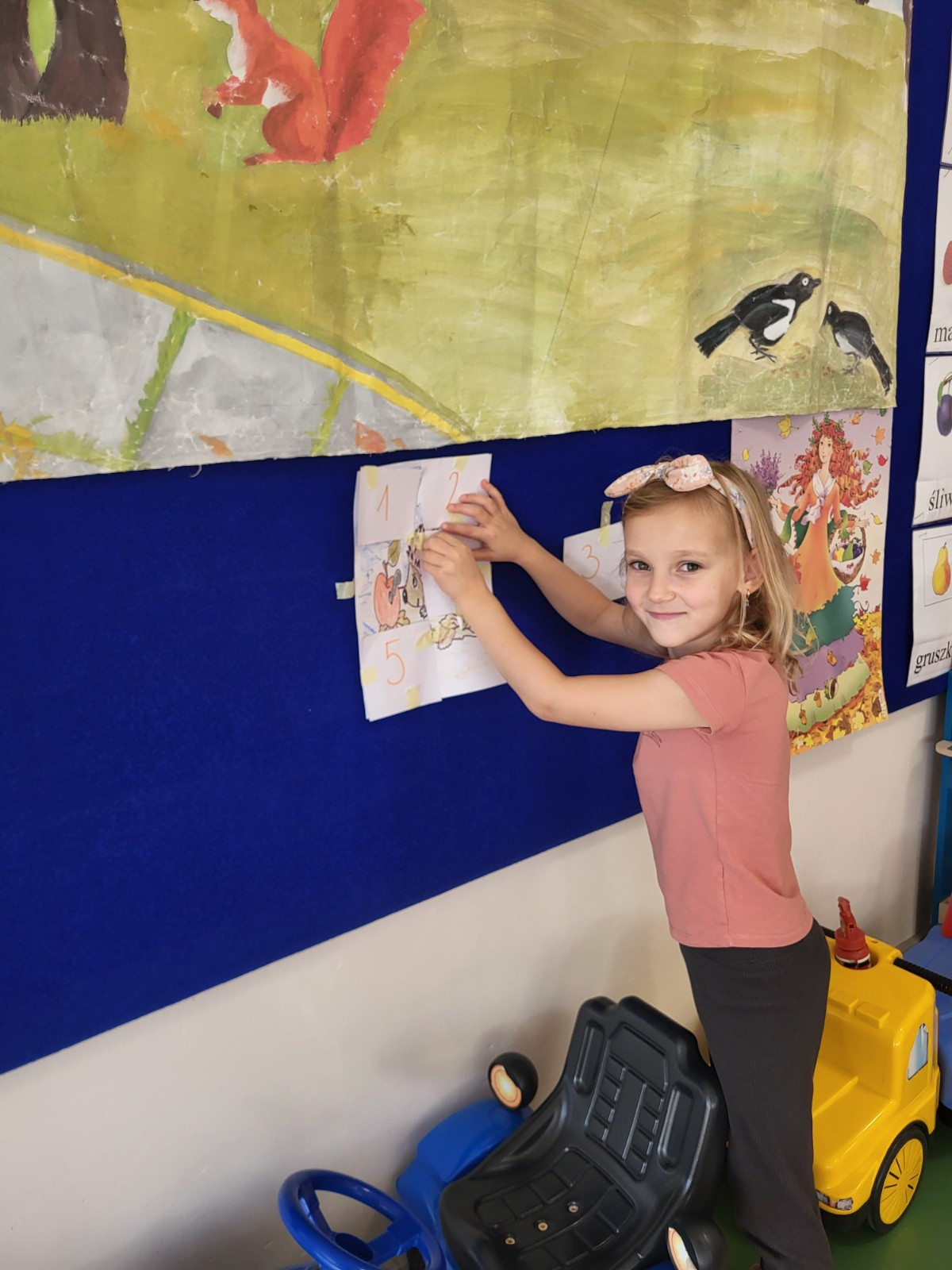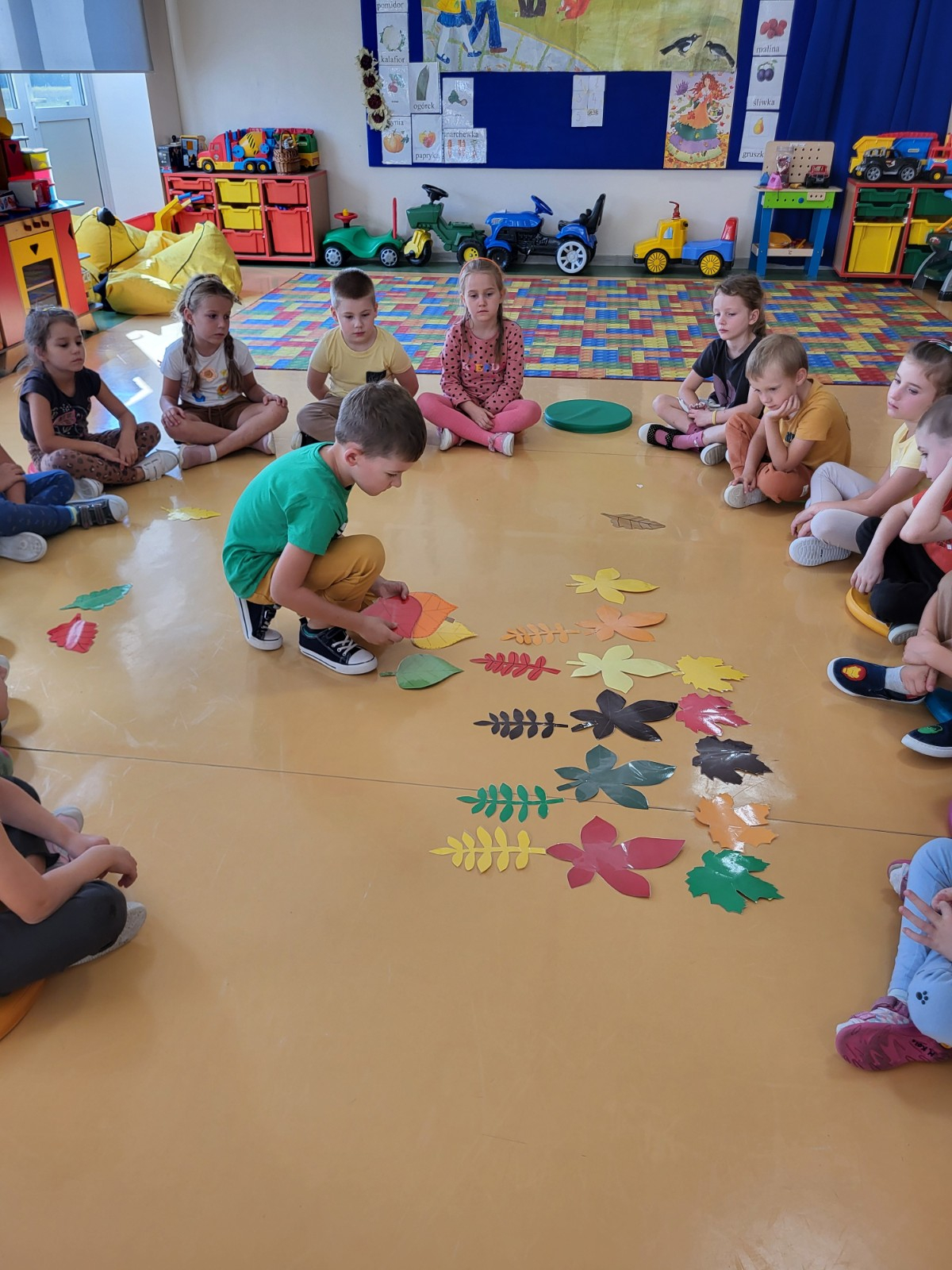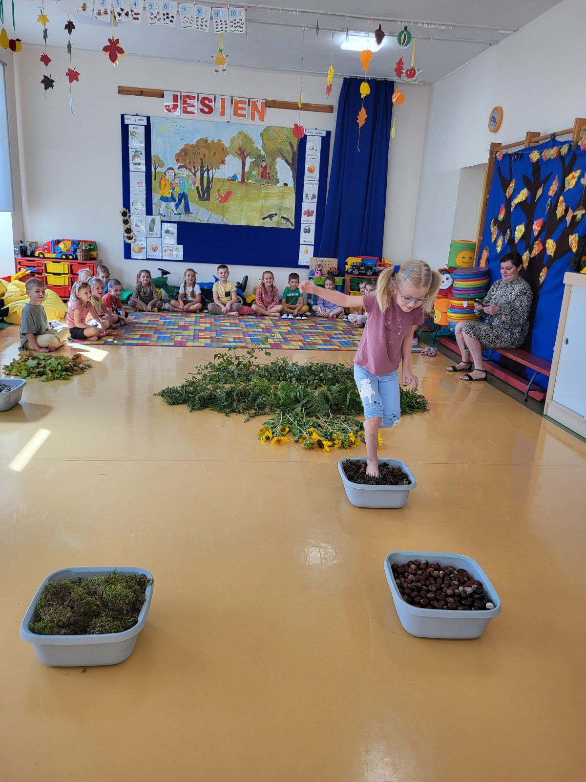 23 września zgodnie z tradycją w naszej grupie 6-latków odbyło się “Powitanie Jesieni”, gdyż tego dnia kończy się astronomiczne lato, a zaczyna się kolejna pora roku – jesień. Celem zabaw związanych z tematyką było utrwalenie wiadomości o jesieni, integrowanie się dzieci, a przede wszystkim wspaniała zabawa. Pląsom i zabawom towarzyszyła muzyka i jesienne piosenki. . Potem rozwiązywaliśmy zagadki o tematyce jesiennej .