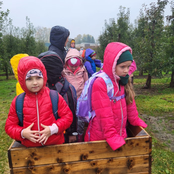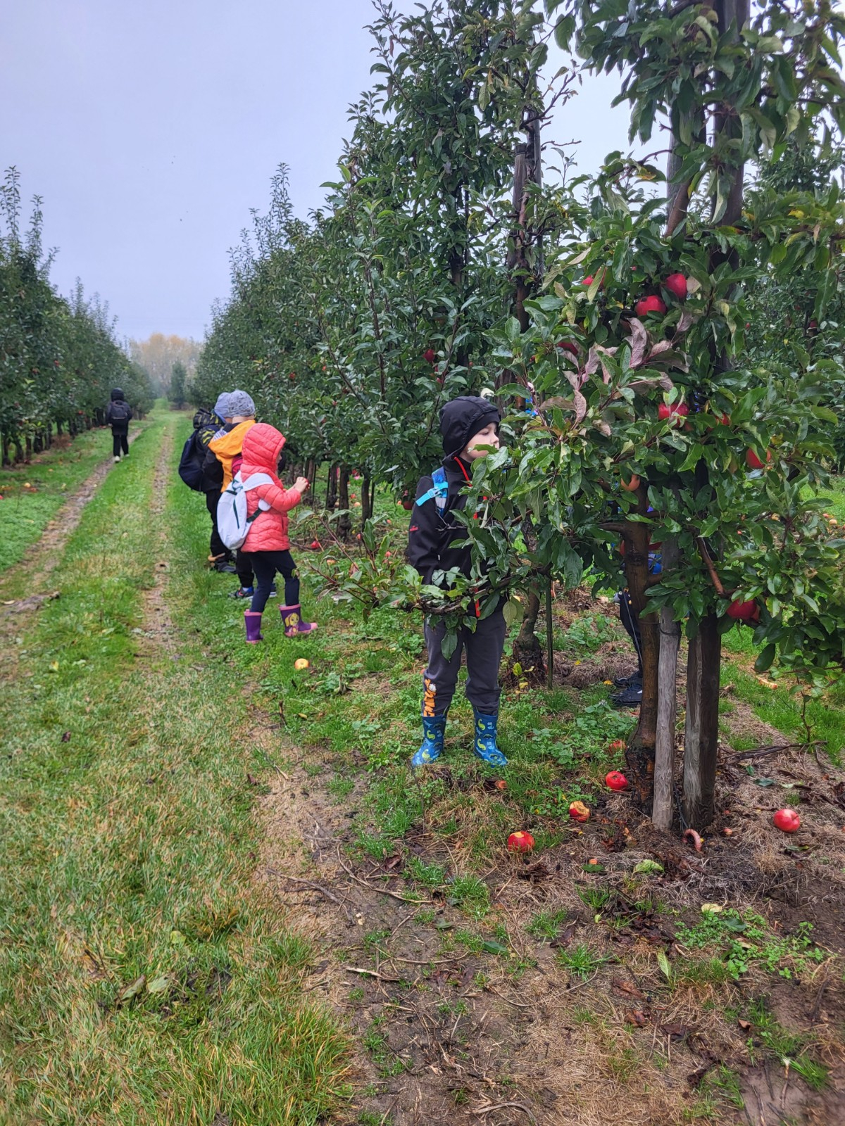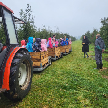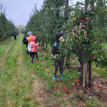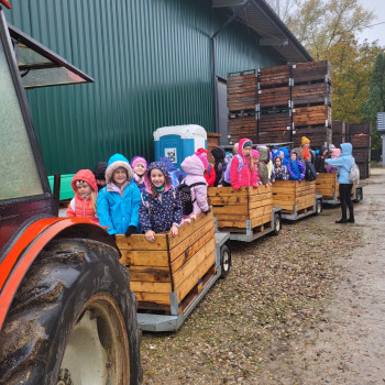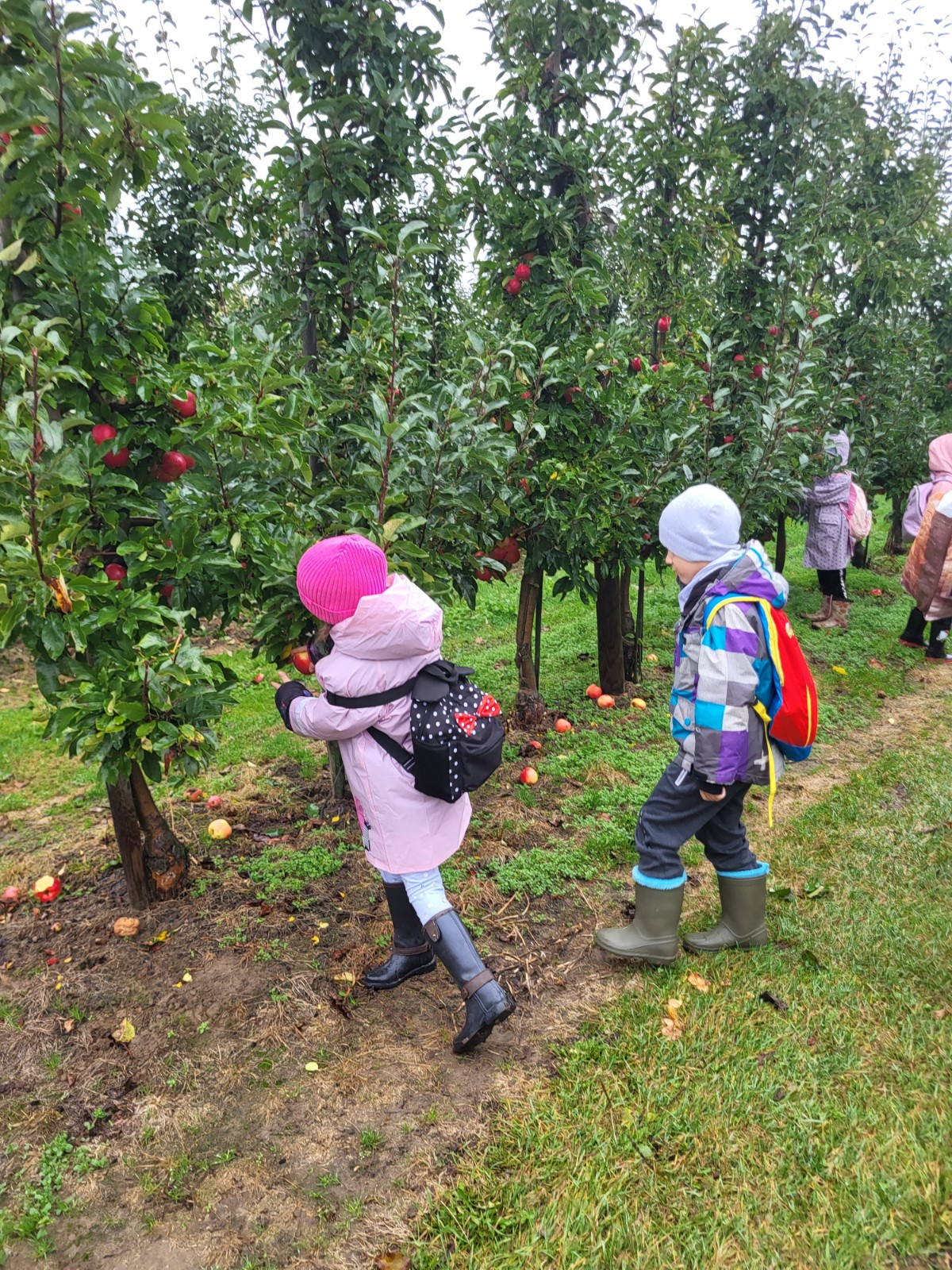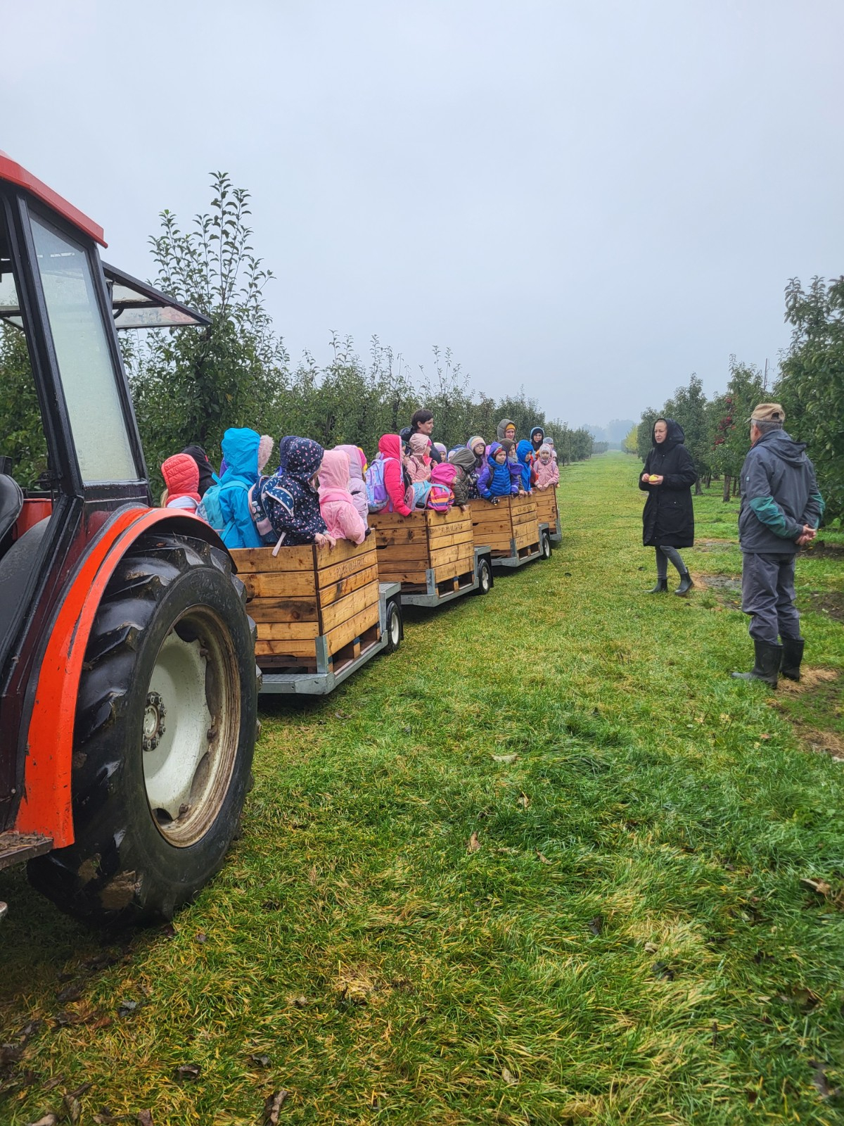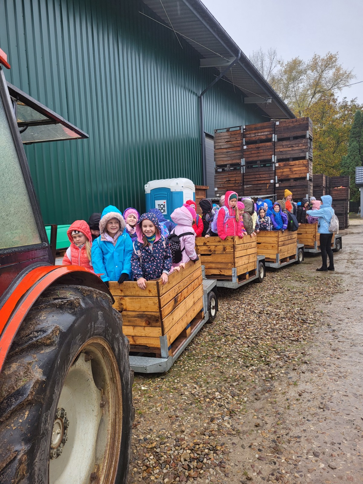 Dnia 25.10.2023 oddział przedszkolny 6-latków i klasa pierwsza odwiedziły sady na Starym Podolu i farmę Kurkowo. Tam spędziły około 4 godzin .