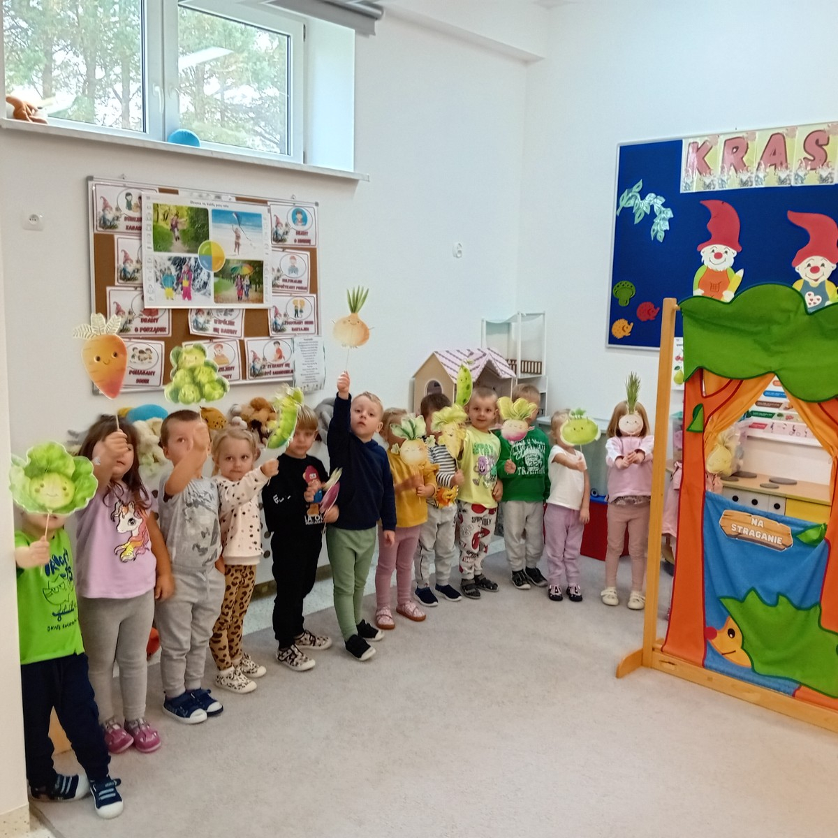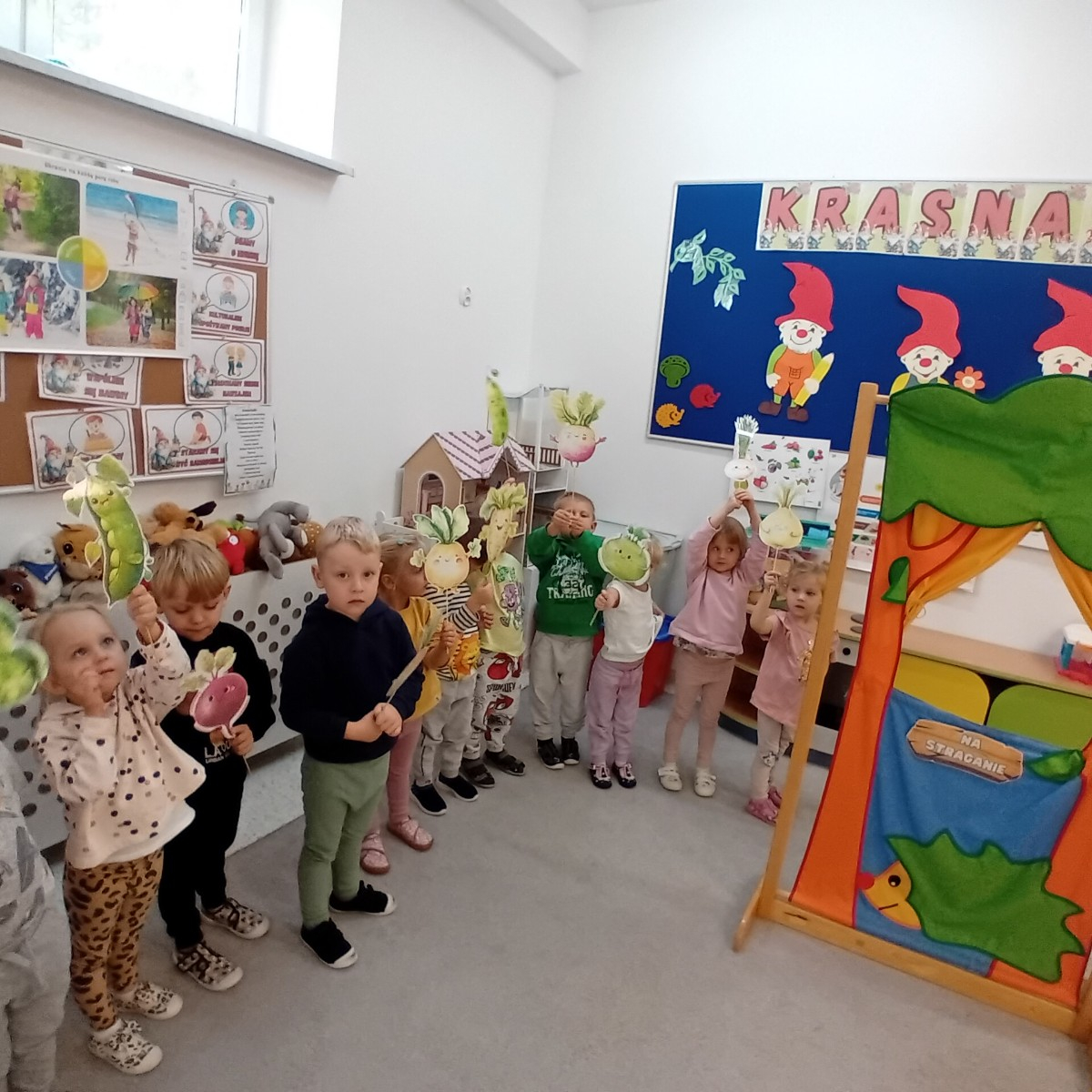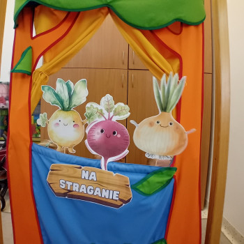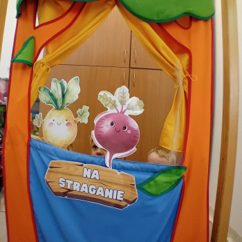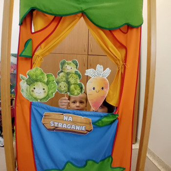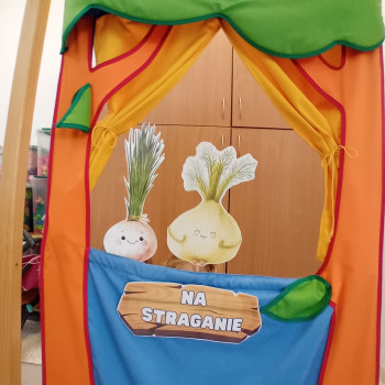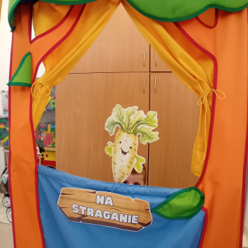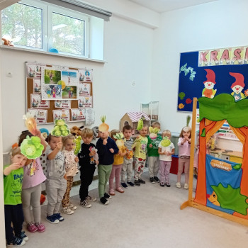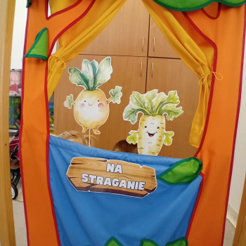 Na straganie przedstawienie wiersza Jana Brzechwy przez grupę Krasnali.