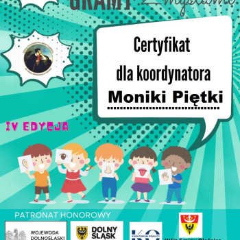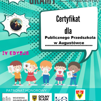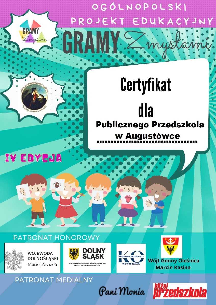 Grupa ,,0" otrzymała certyfikart za udział w projekcie edukacyjnym ,,Gramy zmysłami".