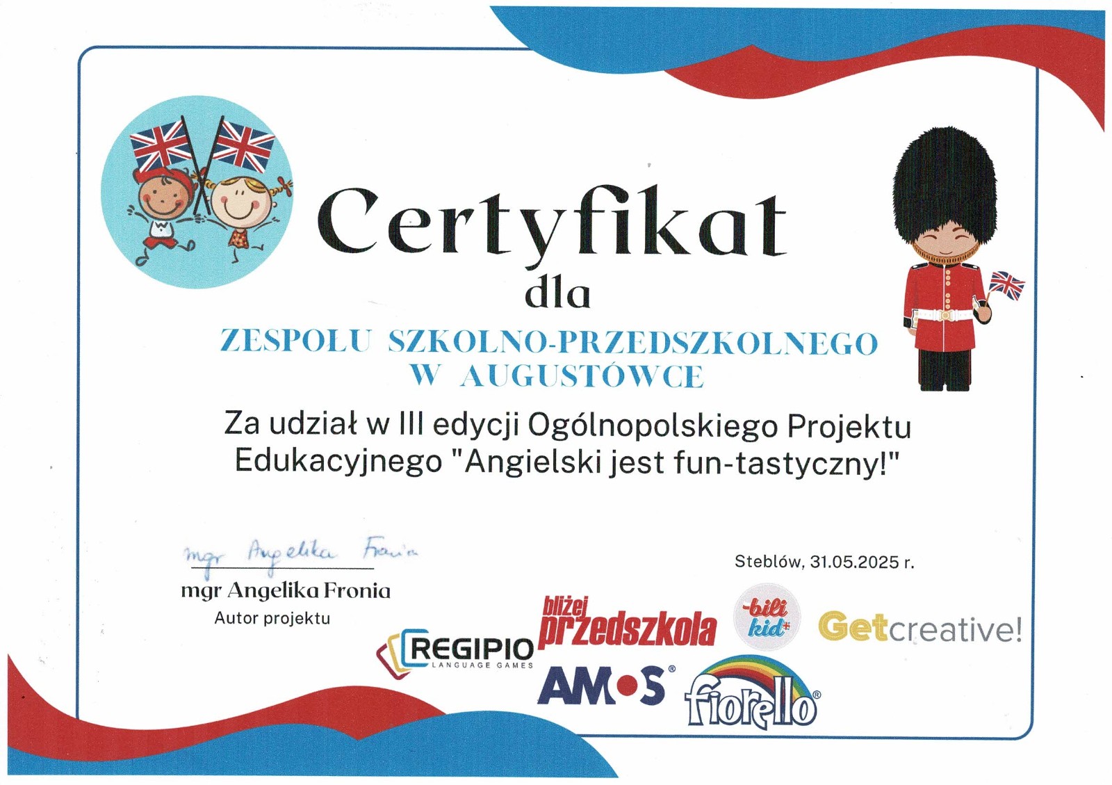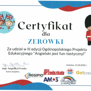 Uczniowie ZERÓWKI wzięli udział w Ogólnopolskim Projekcie Edukacyjnym "Angielski jest Fun-tastyczny". Głównym celem było pokazanie uczniom jak ważna w naszych czasach jest znajomość języka angielskiego oraz rozbudzenie zainteresowania krajami anglojęzycznymi.
