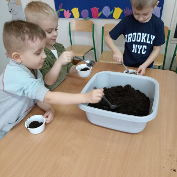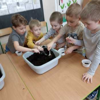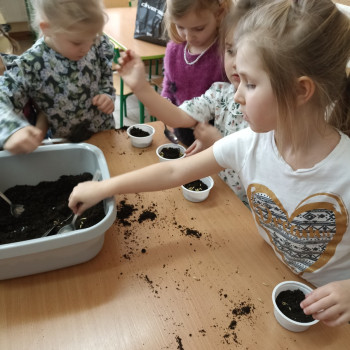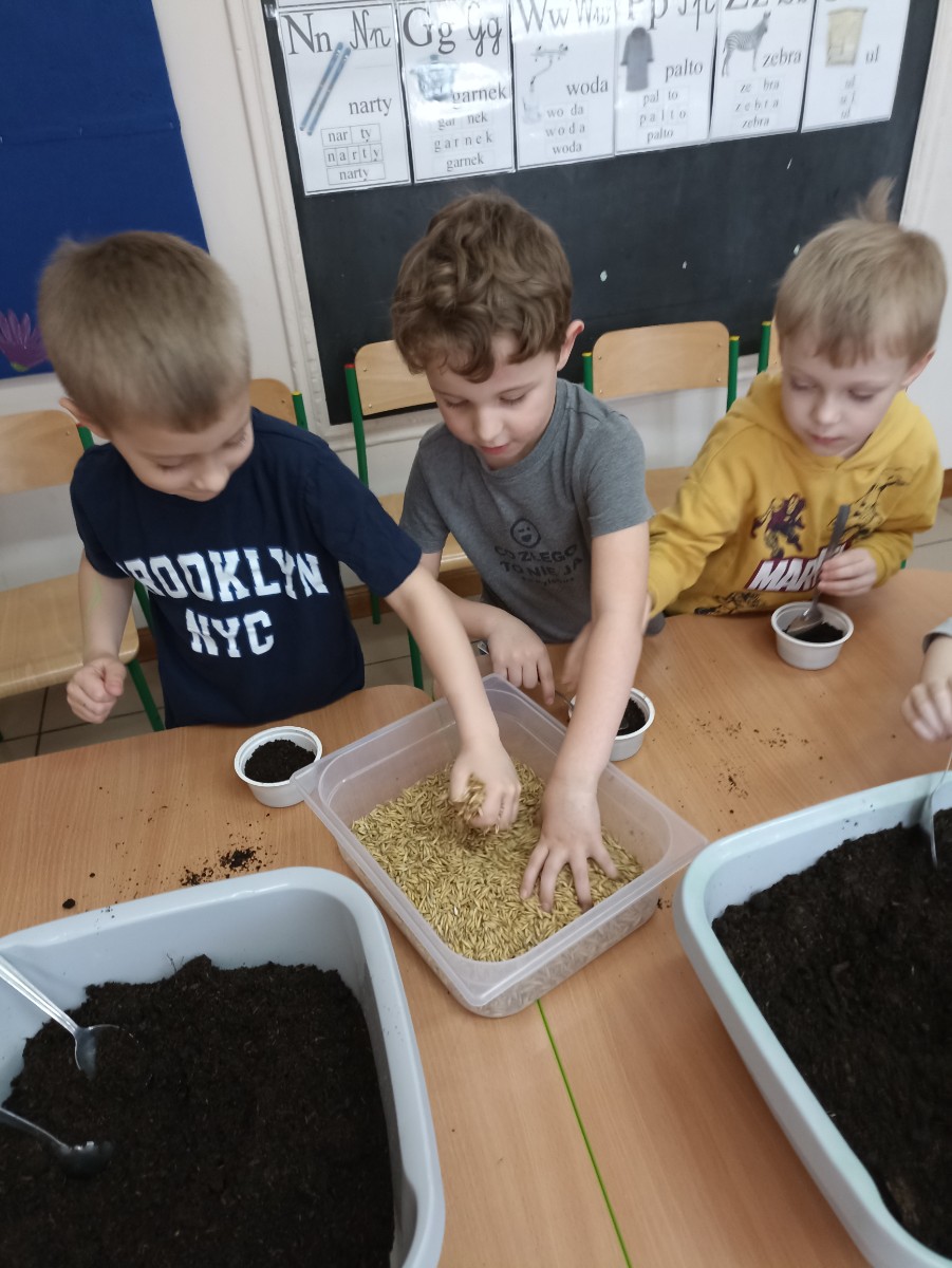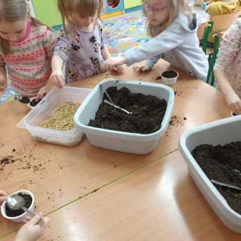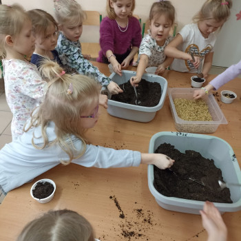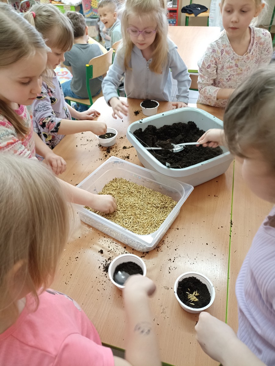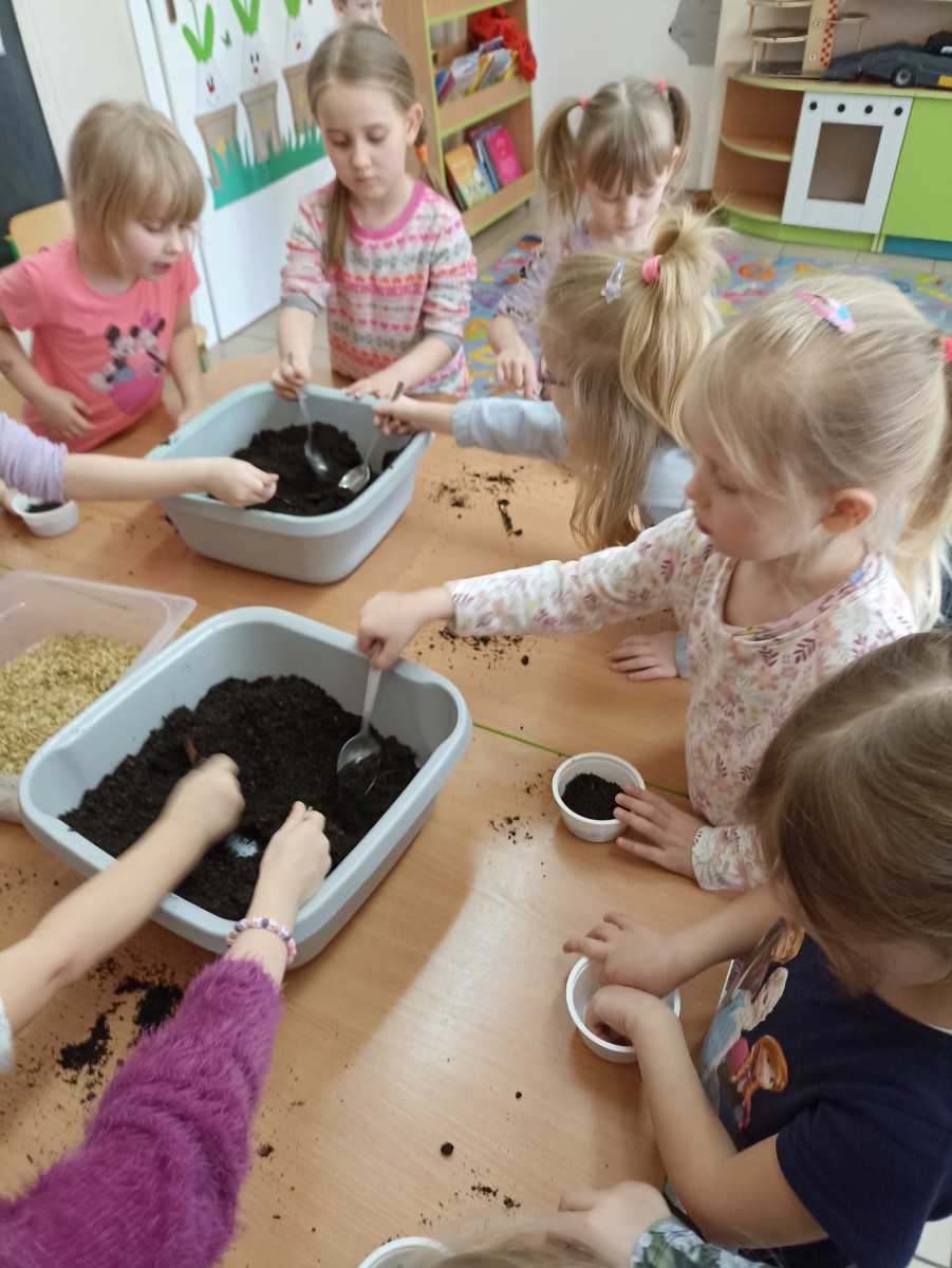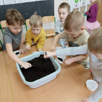 Mali ogrodnicy z grupy Sówek zasiali owies a także założyli hodowlę fasoli. Teraz już tylko podlewanie i obserwacje. Mamy nadzieję że nasz owies pięknie wyrośnie i ozdobi nasze stoliczki.