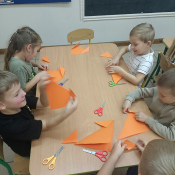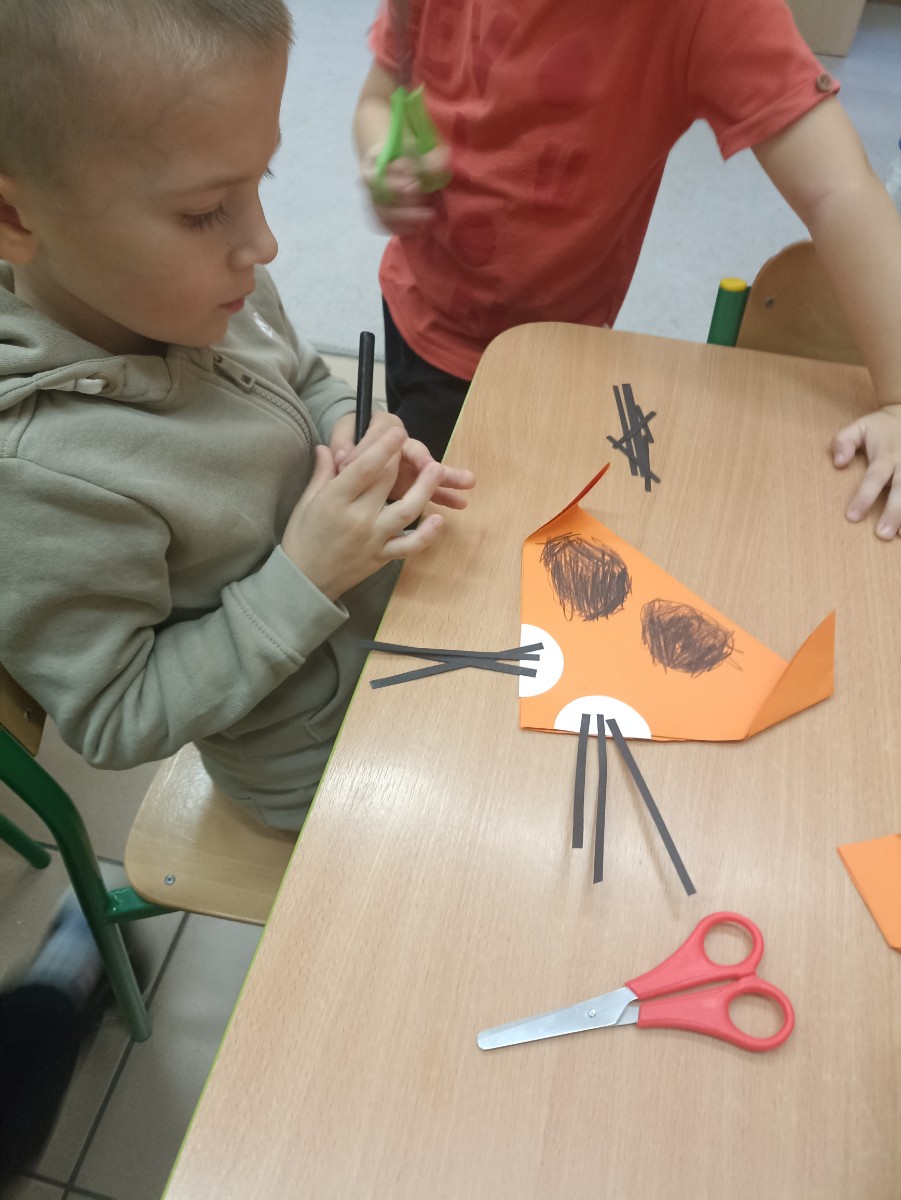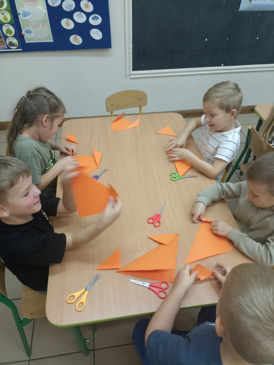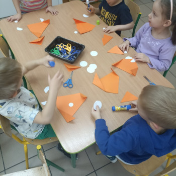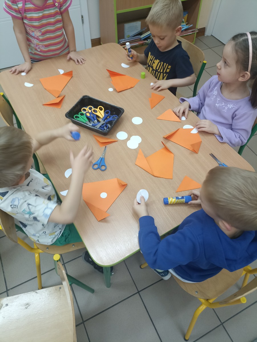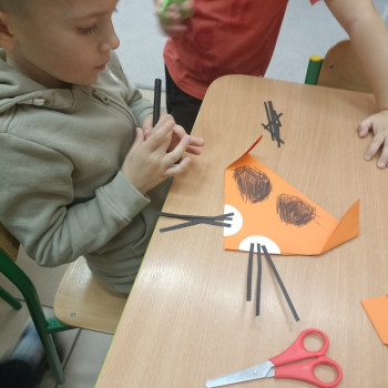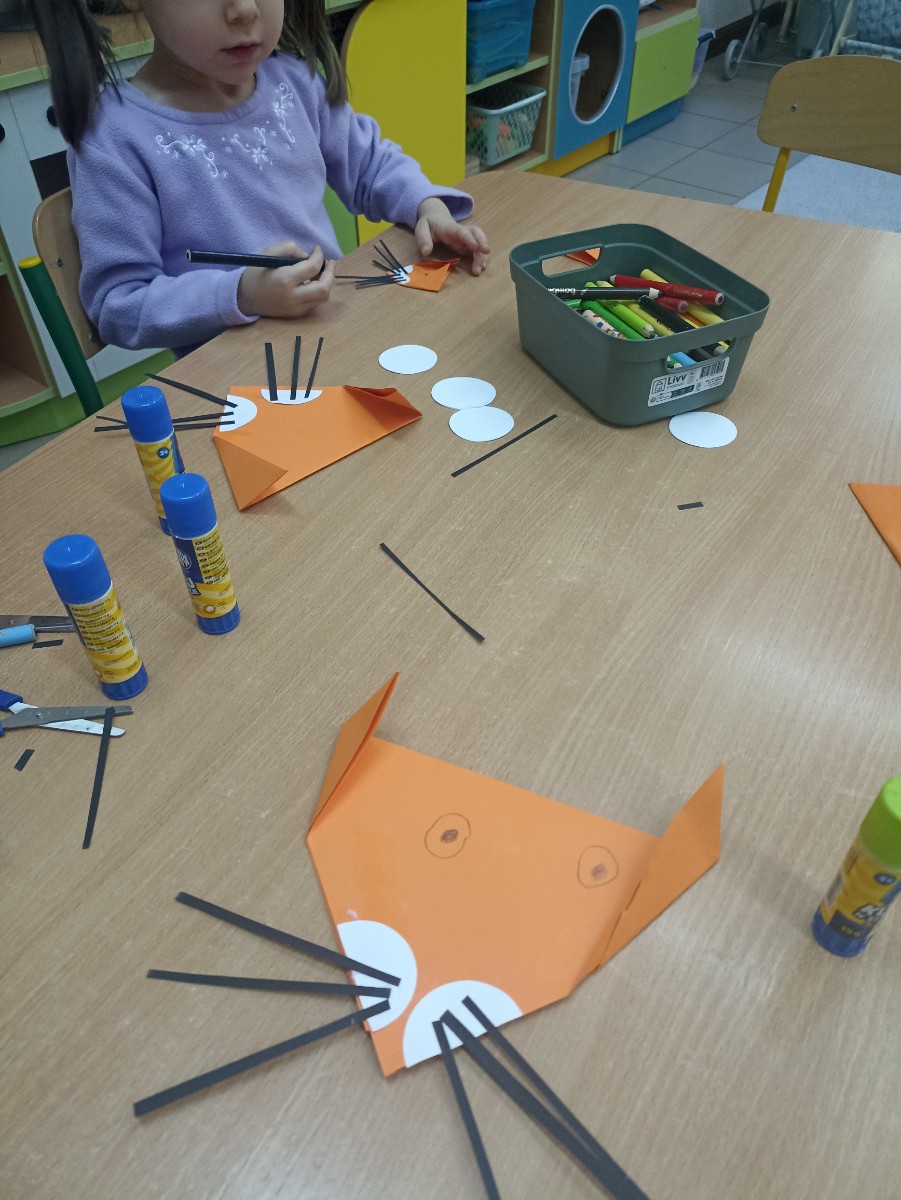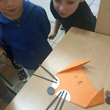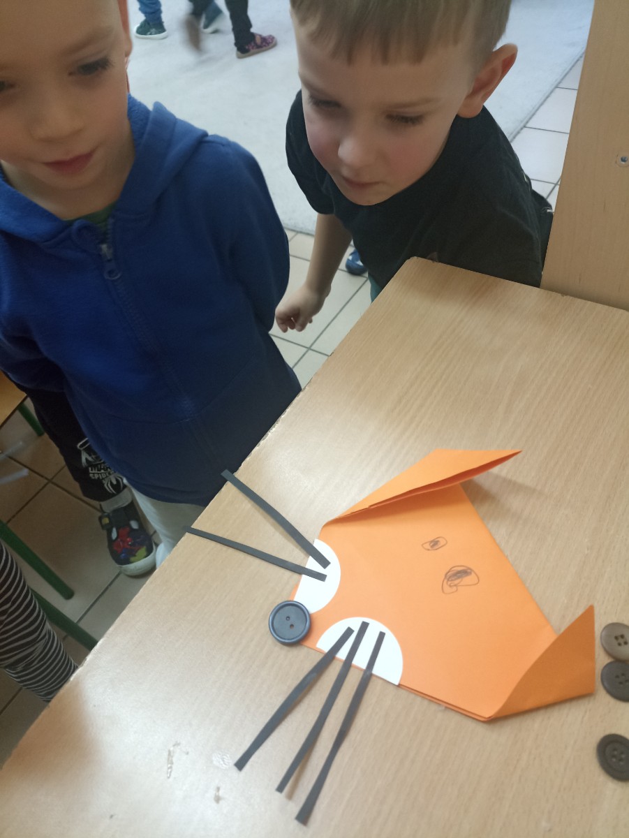 Przedszkolaki poznały metodę origami, czyli sztukę składania papieru. Stworzyły dziś z papieru leśne zwierzęta m.in. liska i sowę.