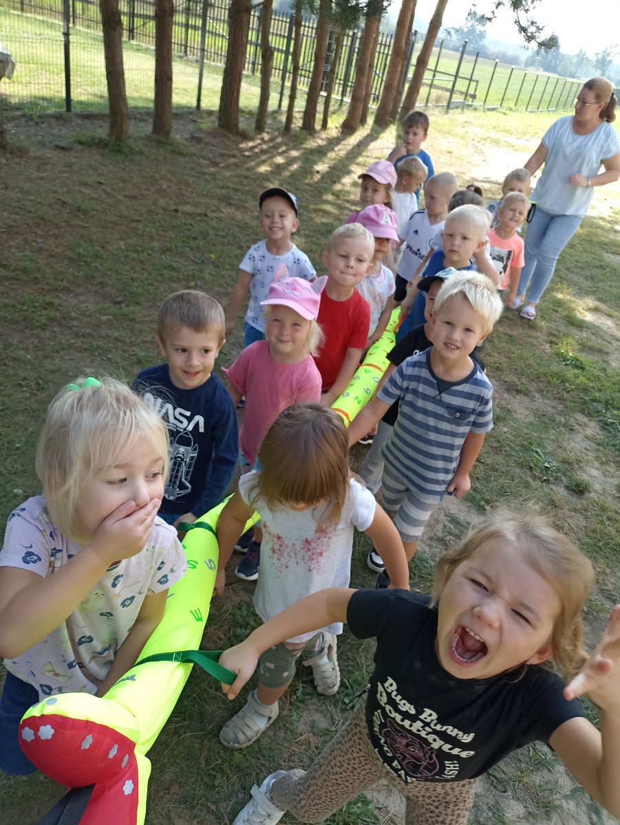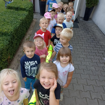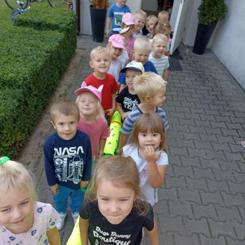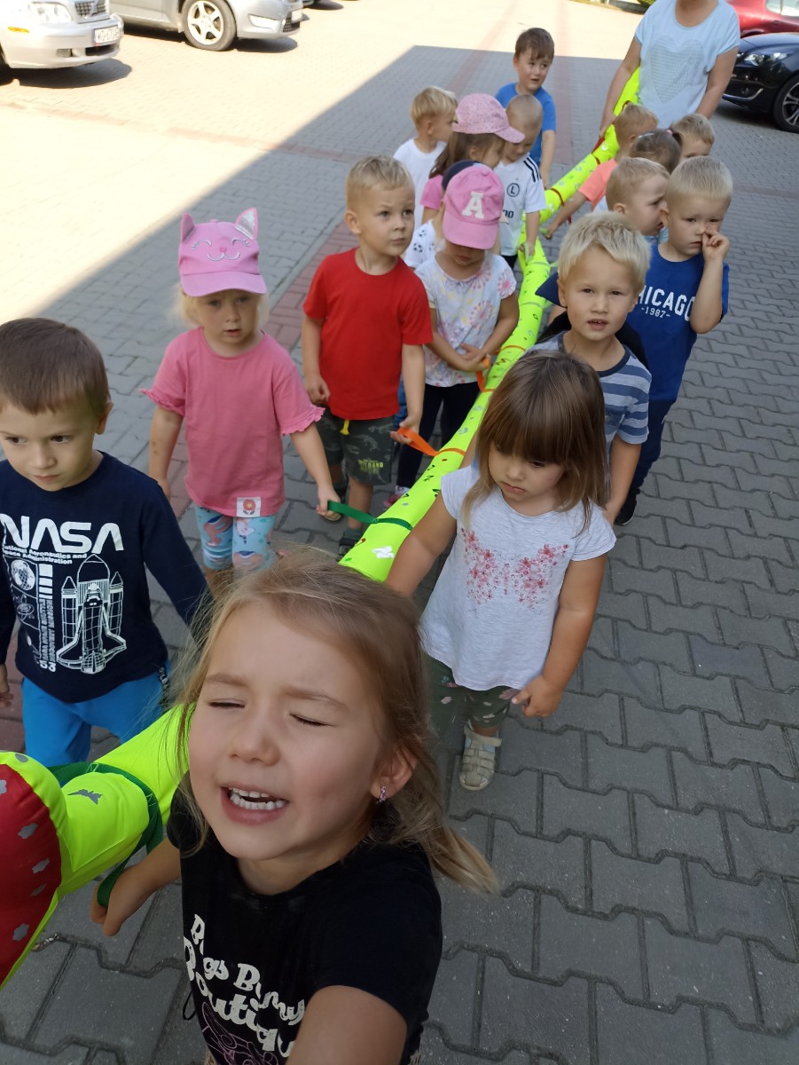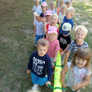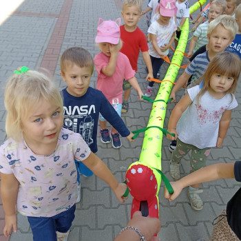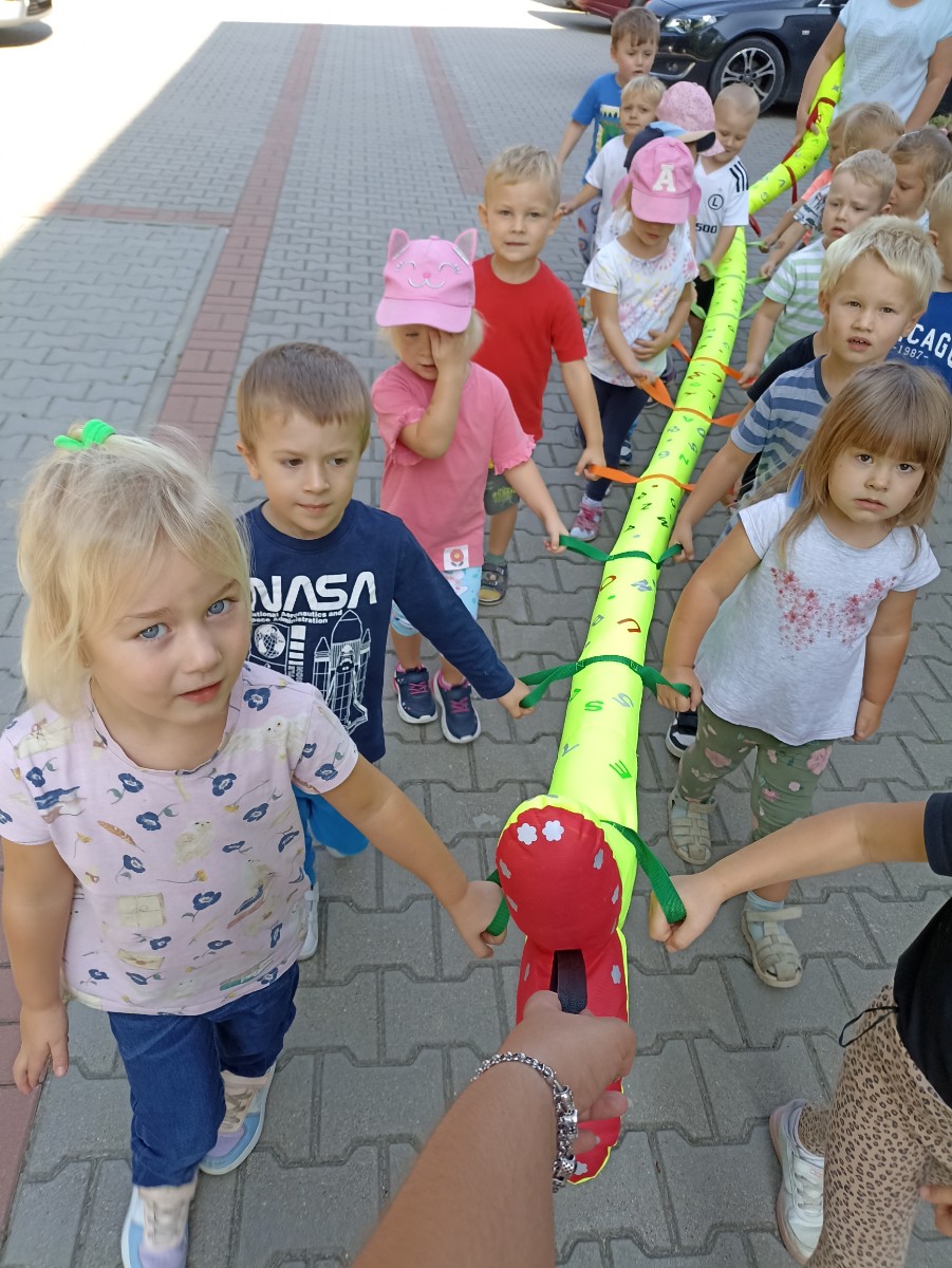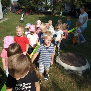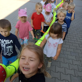 Pierwsze wyjście maluchów co prawda tylko dookoła szkoły, ale z przedszkolnym wężem była to dla nich prawdziwa przygoda.