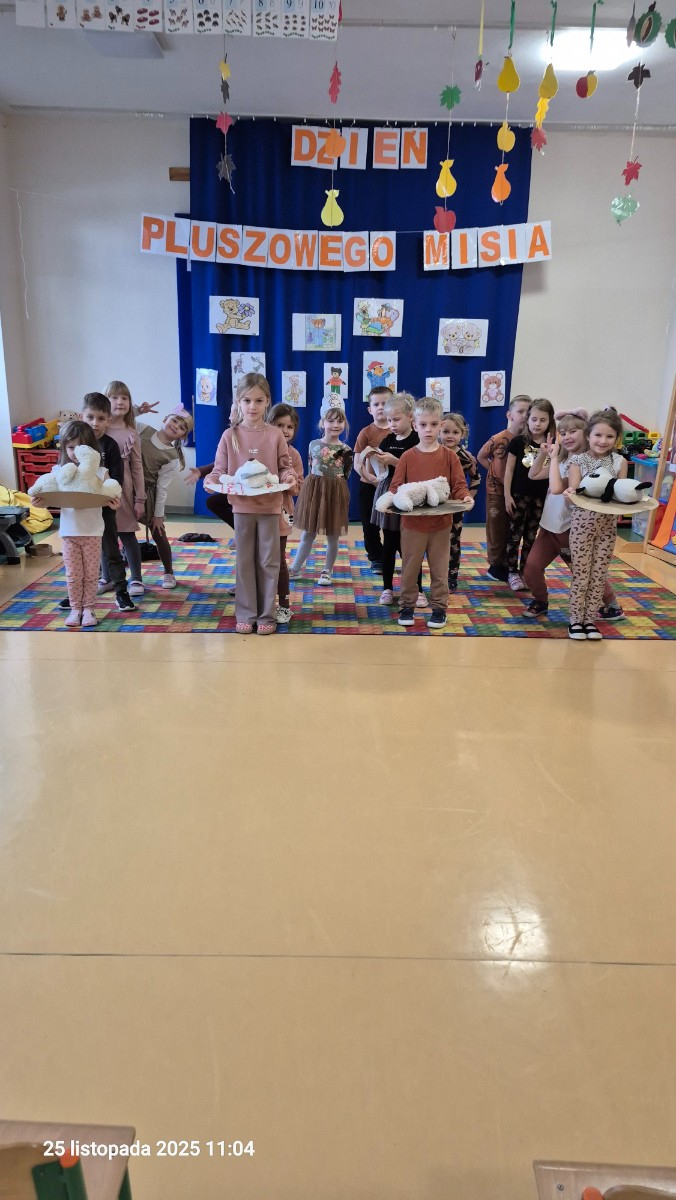 Z tej okazji w dniu 25.11.2022 r. przedszkolaki z naszego przedszkola uczestniczyły w obchodach "Światowego Dnia Pluszowego Misia". Każde dziecko przyszło do przedszkola ze swoim "milutkim przyjacielem". Można było zobaczyć misie małe, średnie, duże, brązowe, różowe, białe itd. Wszystkie były śliczne i wyjątkowe. W tym wesołym dniu przedszkolaki czekało wiele atrakcji. Zostały zaproszone do wspólnej zabawy ze swoimi misiami, poznały również historię ich święta .