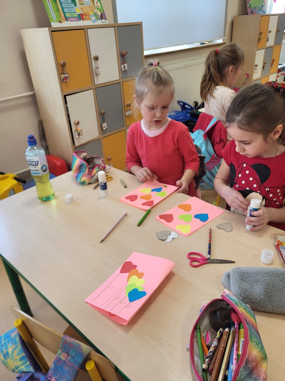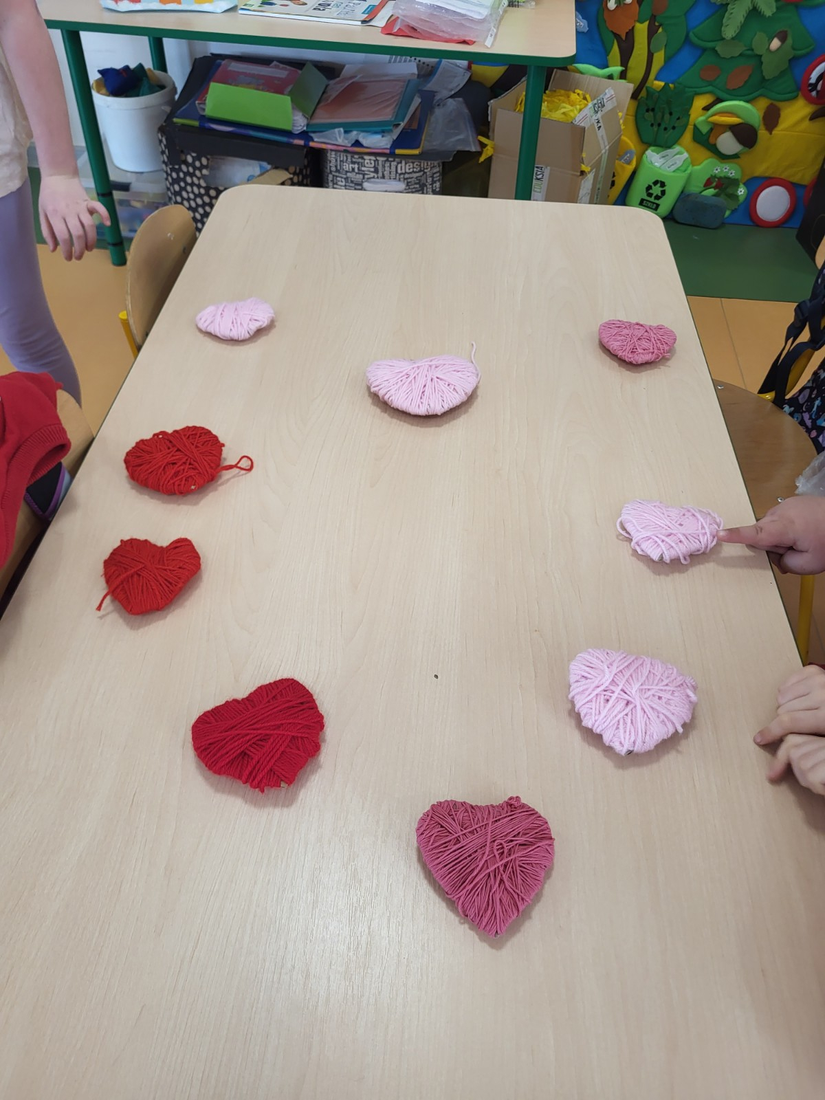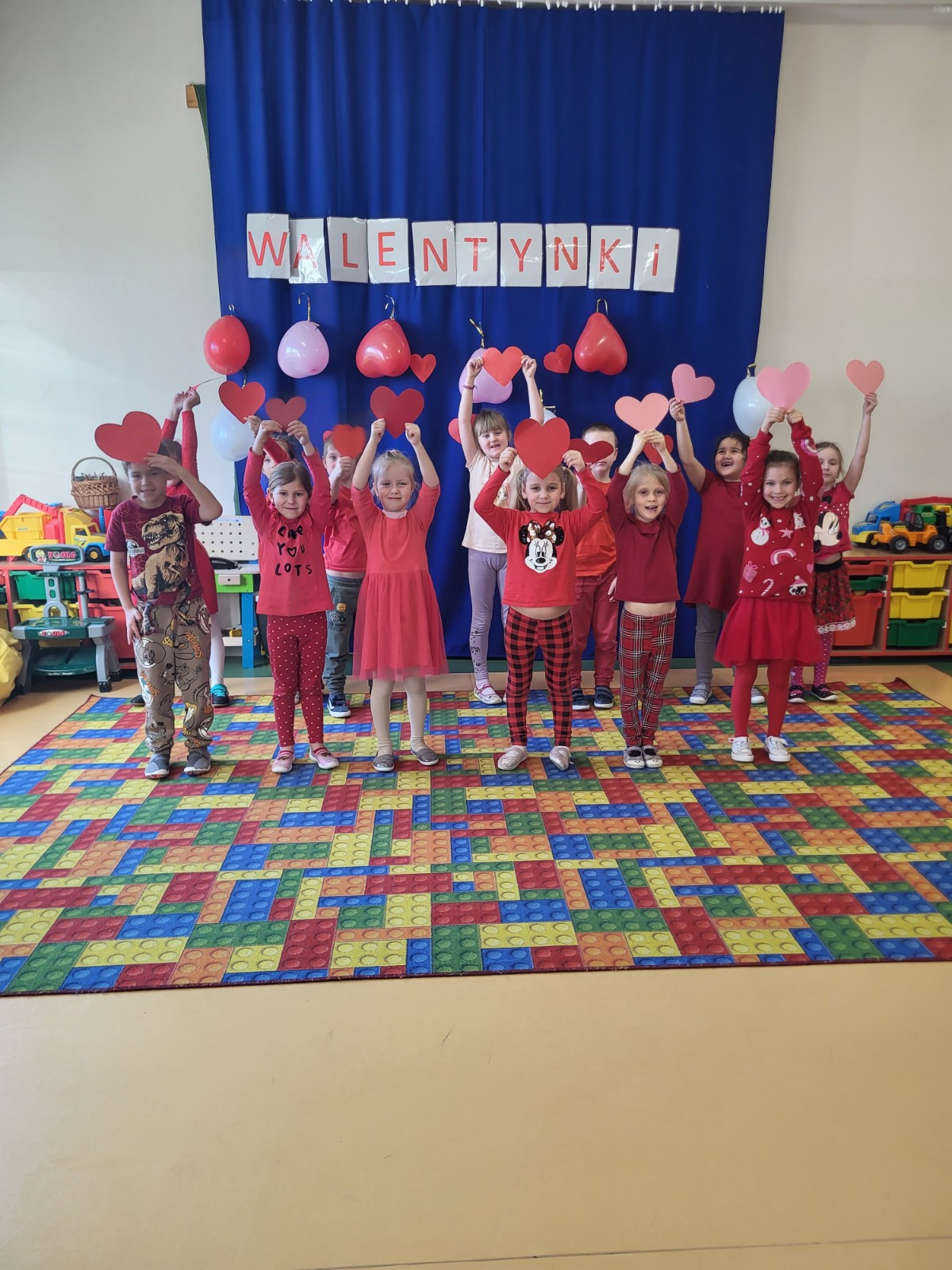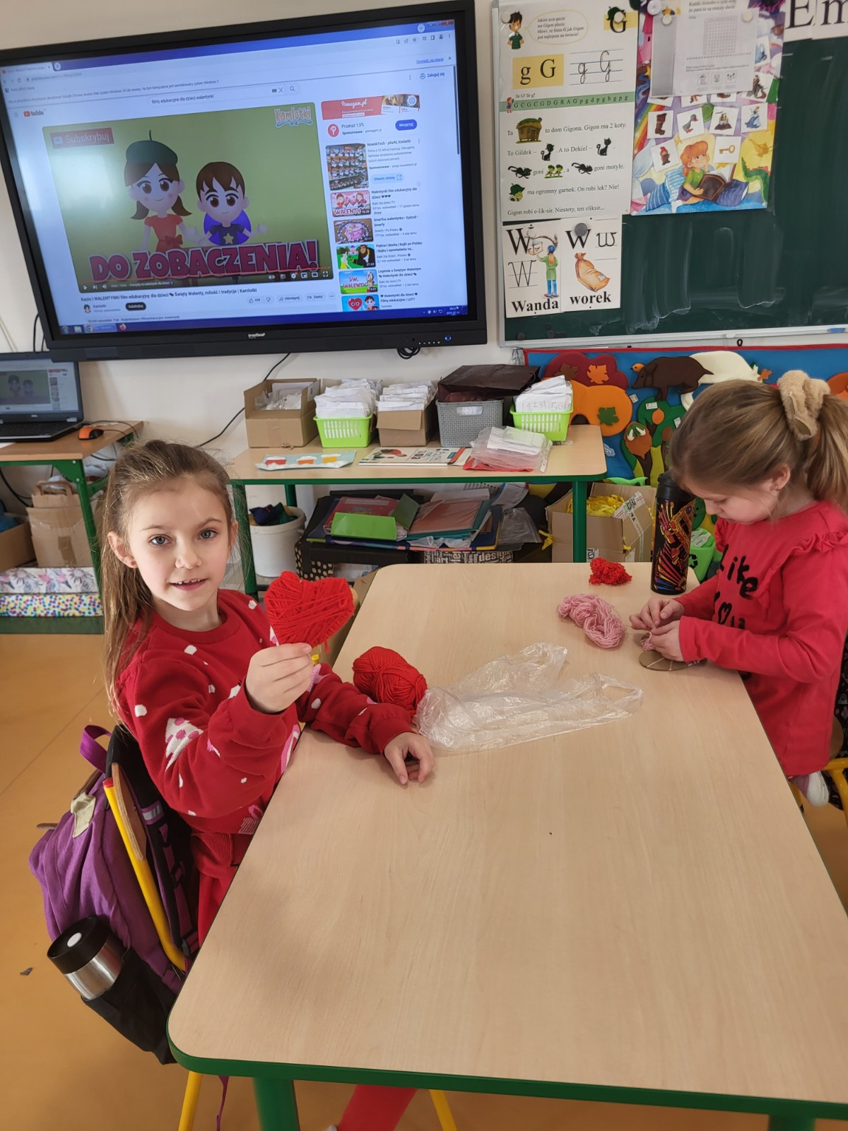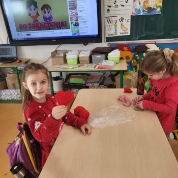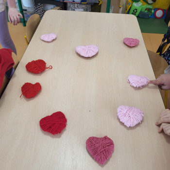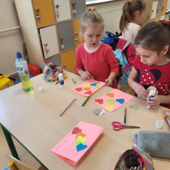 Były czerwone serduszka i kartki wykonane na zajęciach.