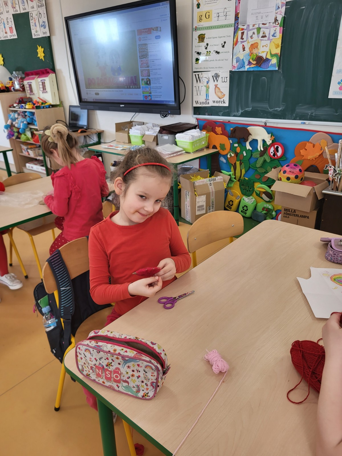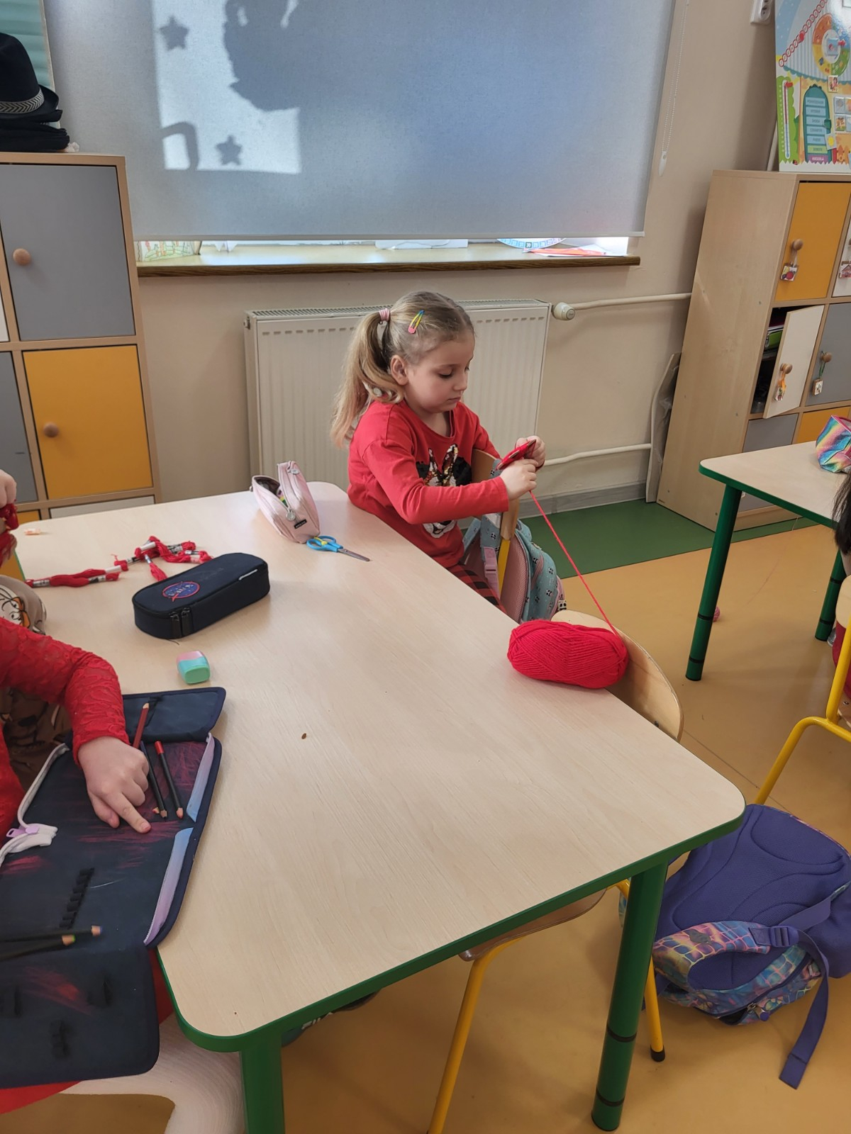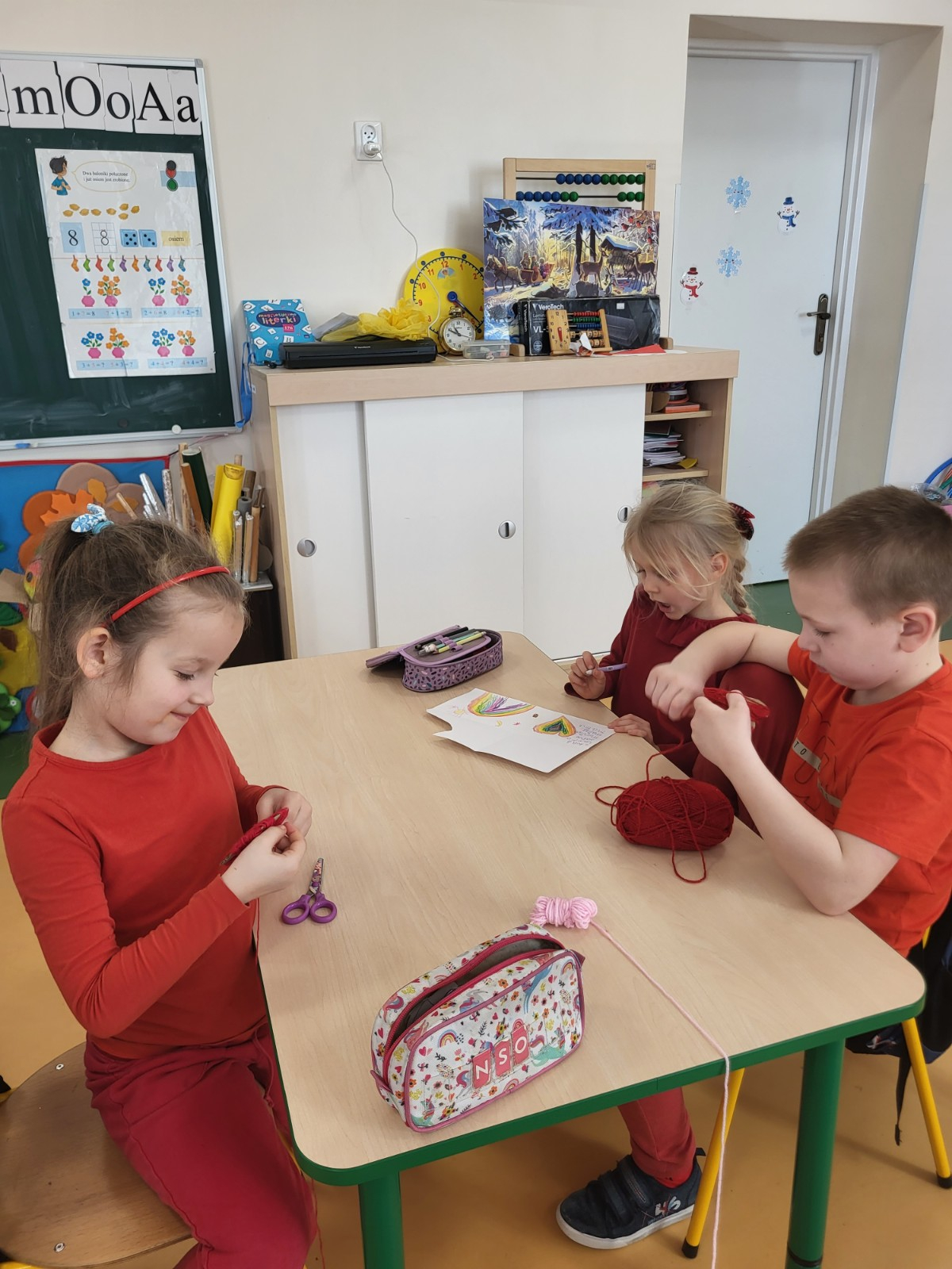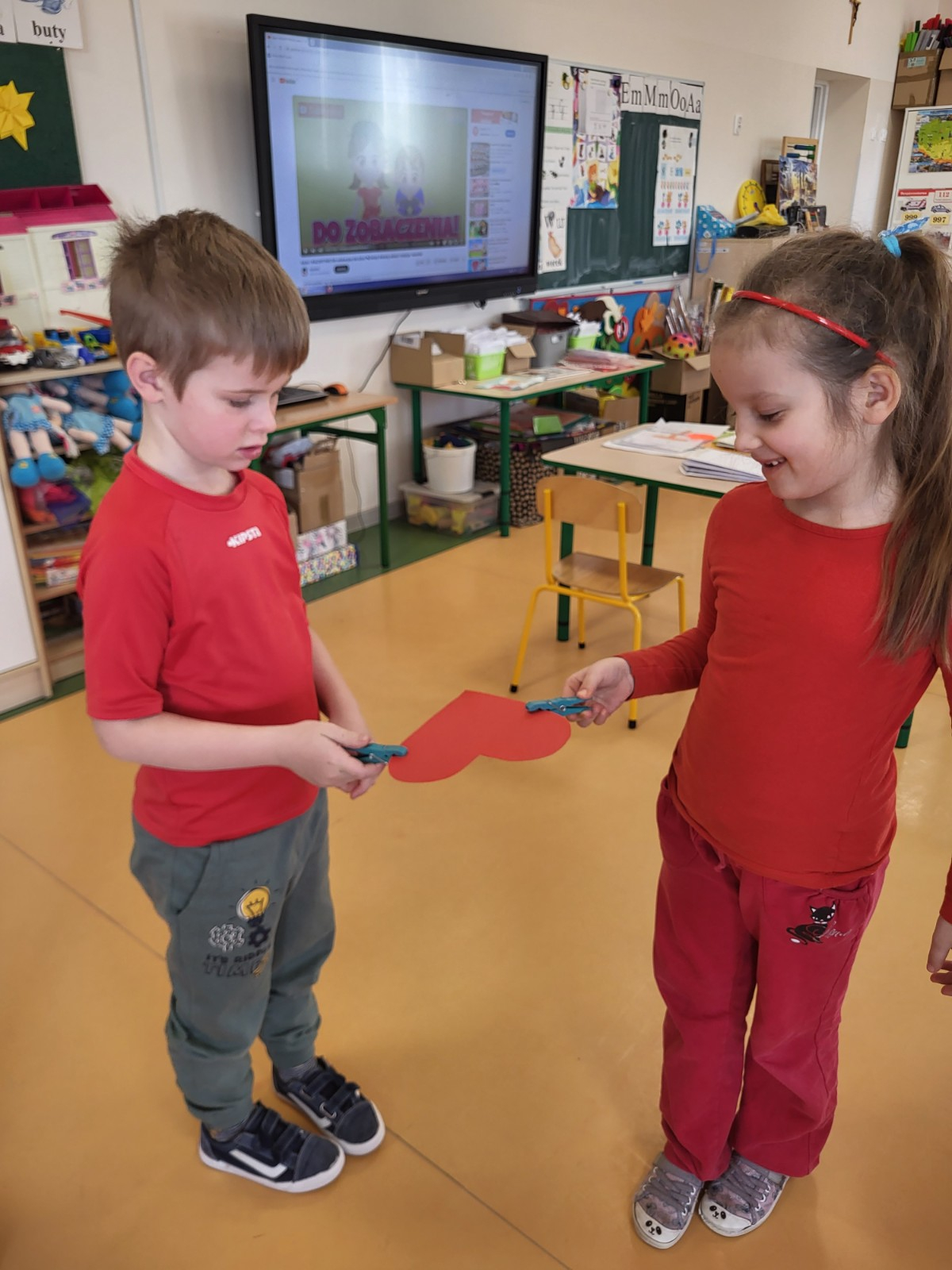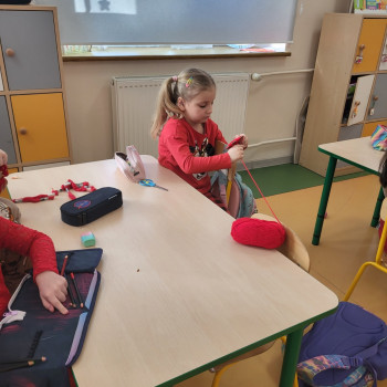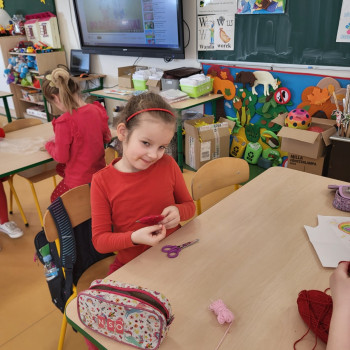 Były czerwone serduszka i kartki wykonane na zajęciach.