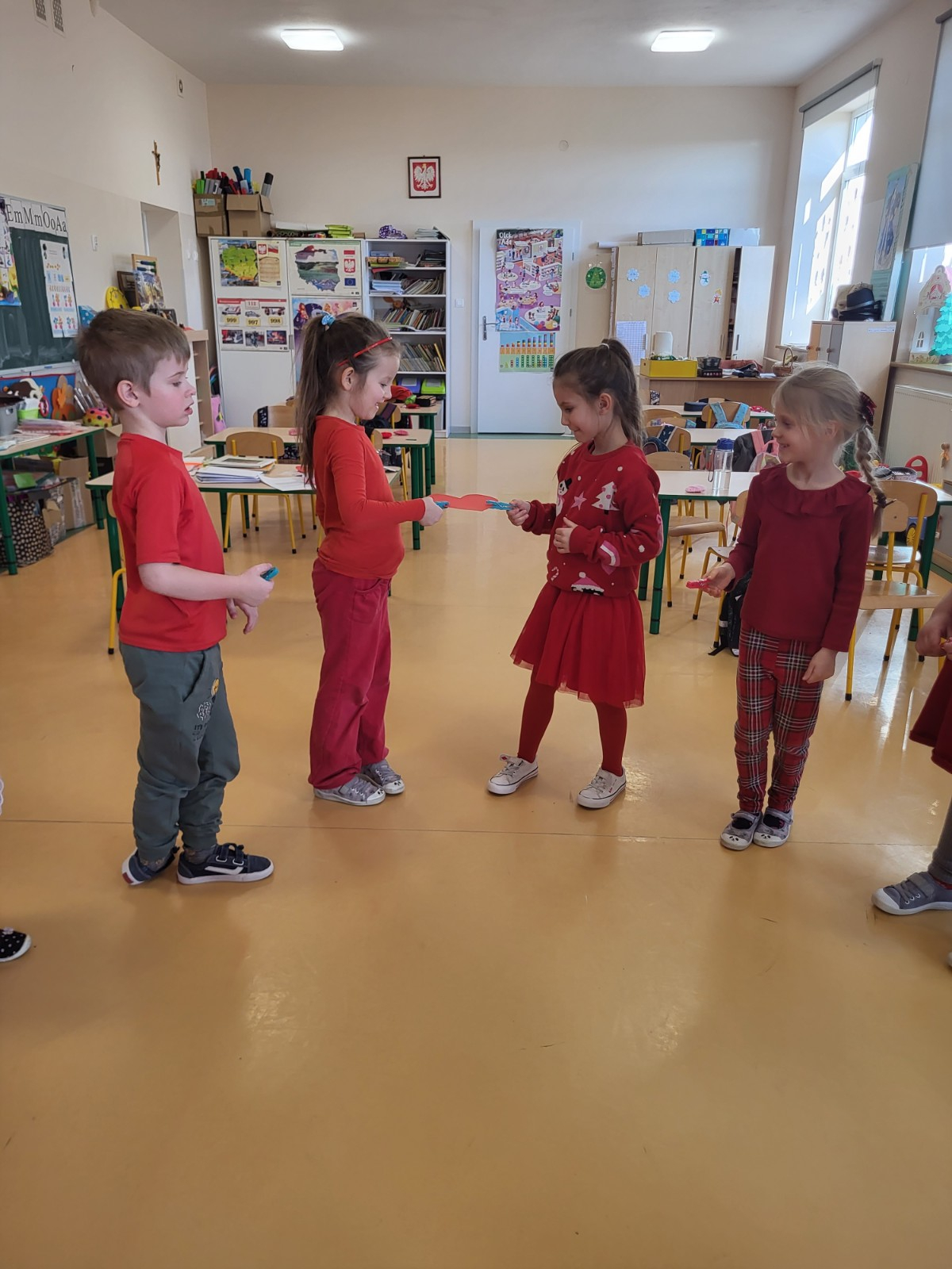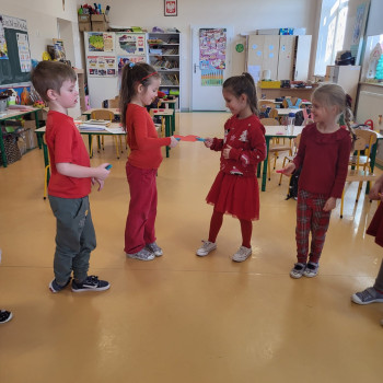 Dzieci jak przystało na ten dzień pojawiły się w przedszkolu ubrane na czerwono.