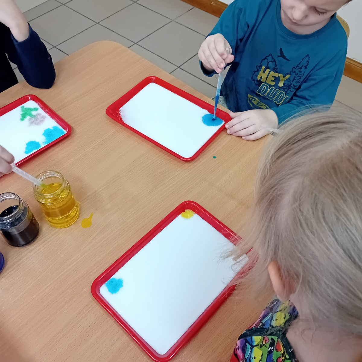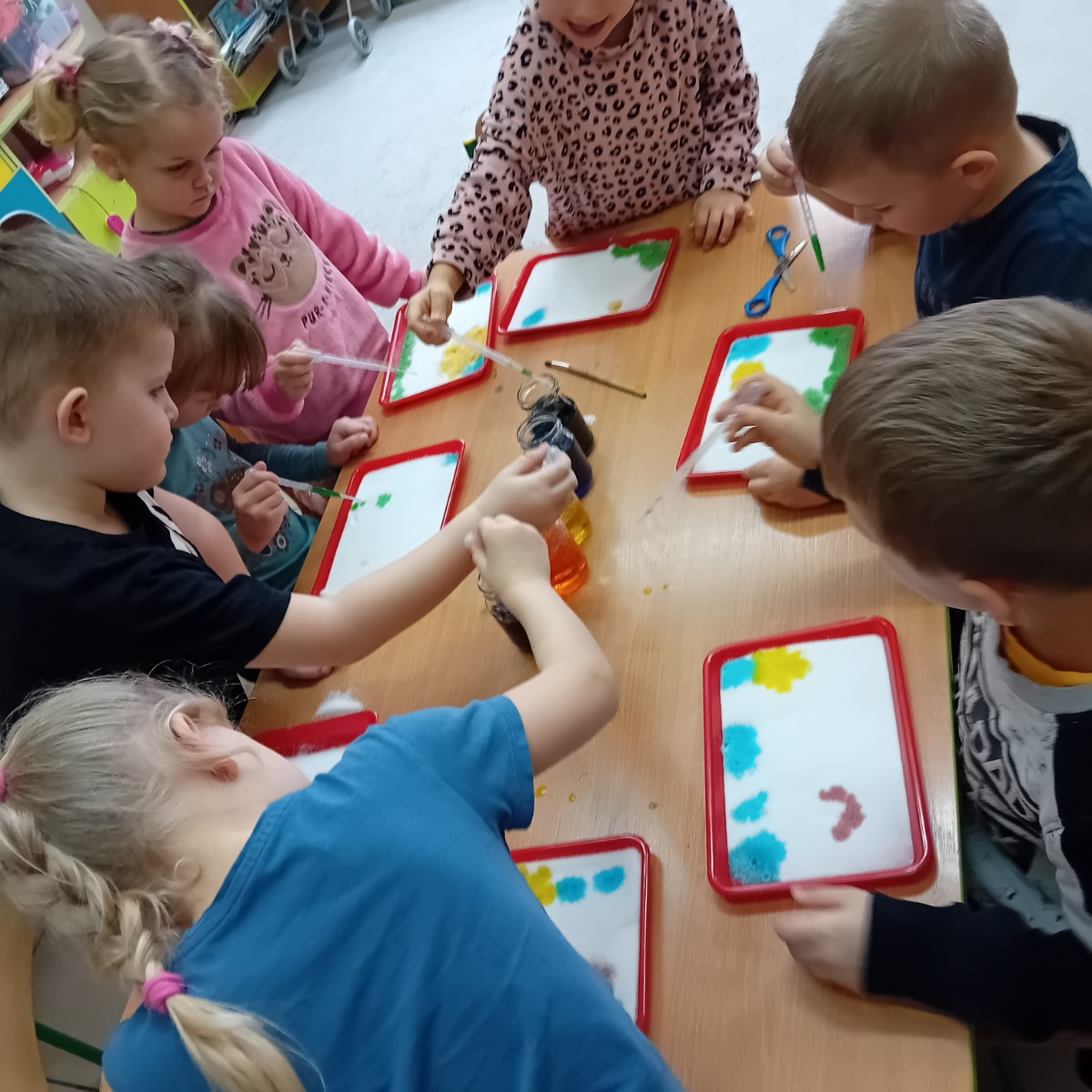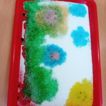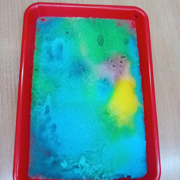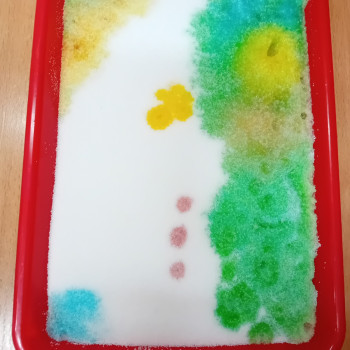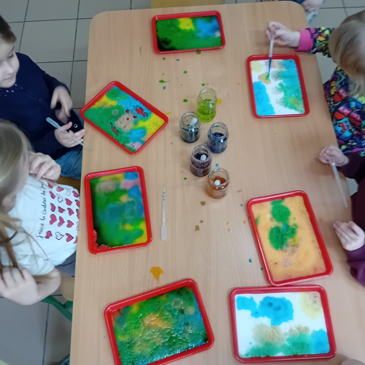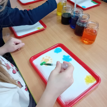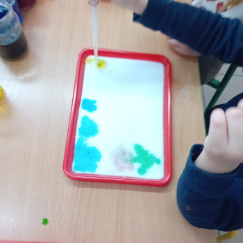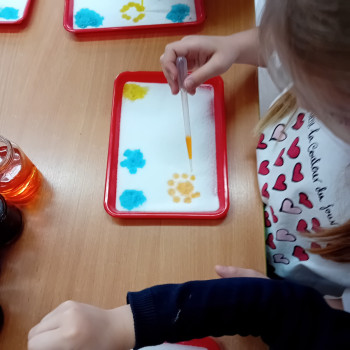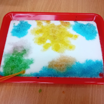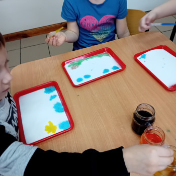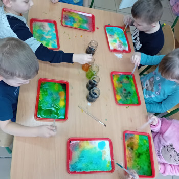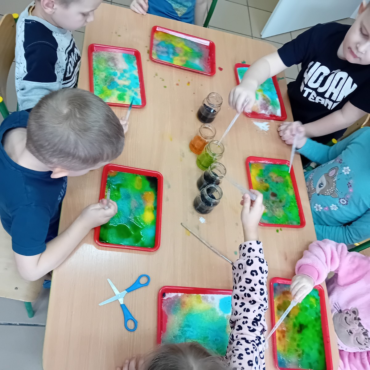 Zaczynamy tydzień z eksperymentami. Grupa Sówki stworzyła piękne kolorowe mozaiki.