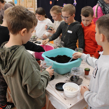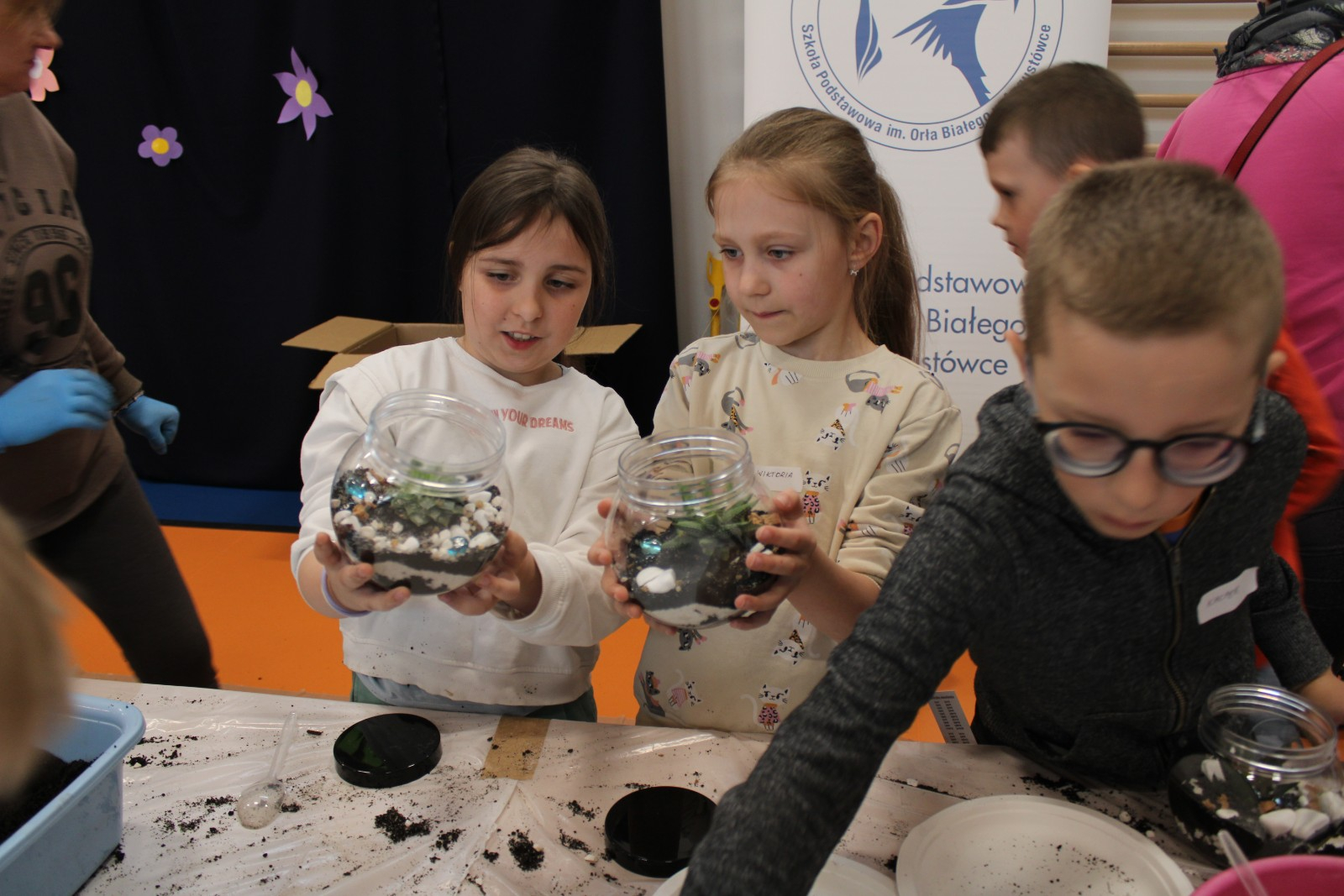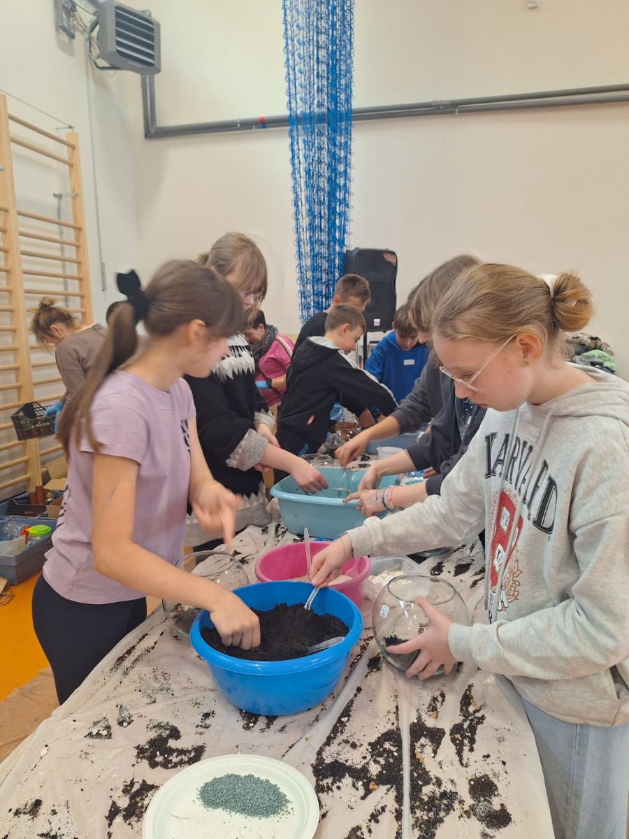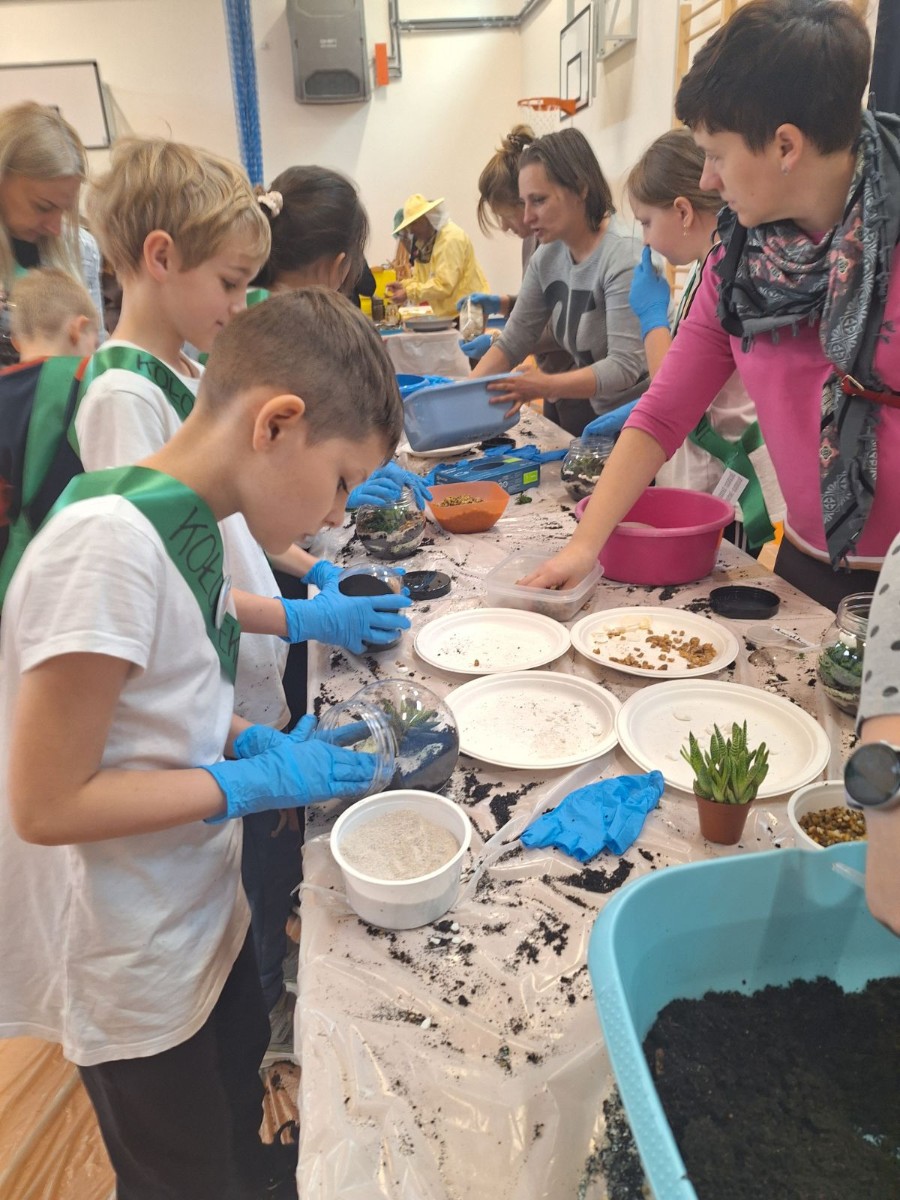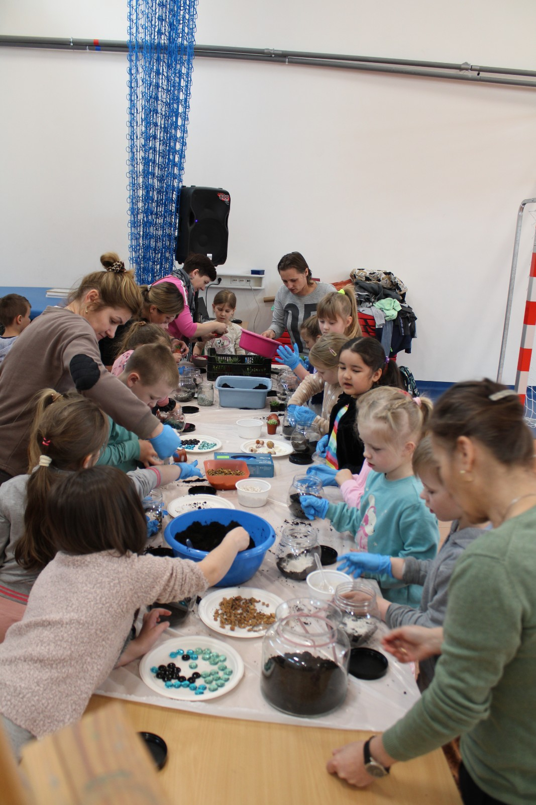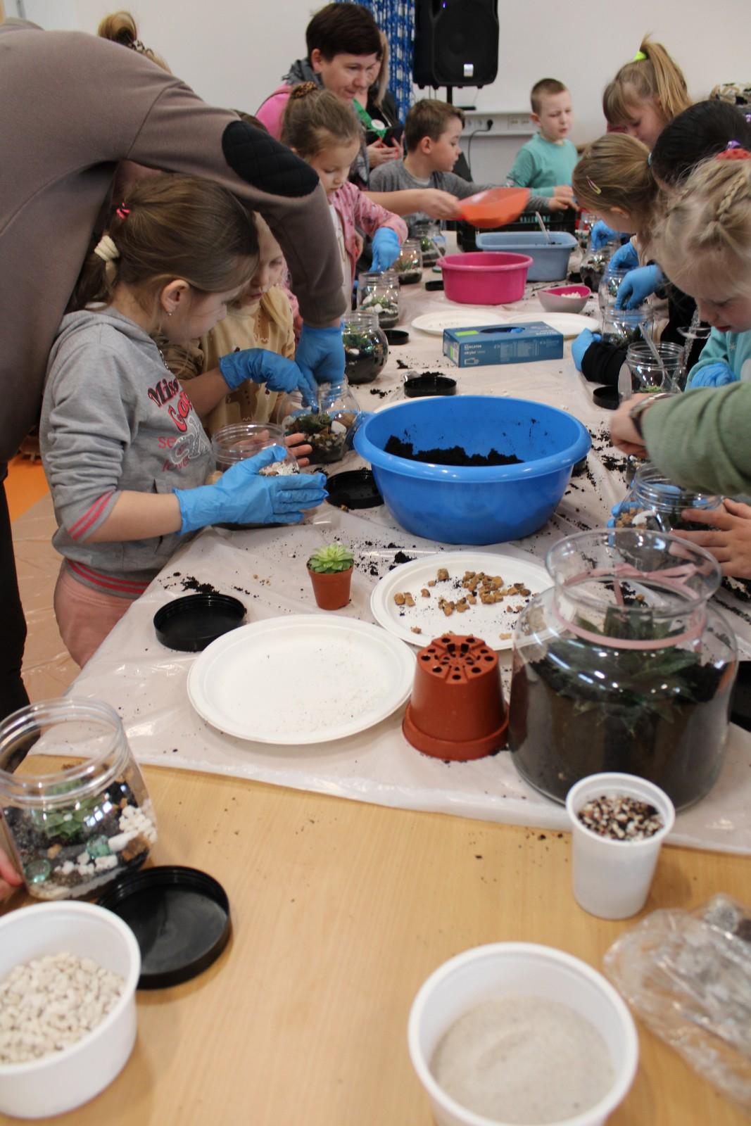 Wielką popularnością cieszyły się warsztaty kreatywne ,,Las w słoiku” obsługiwane przez rodziców klasy III.