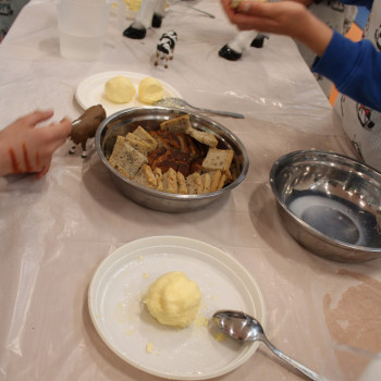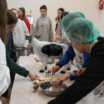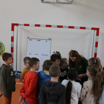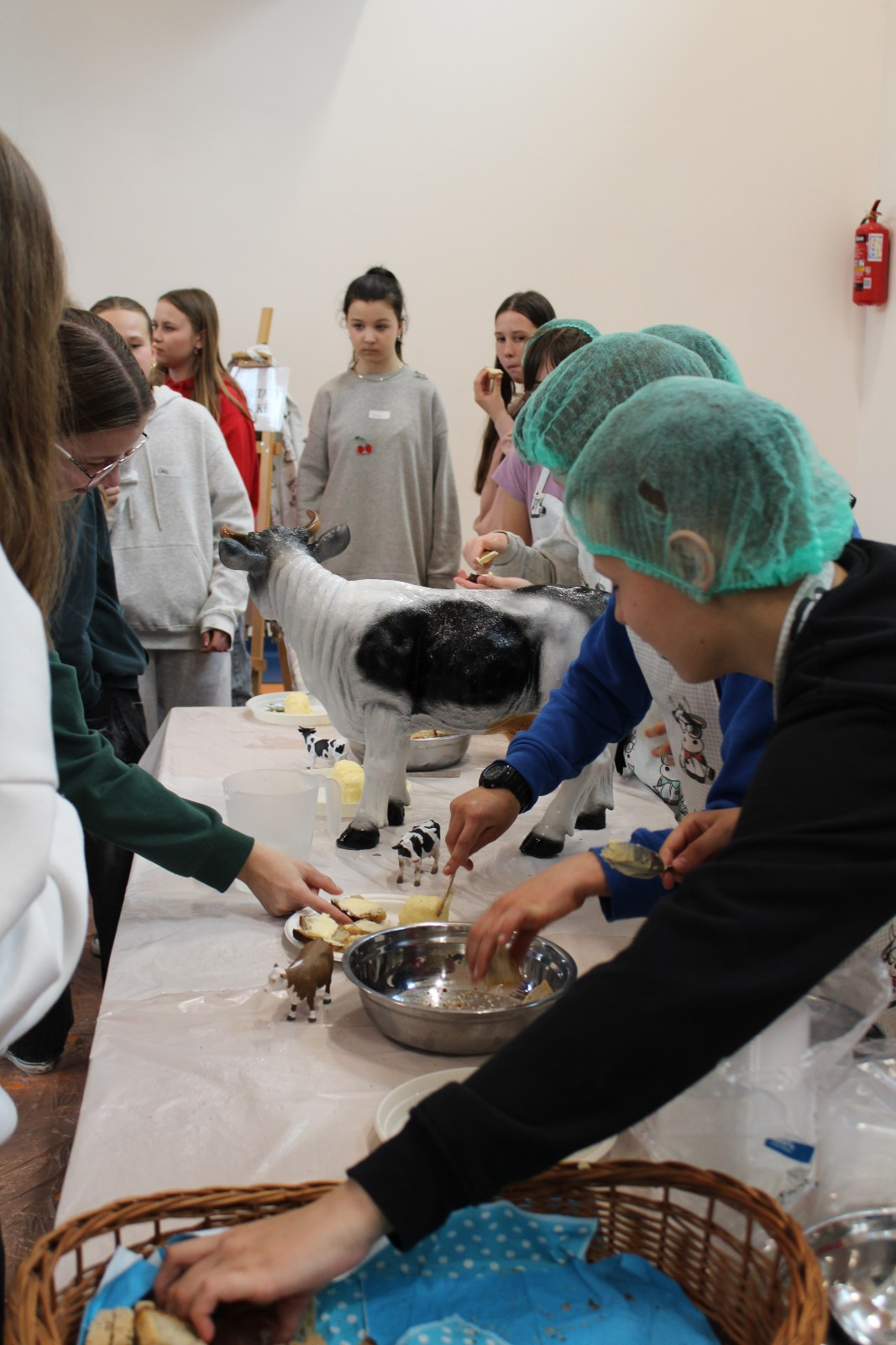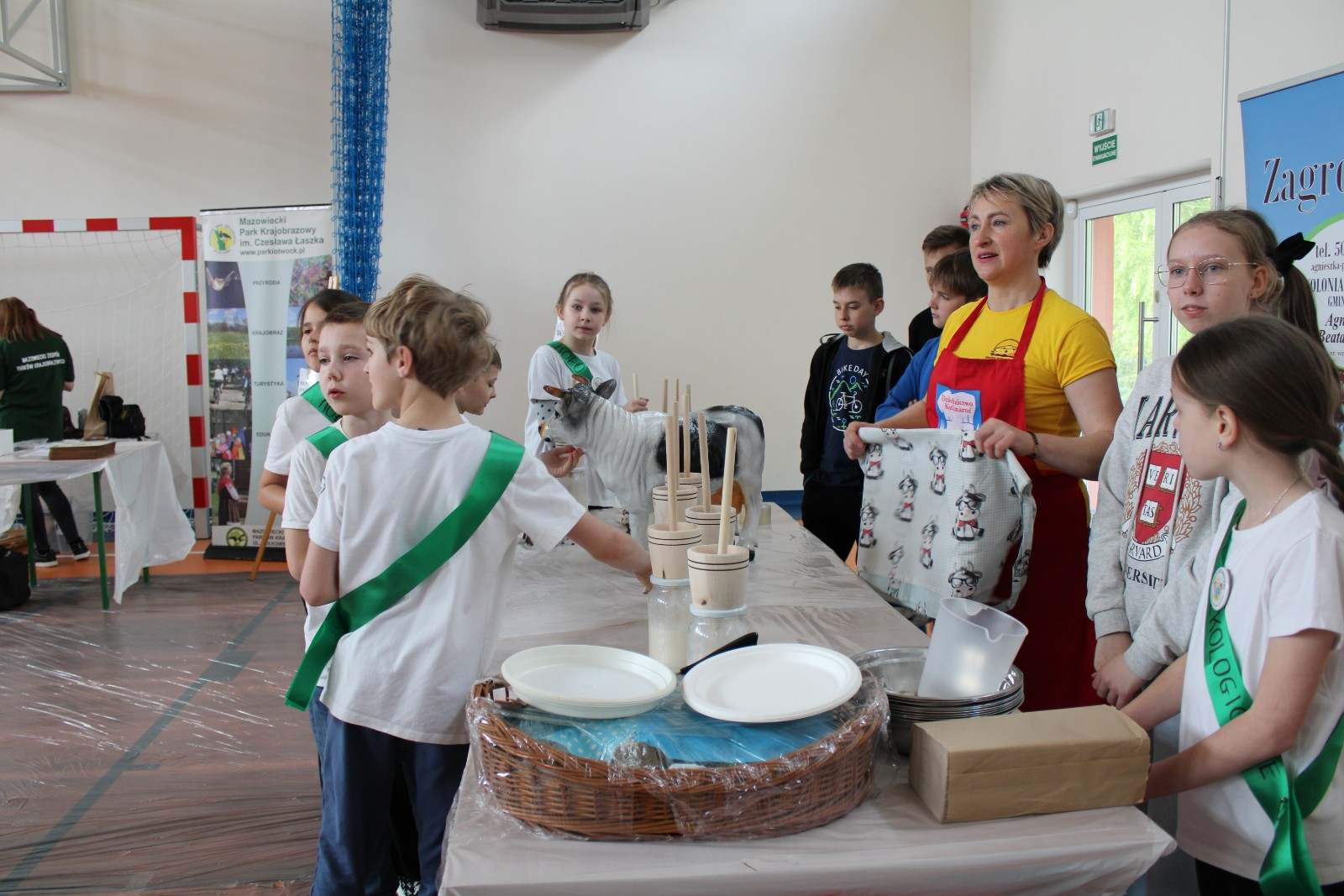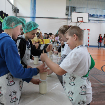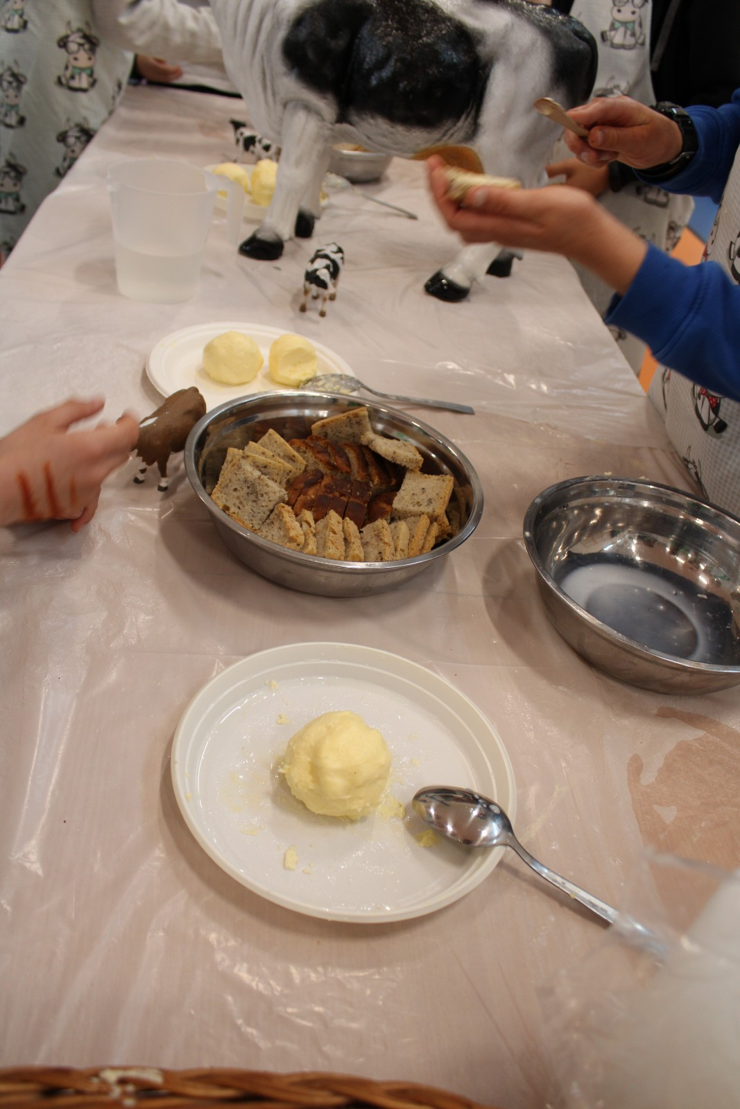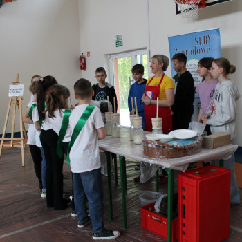 Pani Agnieszka Piętka, która na co dzień prowadzi gospodarstwo ekologiczne opowiedziała uczniom o pełnowartościowych produktach nabiałowych wytwarzanych tradycyjnymi metodami. Dzieci mogły samodzielnie zrobić masełko, a następnie spróbować chlebka posmarowanego tym smacznym produktem.