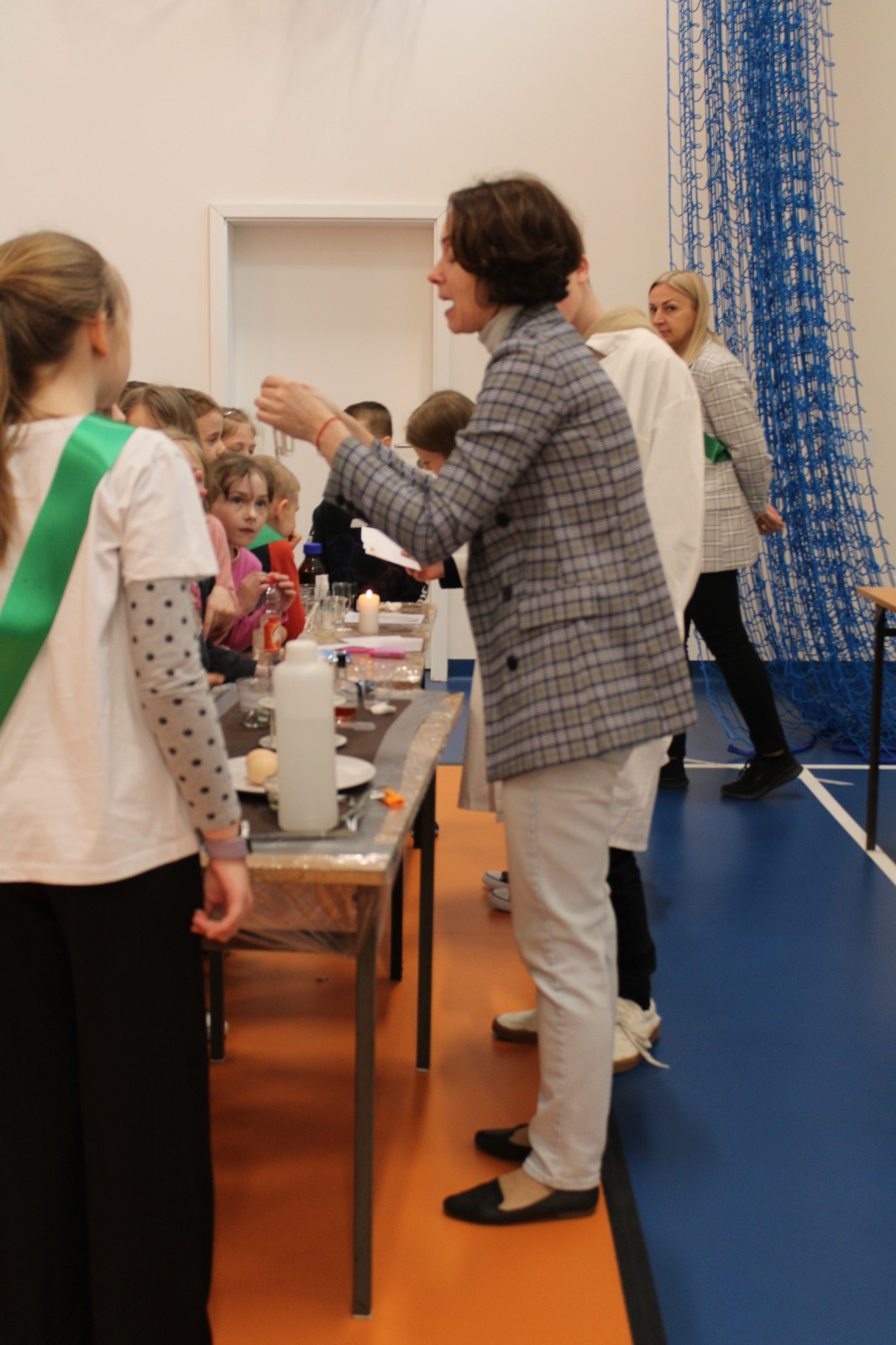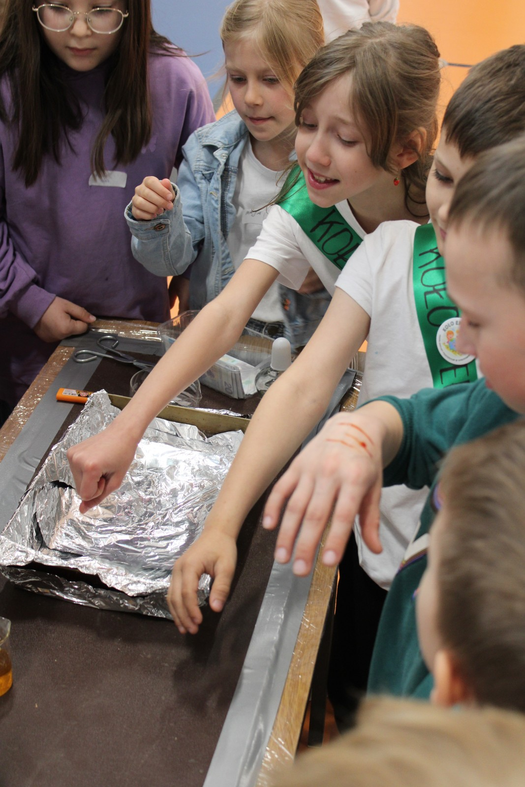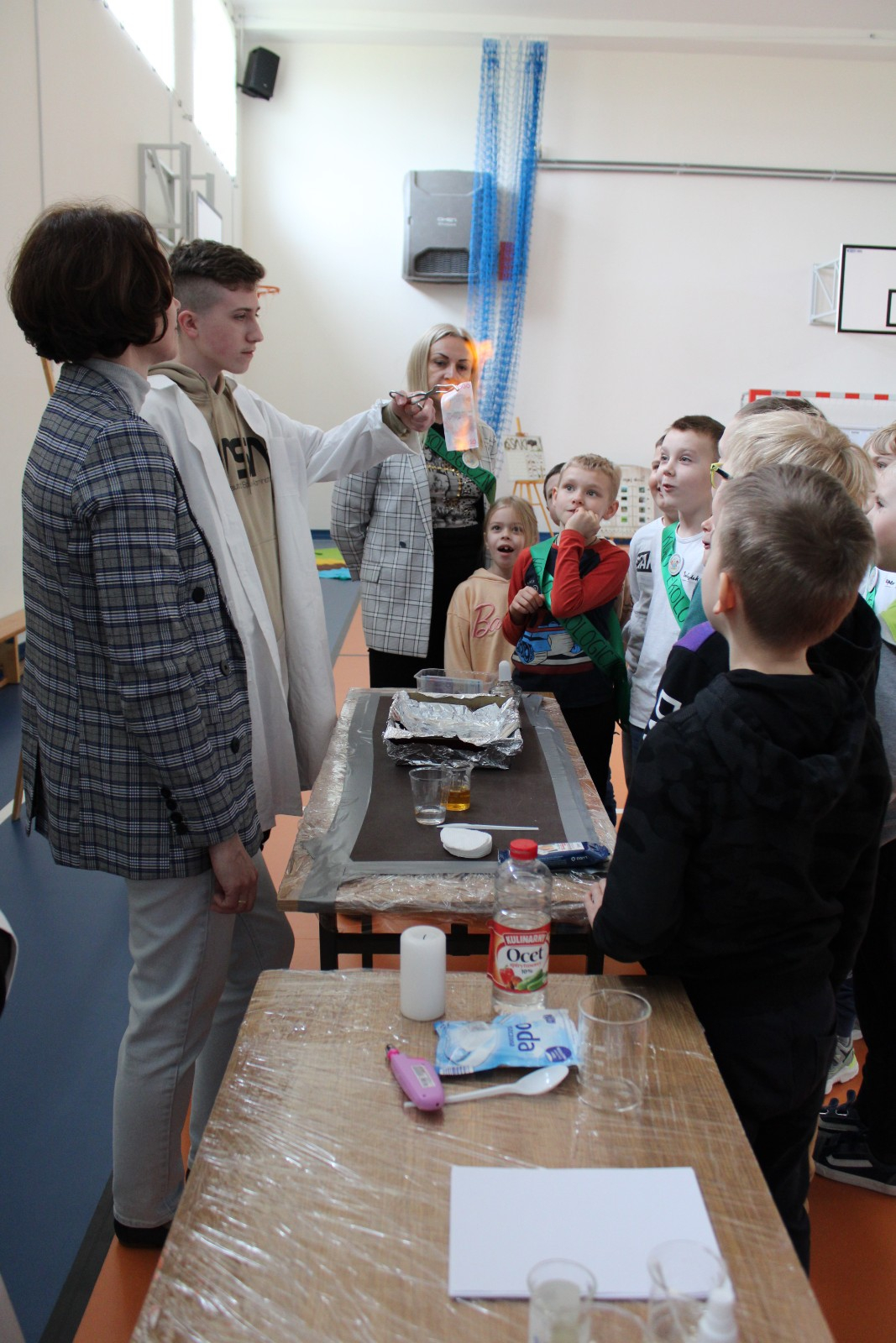 Pani Justyna Łykus poprowadziła ciekawe doświadczenia chemiczne. Eksperymenty chemiczne z pewnością rozbudziły w dzieciach ciekawość i apetyt na więcej oraz okazały się świetną zabawą.