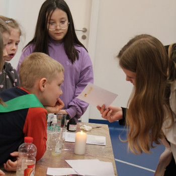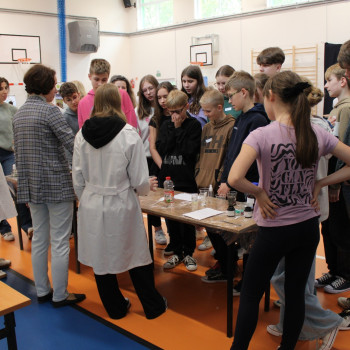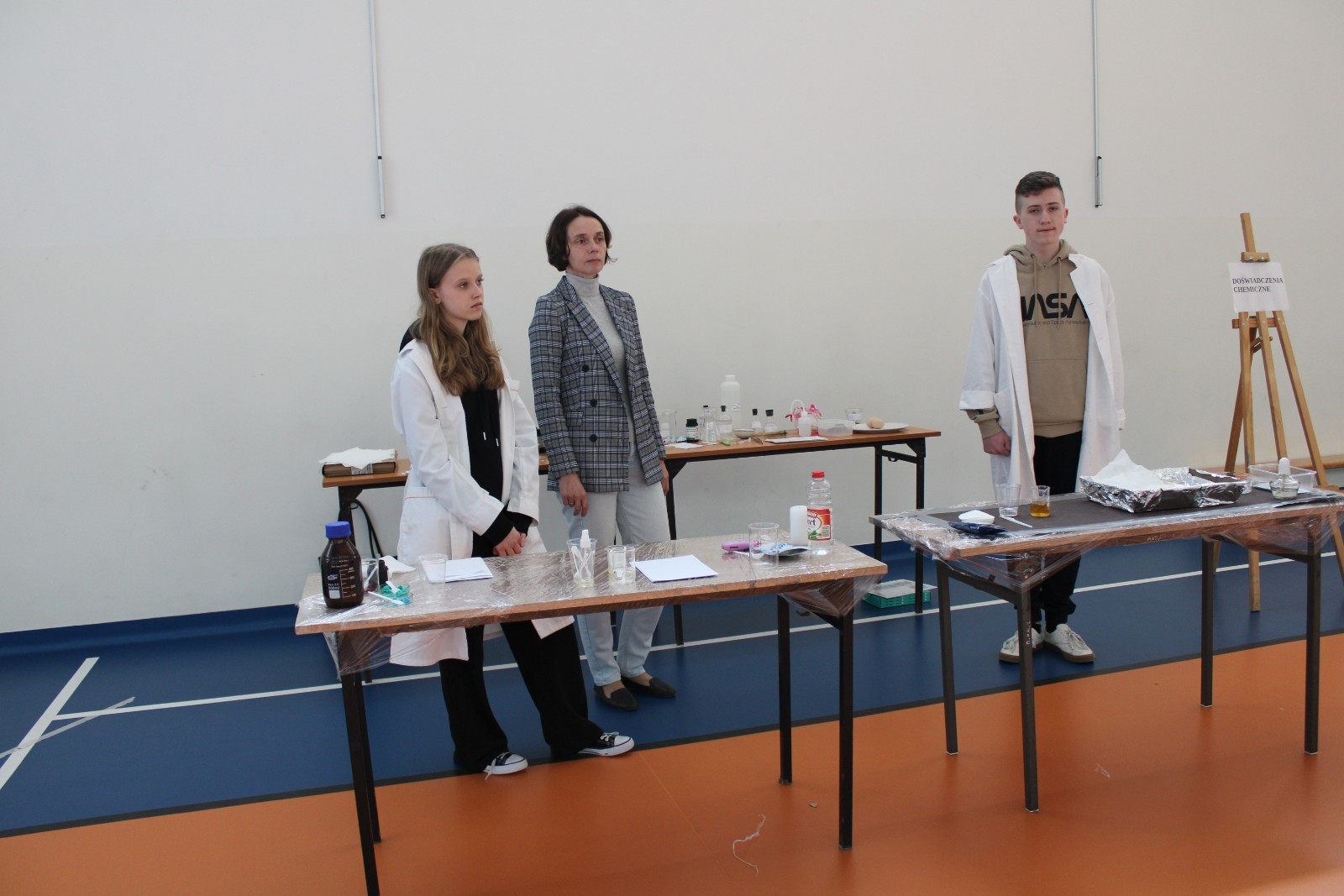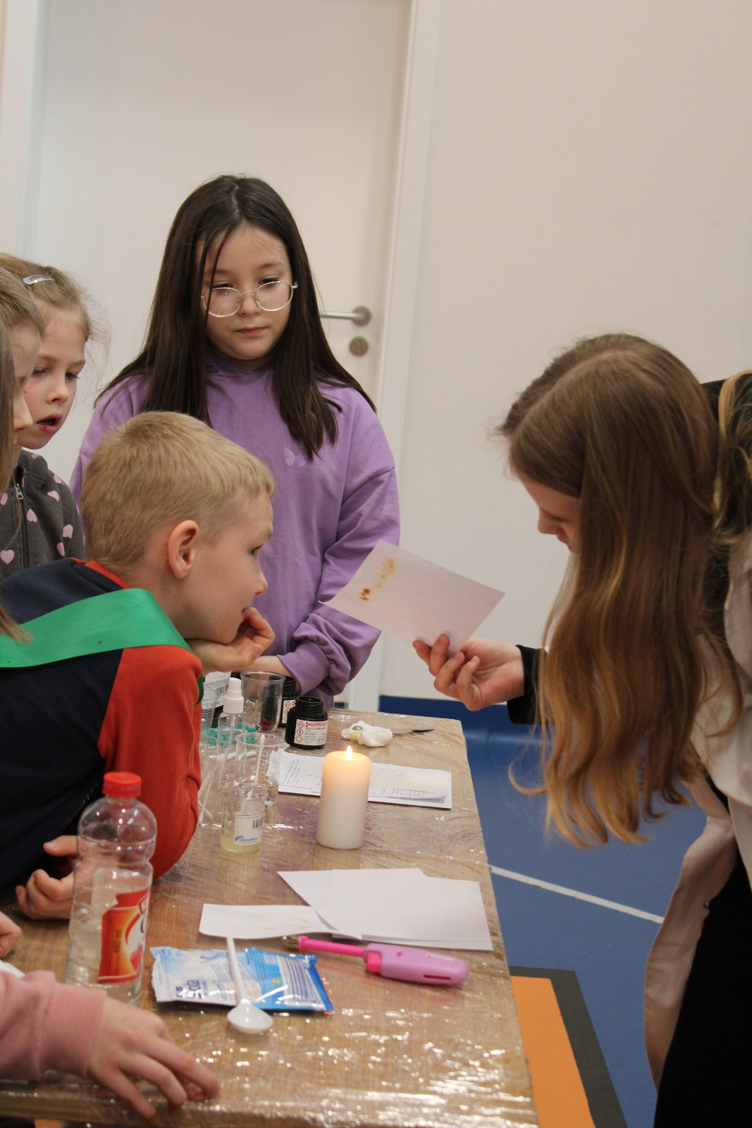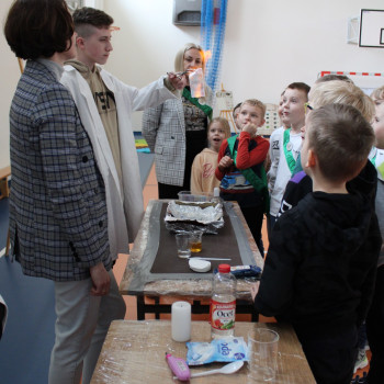 Pani Justyna Łykus poprowadziła ciekawe doświadczenia chemiczne. Eksperymenty chemiczne z pewnością rozbudziły w dzieciach ciekawość i apetyt na więcej oraz okazały się świetną zabawą.