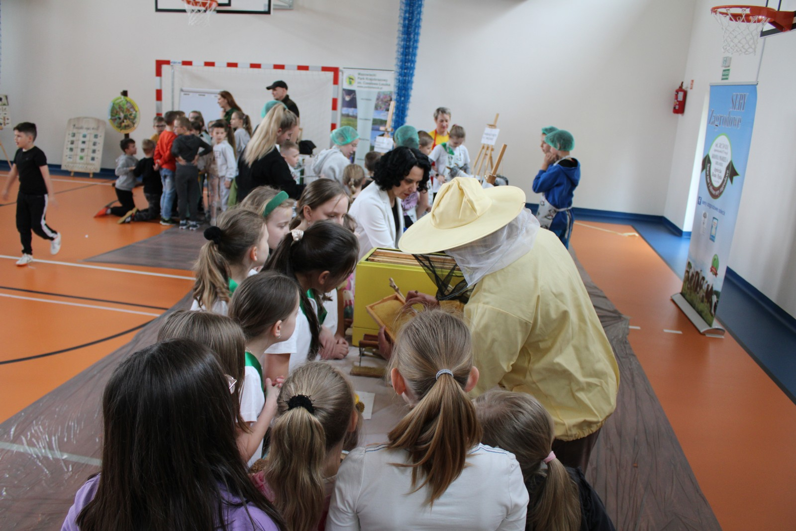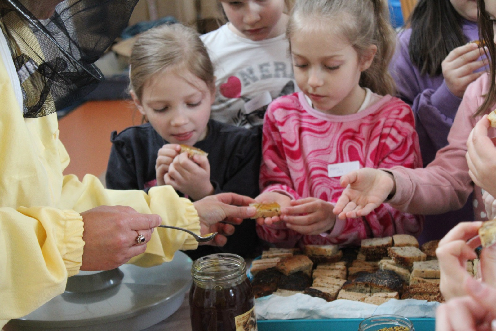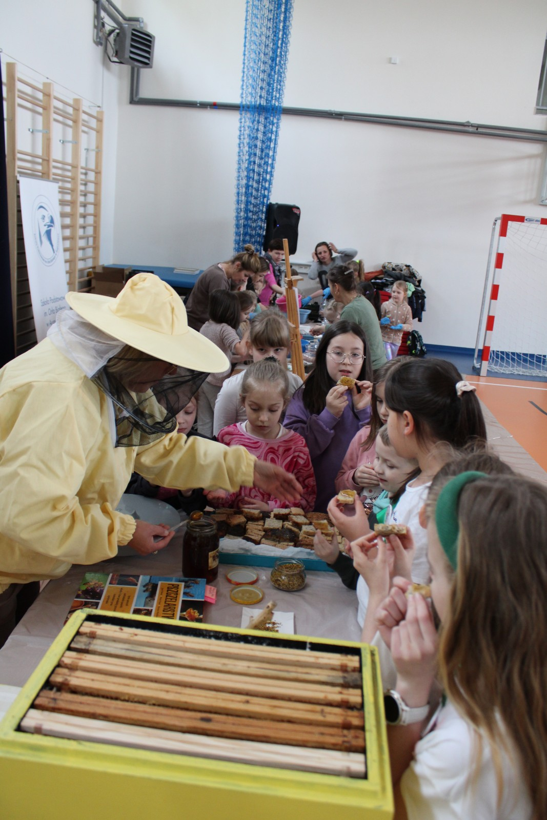 Pszczelarz pani Marzena Sowa przybliżyła dzieciom świat pszczół i ich znaczącą rolę dla środowiska naturalnego i człowieka. Można było dowiedzieć si, jak pozyskuje się miód, skosztować tego słodkiego przysmaku, a także zobaczyć odzież i akcesoria pszczelarskie.