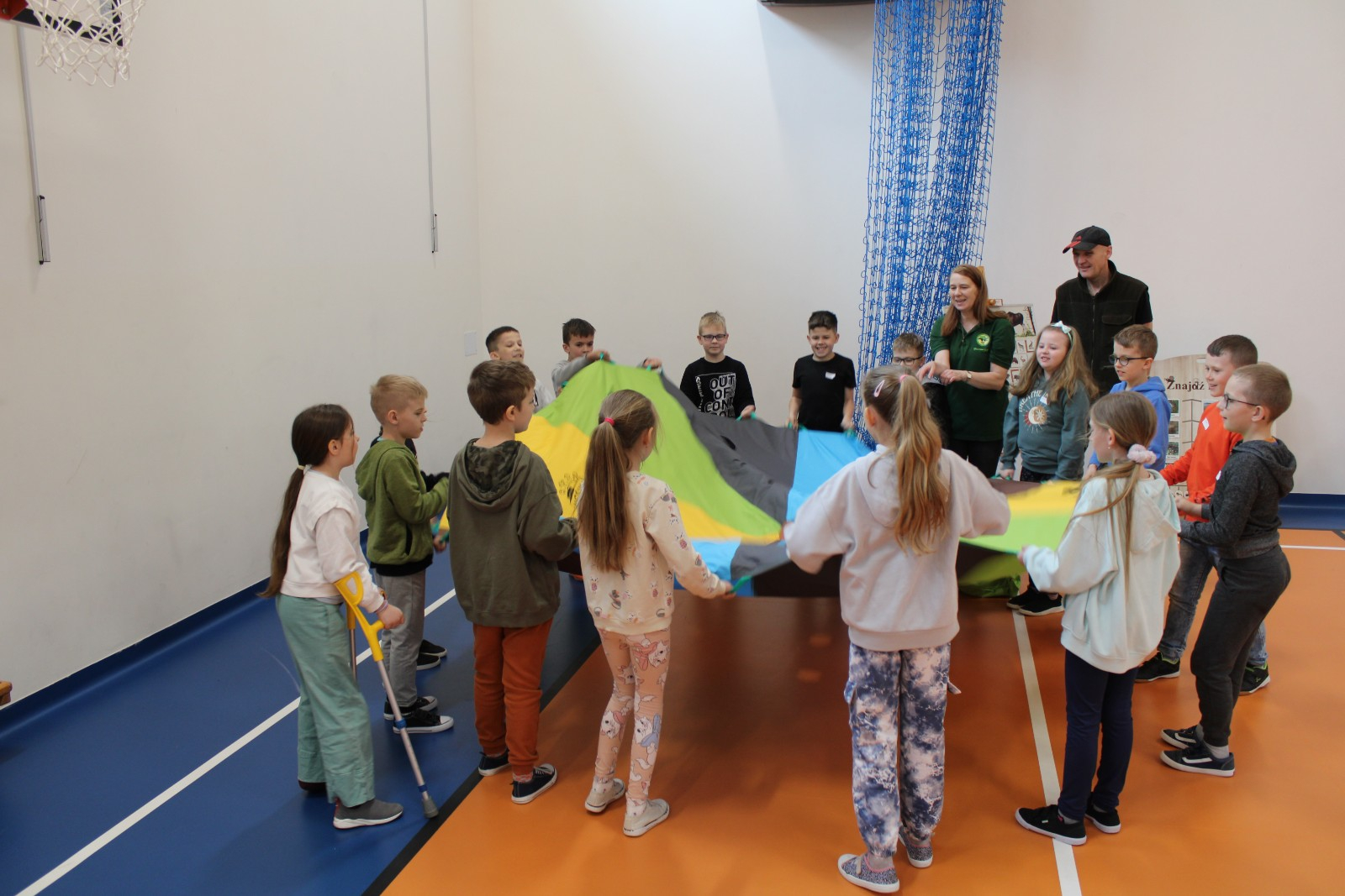 Leśnicy z Mazowieckiego Parku Krajobrazowego w Otwocku przygotowali dla uczestników ekologiczne gry edukacyjne, w tym przyrodnicze koło fortuny, podczas którego sprawdzana była wiedza m.in. z zakresu ochrony środowiska, segregacji odpadów i bioróżnorodności.