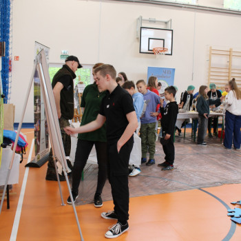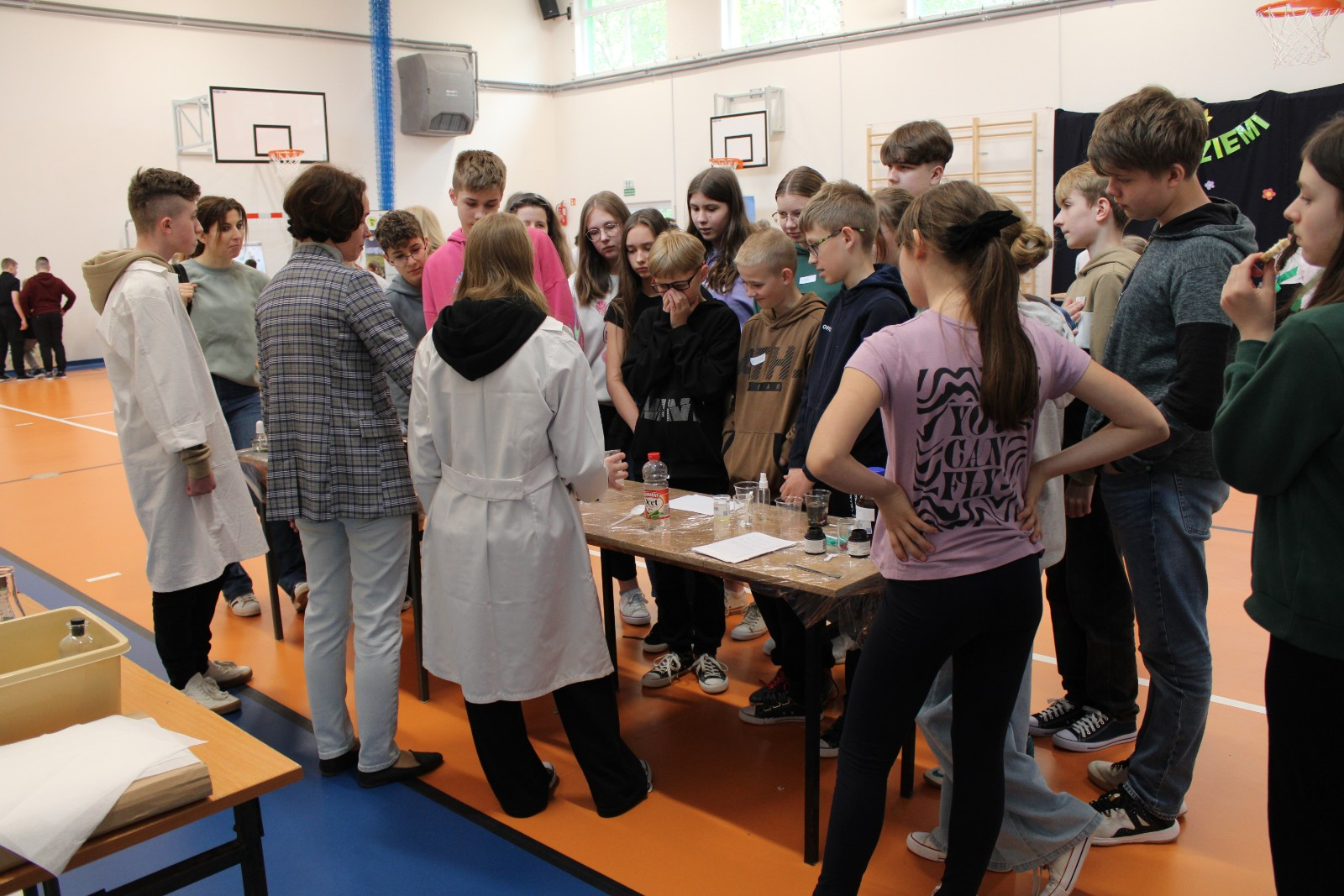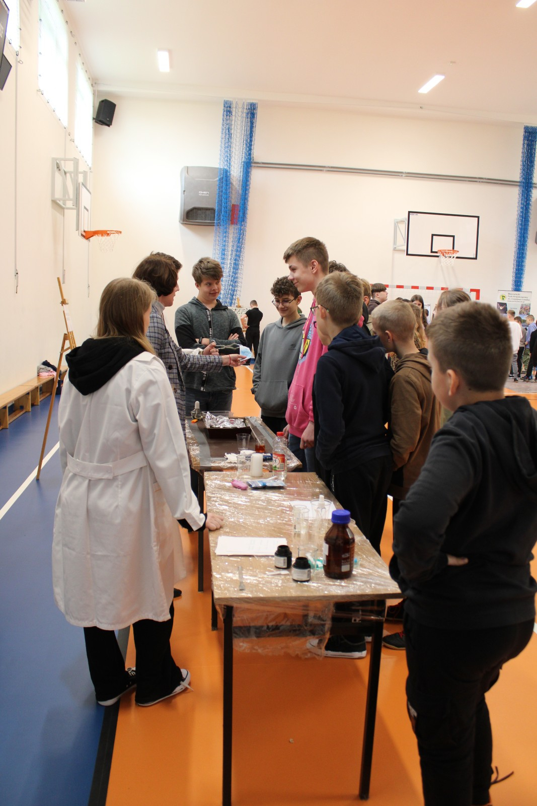 Wiodącym tematem całej imprezy stał się szeroko pojęta ,,ekologia”. Uczniowie mogli poszerzać wiedzę na temat przyrody i brać udział w wielu różnorodnych doświadczeniach, pokazach, zabawach. Spacerując na Sali gimnastycznej można było odwiedzić kolejne stoiska.