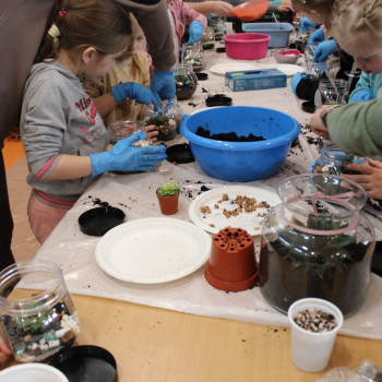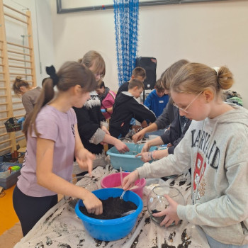 Dzieci założyły rękawiczki i przystąpiły do tworzenia przepięknych, okazałych kompozycji. Efekty były zaskakujące.