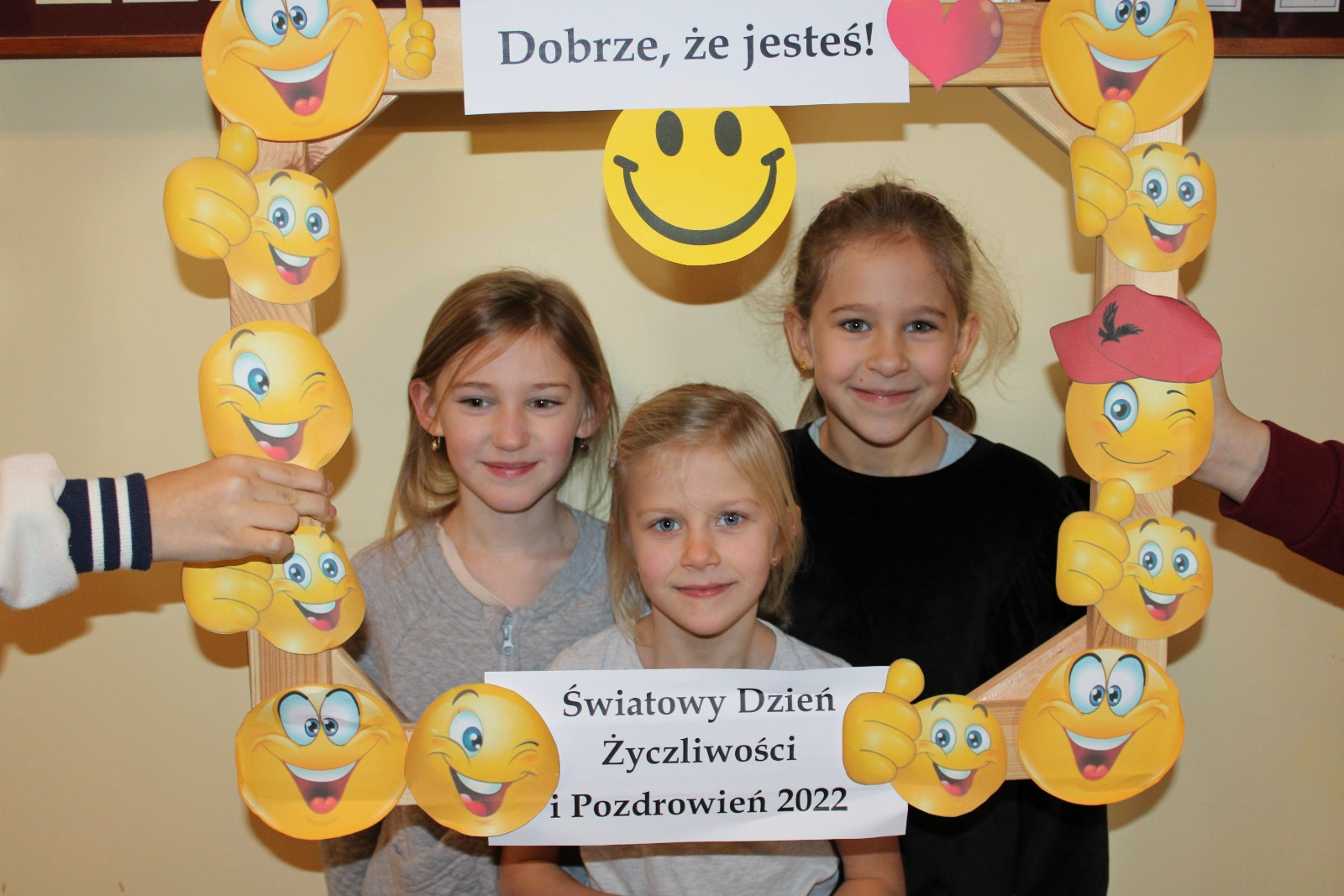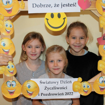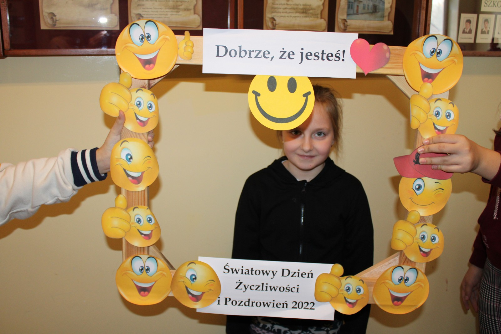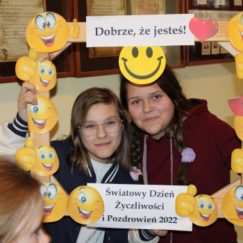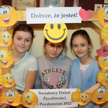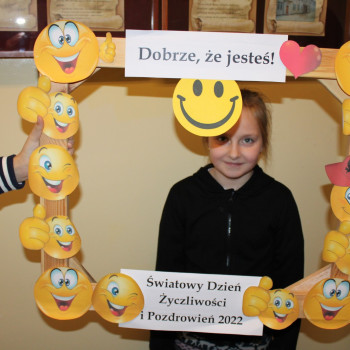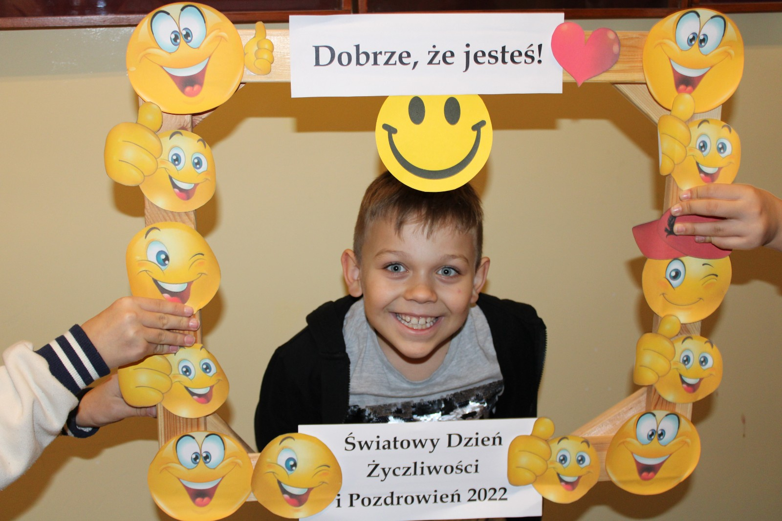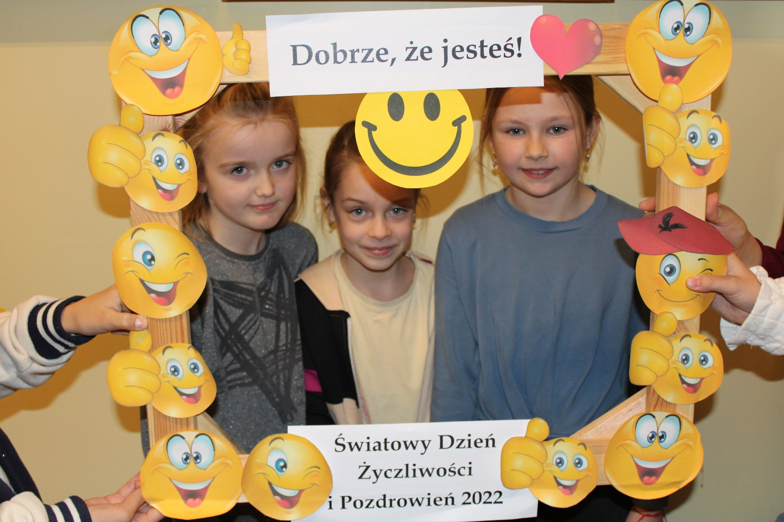 W poniedziałek 21 listopada 2022 roku obchodziliśmy w szkole Światowy Dzień Życzliwości i Pozdrowień. Z tej okazji pani pedagog przygotowała dwie gazetki tematyczne oraz „Drzewko Życzliwości”, na którym każdy z uczniów zawieszał swój liść z napisanym przez siebie miłym pozdrowieniem. W czasie długich przerw można było zrobić sobie zdjęcie w okolicznościowej ramce „Dobrze, że jesteś” przygotowaną przez panią pedagog na ten dzień. Przy okazji Dnia Życzliwości i Pozdrowień nie można było zapomnieć o naszej adopcyjnej siostrze Belsie. Uczniowie z pomocą pani Weroniki Golewskiej napisali list w języku angielskim oraz wykonali kartki na nadchodzące święta, które pani pedagog wysłała do Afryki.