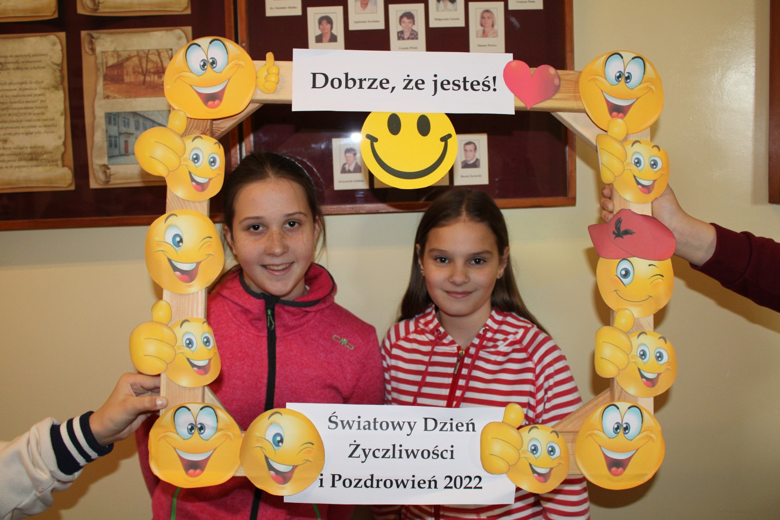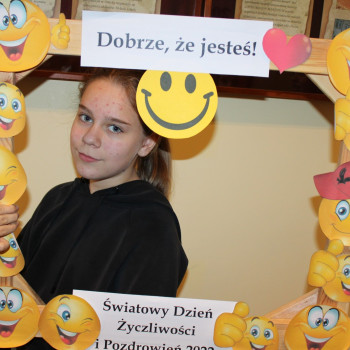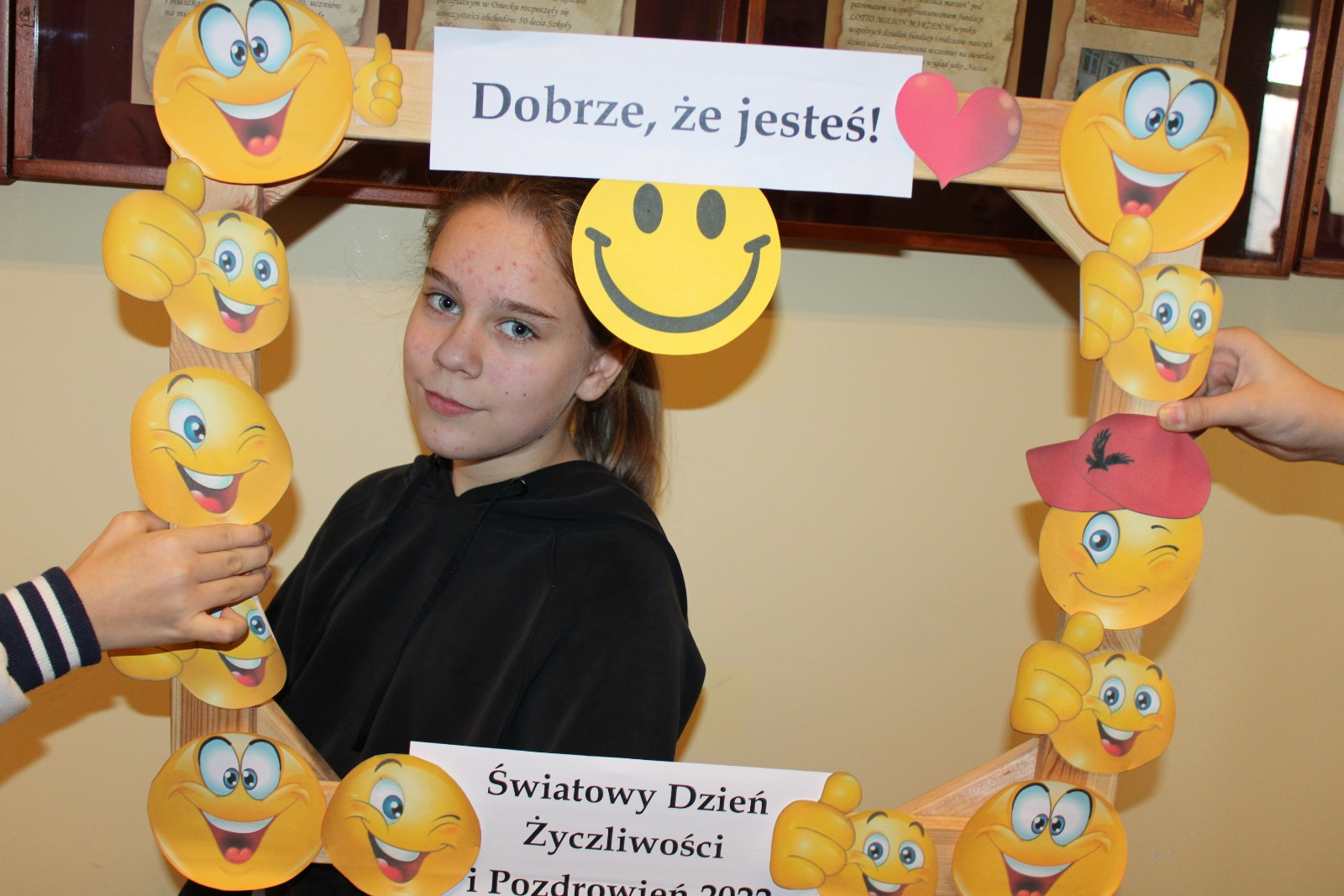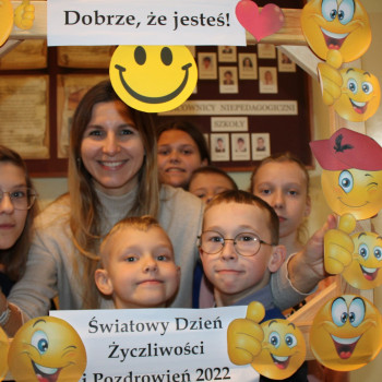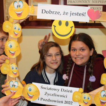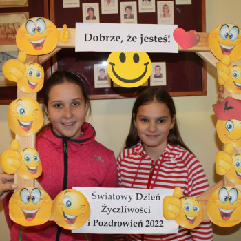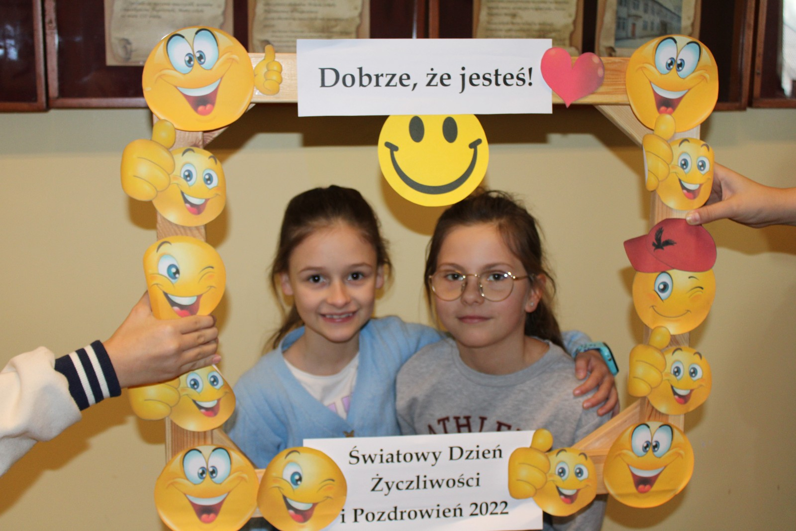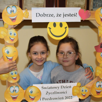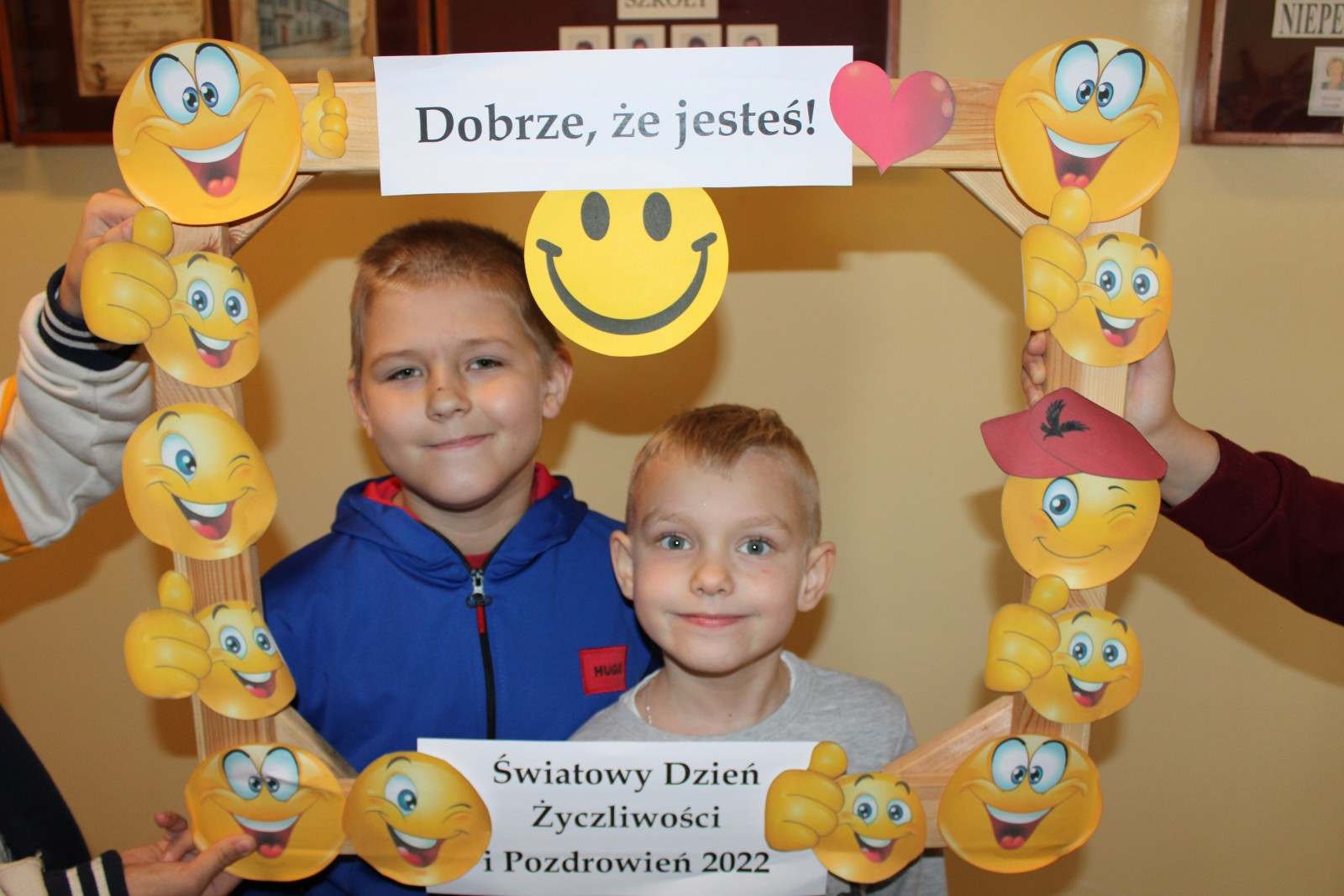 W poniedziałek 21 listopada 2022 roku obchodziliśmy w szkole Światowy Dzień Życzliwości i Pozdrowień. Z tej okazji pani pedagog przygotowała dwie gazetki tematyczne oraz „Drzewko Życzliwości”, na którym każdy z uczniów zawieszał swój liść z napisanym przez siebie miłym pozdrowieniem. W czasie długich przerw można było zrobić sobie zdjęcie w okolicznościowej ramce „Dobrze, że jesteś” przygotowaną przez panią pedagog na ten dzień. Przy okazji Dnia Życzliwości i Pozdrowień nie można było zapomnieć o naszej adopcyjnej siostrze Belsie. Uczniowie z pomocą pani Weroniki Golewskiej napisali list w języku angielskim oraz wykonali kartki na nadchodzące święta, które pani pedagog wysłała do Afryki.