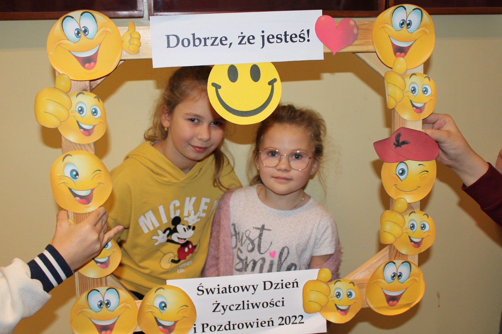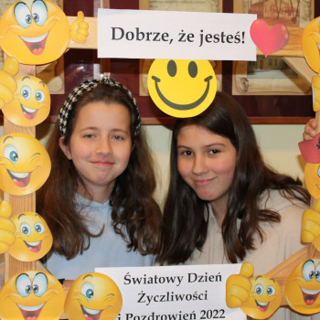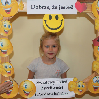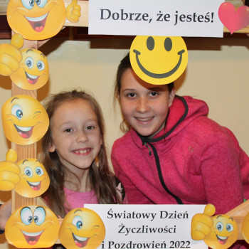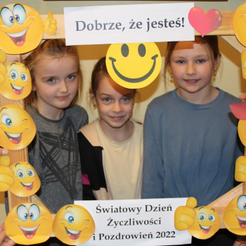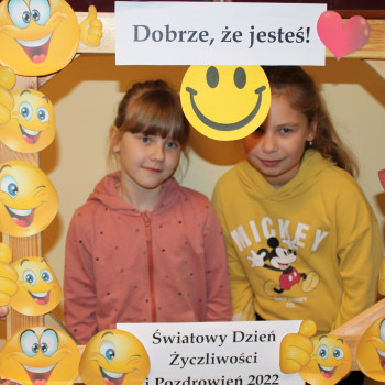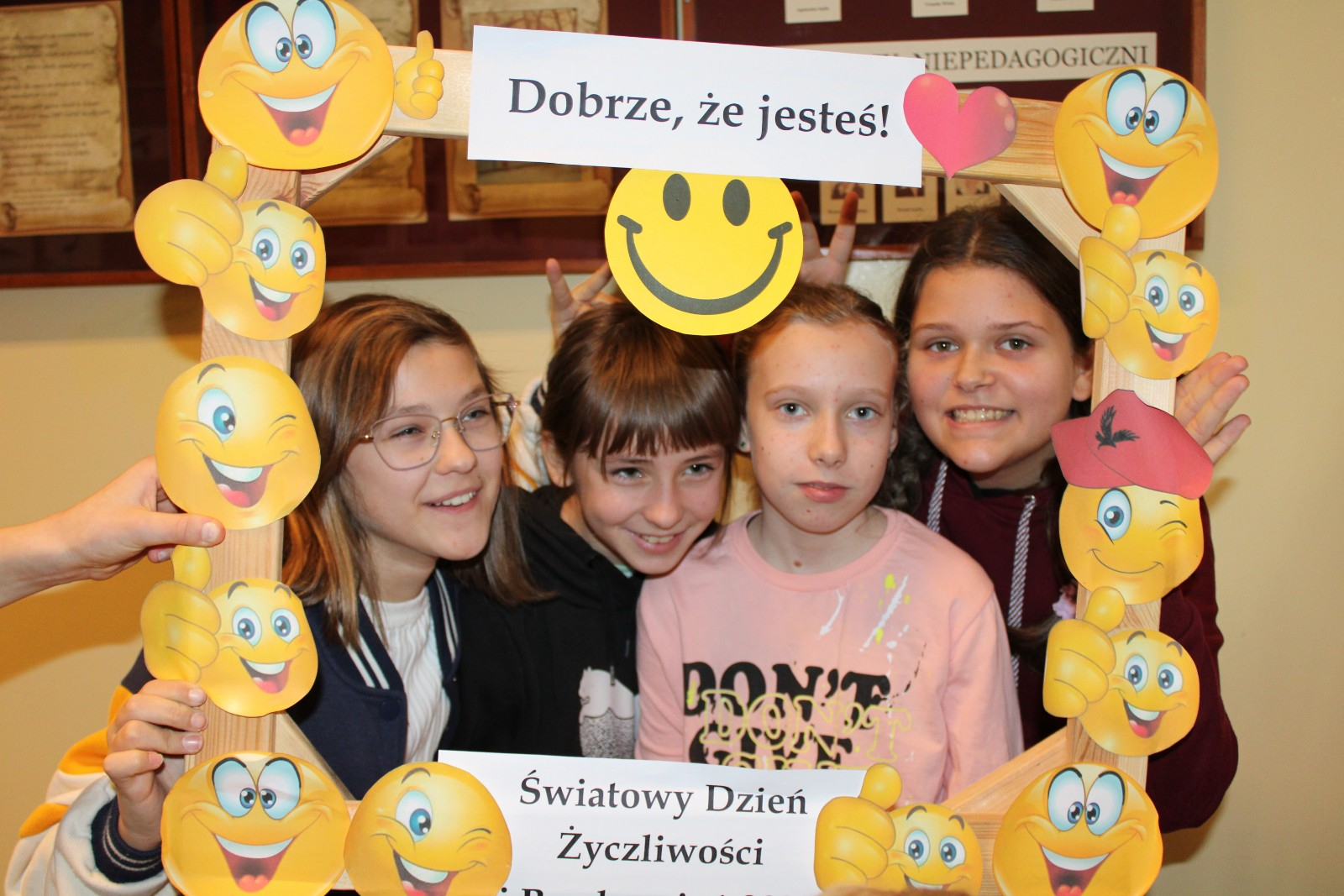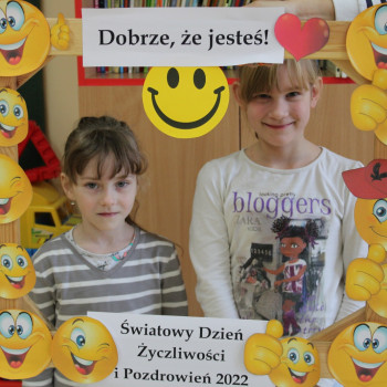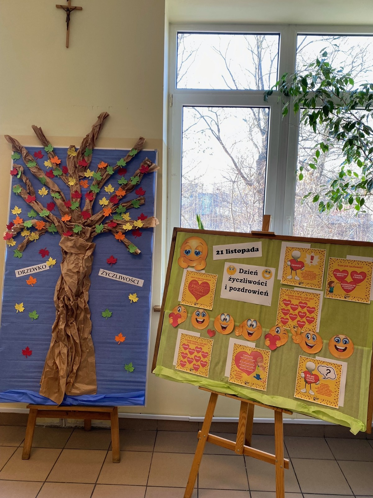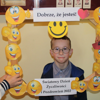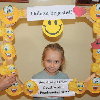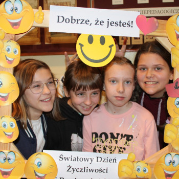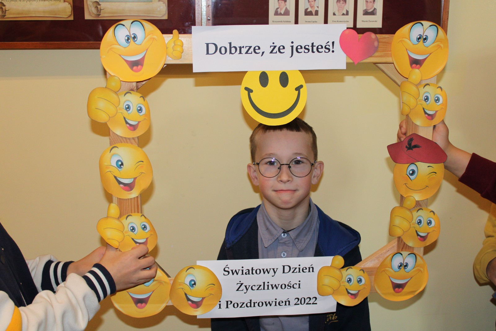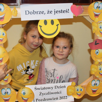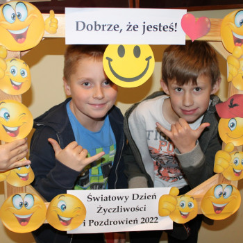 W poniedziałek 21 listopada 2022 roku obchodziliśmy w szkole Światowy Dzień Życzliwości i Pozdrowień. Z tej okazji pani pedagog przygotowała dwie gazetki tematyczne oraz „Drzewko Życzliwości”, na którym każdy z uczniów zawieszał swój liść z napisanym przez siebie miłym pozdrowieniem. W czasie długich przerw można było zrobić sobie zdjęcie w okolicznościowej ramce „Dobrze, że jesteś” przygotowaną przez panią pedagog na ten dzień. Przy okazji Dnia Życzliwości i Pozdrowień nie można było zapomnieć o naszej adopcyjnej siostrze Belsie. Uczniowie z pomocą pani Weroniki Golewskiej napisali list w języku angielskim oraz wykonali kartki na nadchodzące święta, które pani pedagog wysłała do Afryki.