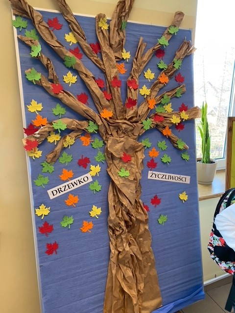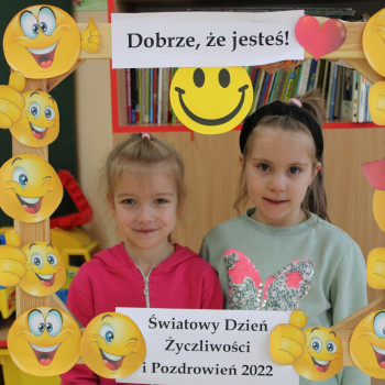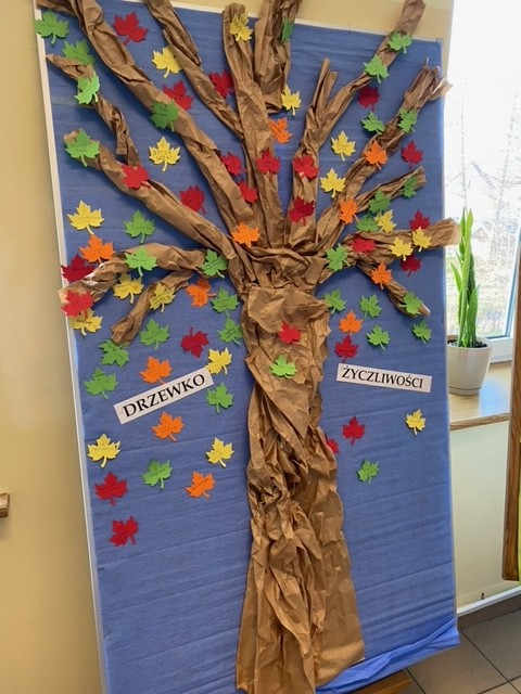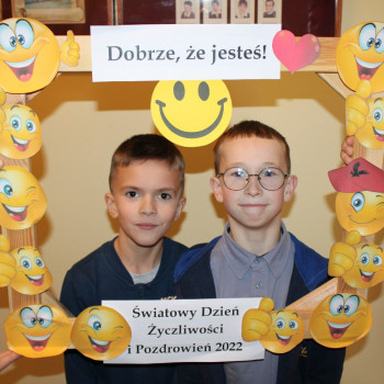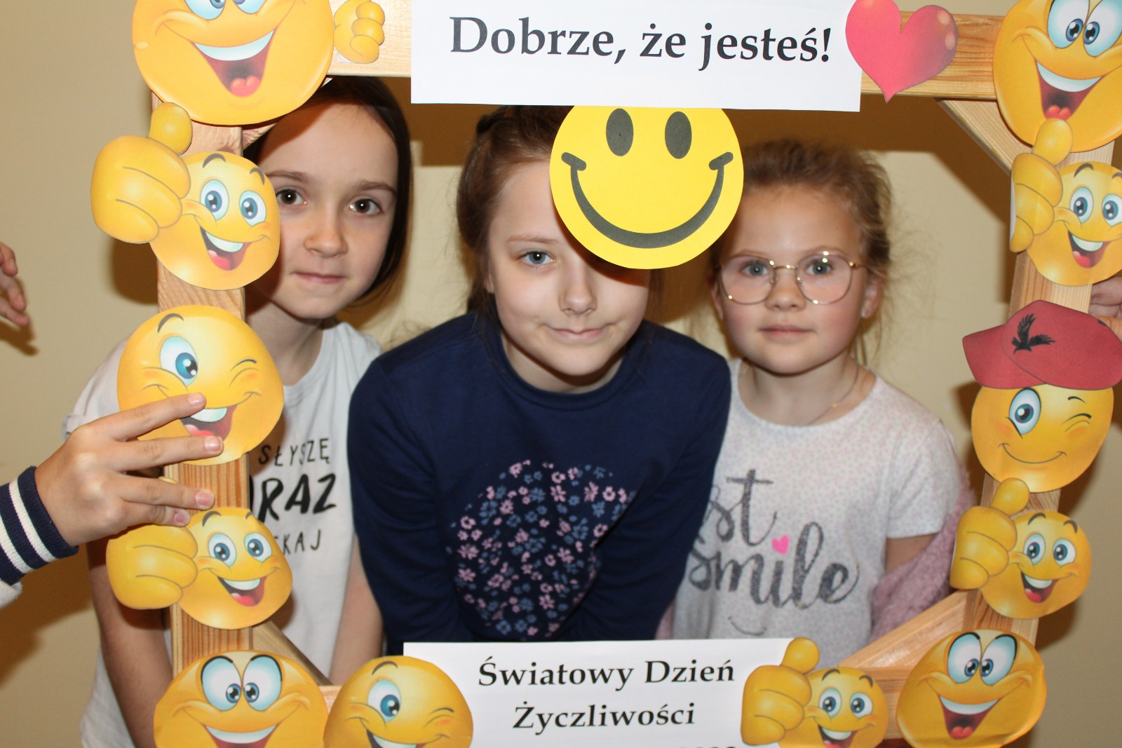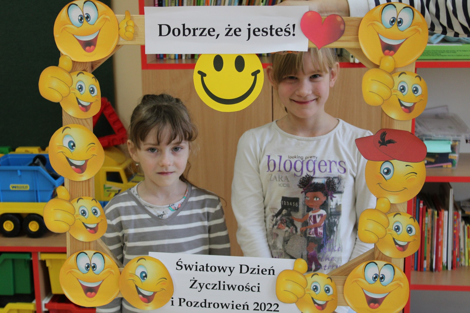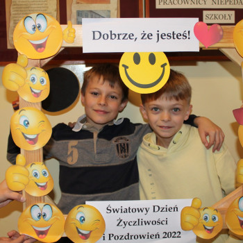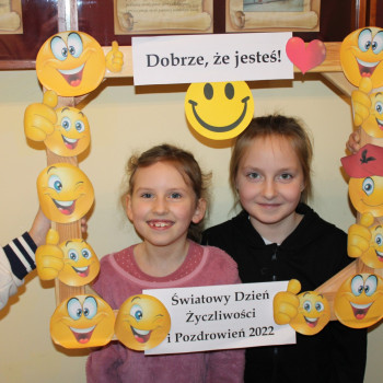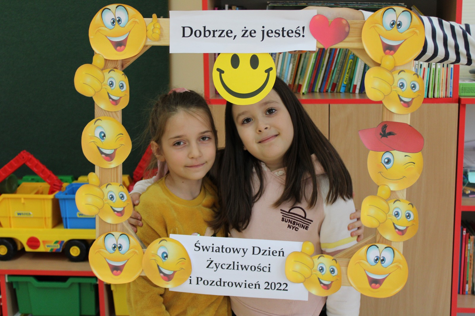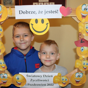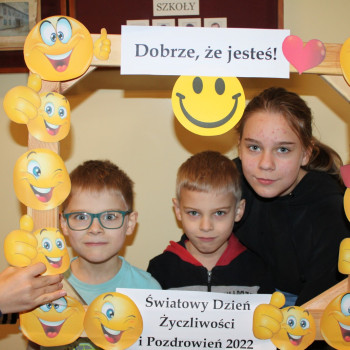 W poniedziałek 21 listopada 2022 roku obchodziliśmy w szkole Światowy Dzień Życzliwości i Pozdrowień. Z tej okazji pani pedagog przygotowała dwie gazetki tematyczne oraz „Drzewko Życzliwości”, na którym każdy z uczniów zawieszał swój liść z napisanym przez siebie miłym pozdrowieniem. W czasie długich przerw można było zrobić sobie zdjęcie w okolicznościowej ramce „Dobrze, że jesteś” przygotowaną przez panią pedagog na ten dzień. Przy okazji Dnia Życzliwości i Pozdrowień nie można było zapomnieć o naszej adopcyjnej siostrze Belsie. Uczniowie z pomocą pani Weroniki Golewskiej napisali list w języku angielskim oraz wykonali kartki na nadchodzące święta, które pani pedagog wysłała do Afryki.