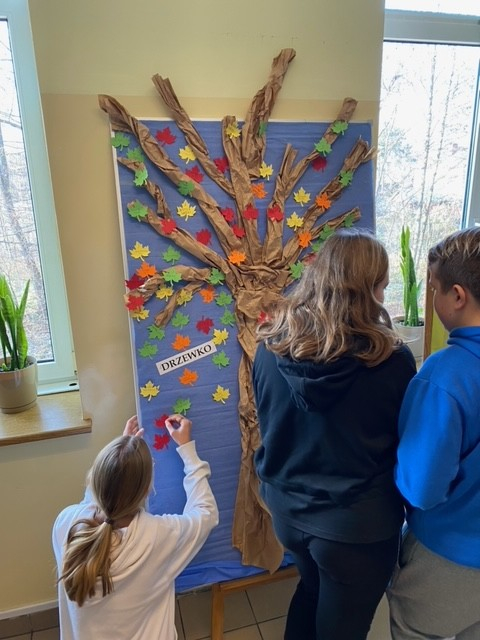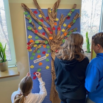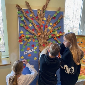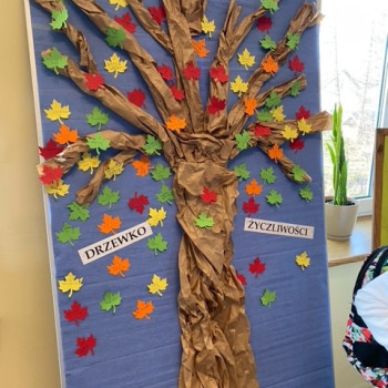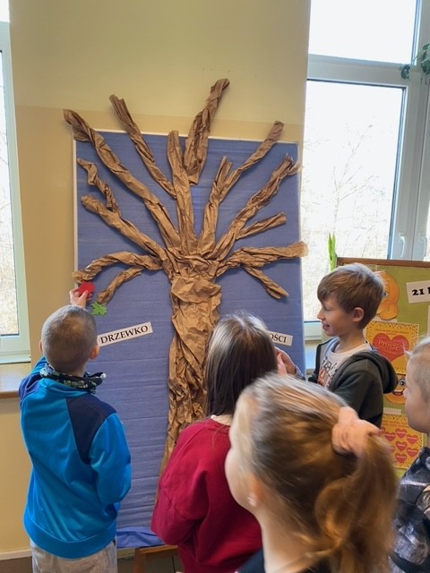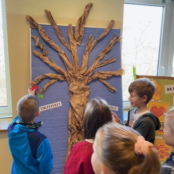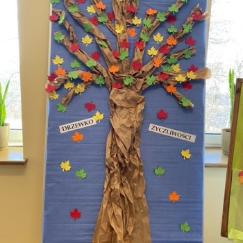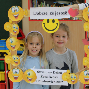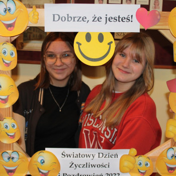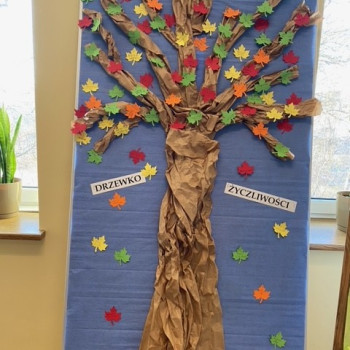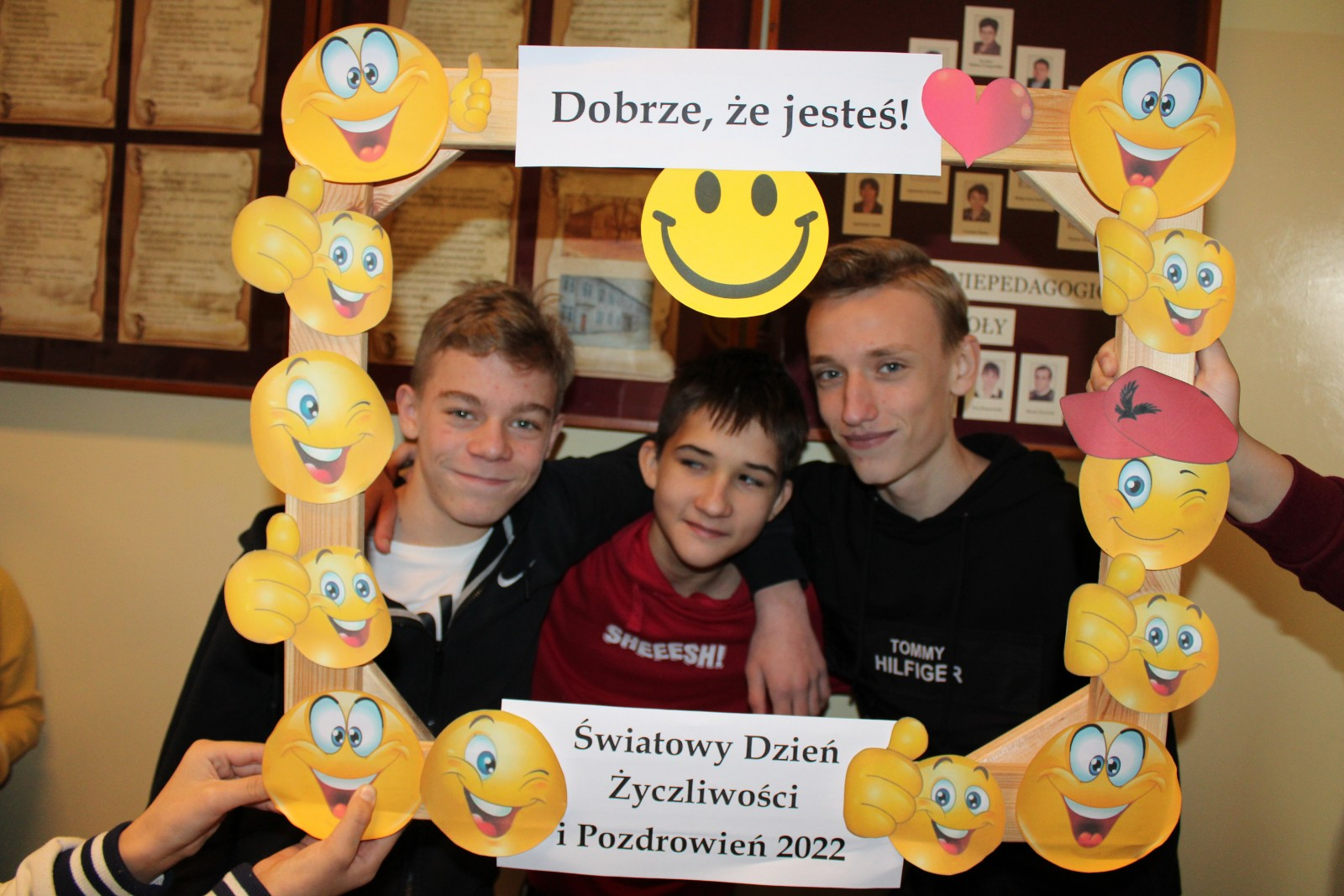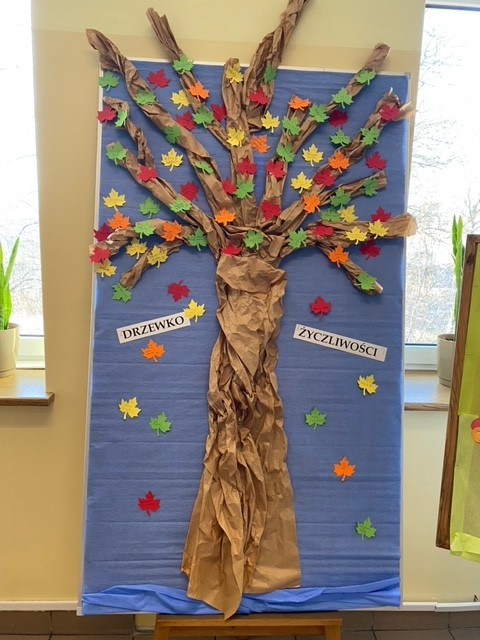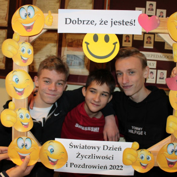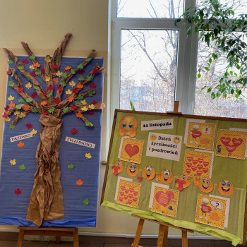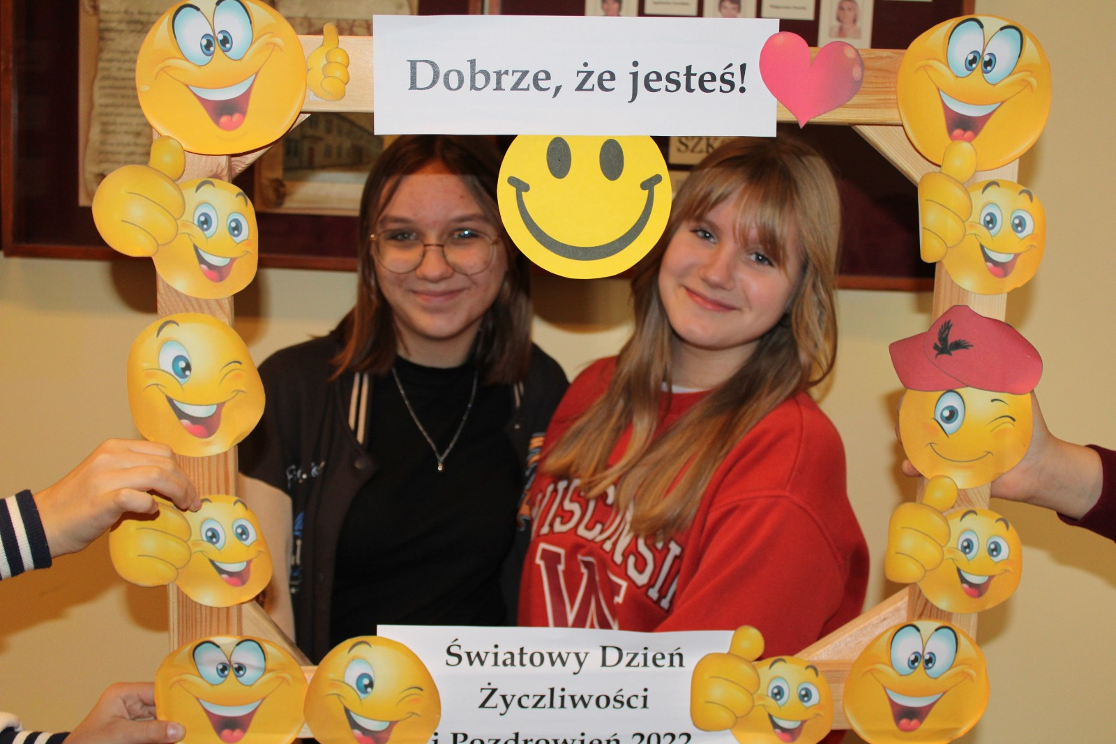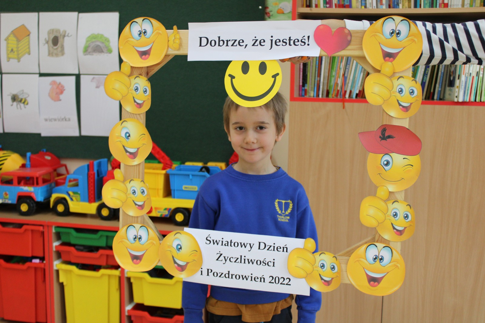 W poniedziałek 21 listopada 2022 roku obchodziliśmy w szkole Światowy Dzień Życzliwości i Pozdrowień. Z tej okazji pani pedagog przygotowała dwie gazetki tematyczne oraz „Drzewko Życzliwości”, na którym każdy z uczniów zawieszał swój liść z napisanym przez siebie miłym pozdrowieniem. W czasie długich przerw można było zrobić sobie zdjęcie w okolicznościowej ramce „Dobrze, że jesteś” przygotowaną przez panią pedagog na ten dzień. Przy okazji Dnia Życzliwości i Pozdrowień nie można było zapomnieć o naszej adopcyjnej siostrze Belsie. Uczniowie z pomocą pani Weroniki Golewskiej napisali list w języku angielskim oraz wykonali kartki na nadchodzące święta, które pani pedagog wysłała do Afryki.