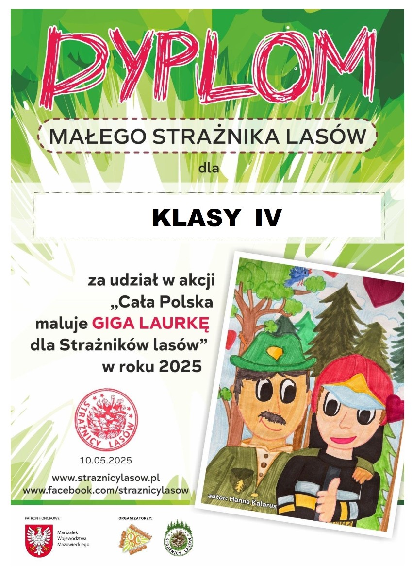 Nasza szkoła wzięła udział w ogólnopolskiej akcji ,,Giga Laurka dla Strażników Lasów” pod patronatem Marszałka Województwa mazowieckiego i Kuratora Oświaty.