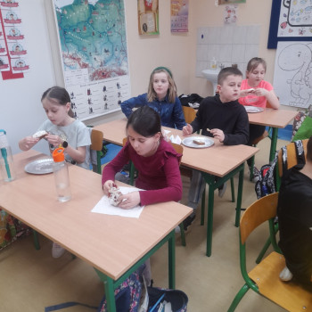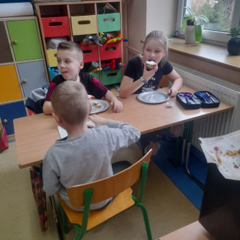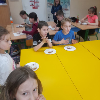 Uczniowie w klasie II miały zaszczyt uczyć się piec babke pod czujnym okiem Pań.