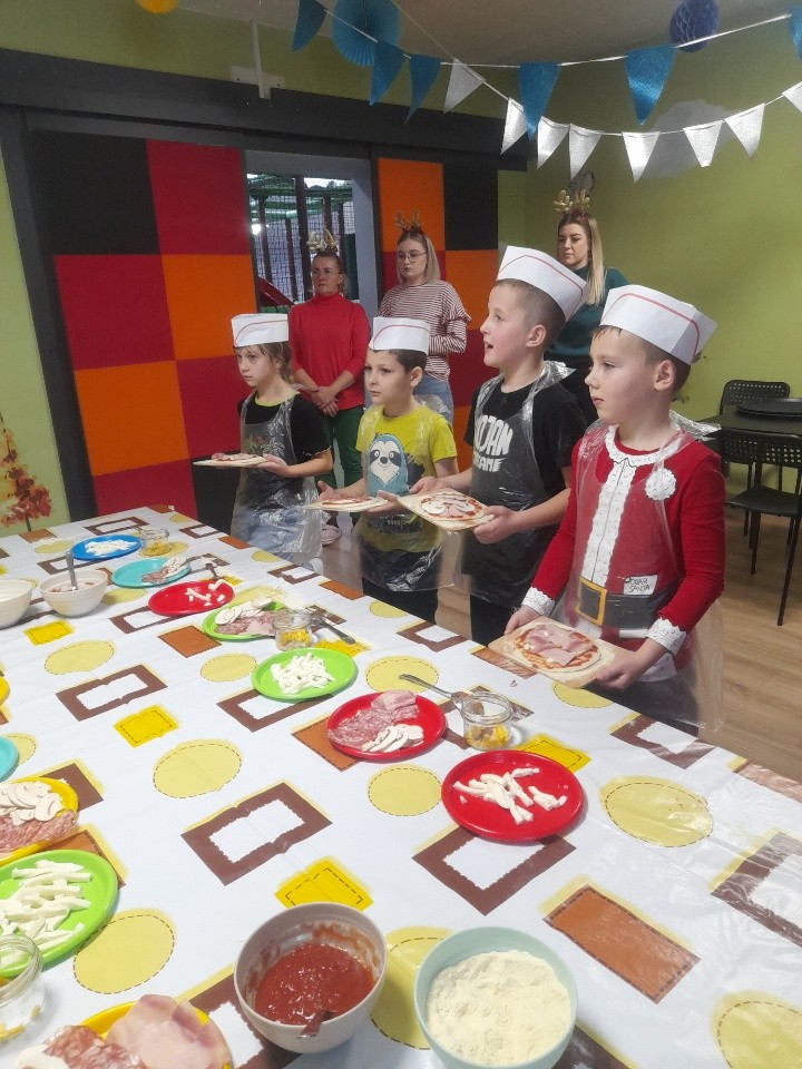 Mikołajki to dzień ,na który dzieci czekają z niecierpliwością.W tym roku uczniowie III klasy w Mikołajki wybrali się na wycieczkę do Goniwilka Nowego do Manufaktury Smaku i Zabawy. Jedną z atrakcji były warsztaty kulinarne, podczas których dzieci przygotowywały swoją pizzę. W sali zabaw można było skorzystać m.in. z basenu z kulkami,mniejszych i większych zjeżdżalni, piętrowych labiryntów. Na koniec niespodzianka. Do dzieci przybył Mikołaj.To był dzień pełen wrażeń,było świetnie.