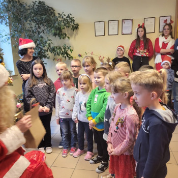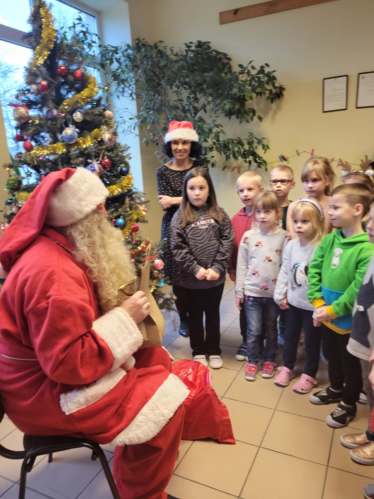 Dzień Mikołajkowy w oddziale przedszkolnym rozpoczeliśmy od wyjazdu, w którego organizację zaangażowali się rodzice dzieci jako mikołajkowy prezent. W autobusie dzieci wesoło śpiewały. Pojechalismy do kina w Garwolinie na film: "Kierunek księzyc". Przed seansem pracownicy kina przygotowali niespodziankę. Odbyło sie losowanie. Dla wylosowanych osób były prezenty. W szkole też niespodzianka. Dzieci odwiedził Mikołaj. Dla każdej klasy przyniósł torbę cukierków.