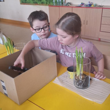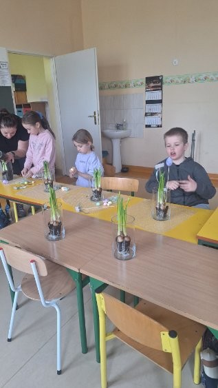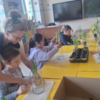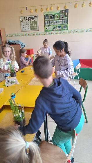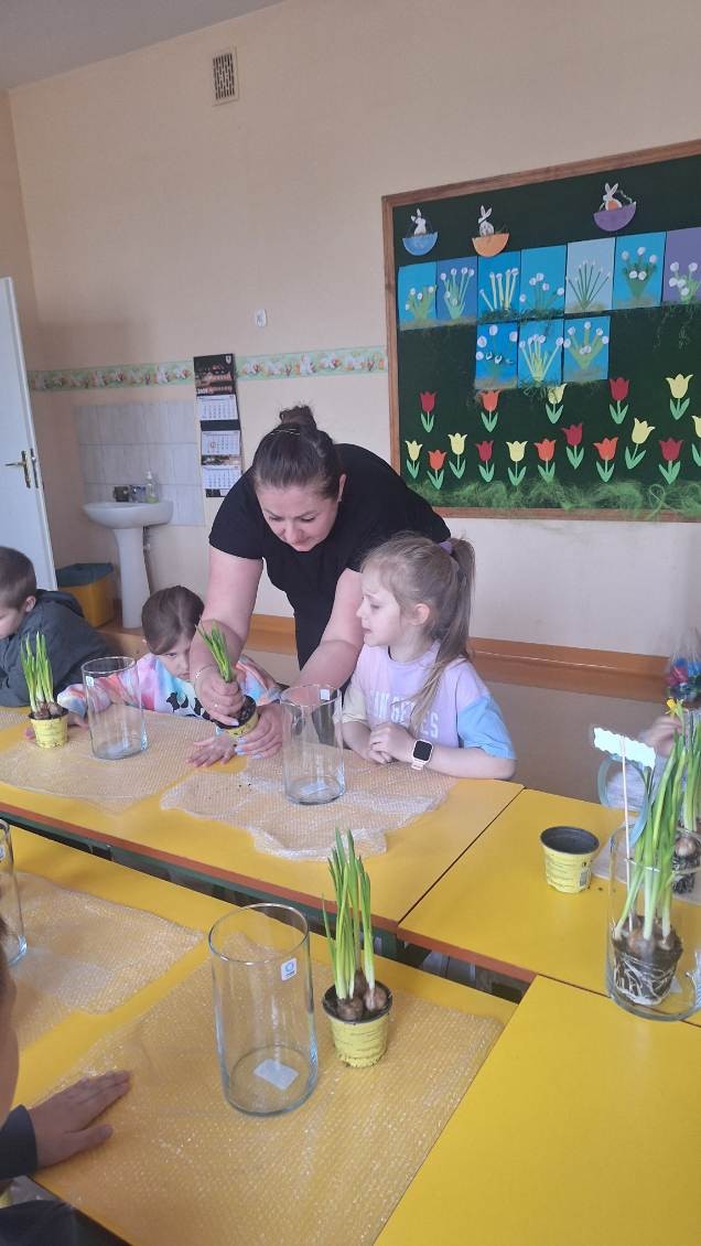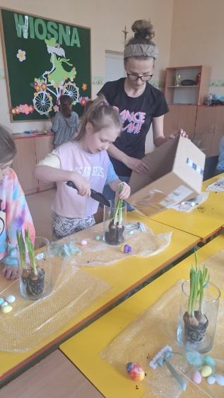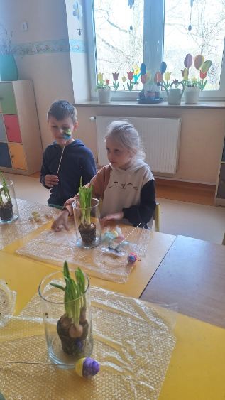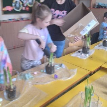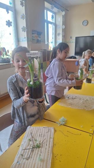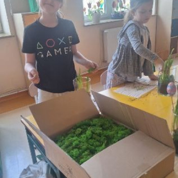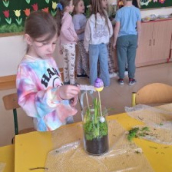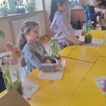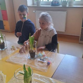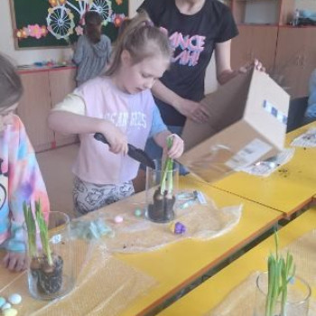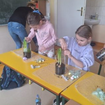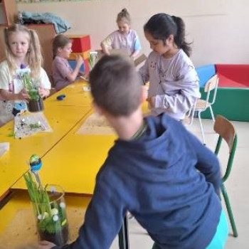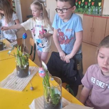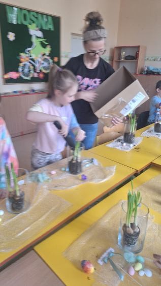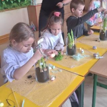 Święta Wielkanocne to radosny czas,który kojarzy się z wiosną,pisankami,palmami,baziami.Dnia 15 kwietnia uczniowie klasy 1 wzięli udział w warsztatach wielkanocnych.Podczas zajęć dzieci rozwijały swoje zdolności plastyczne,manualne,kreatywność,wykonując ozdoby wielkanocne w słoiku.