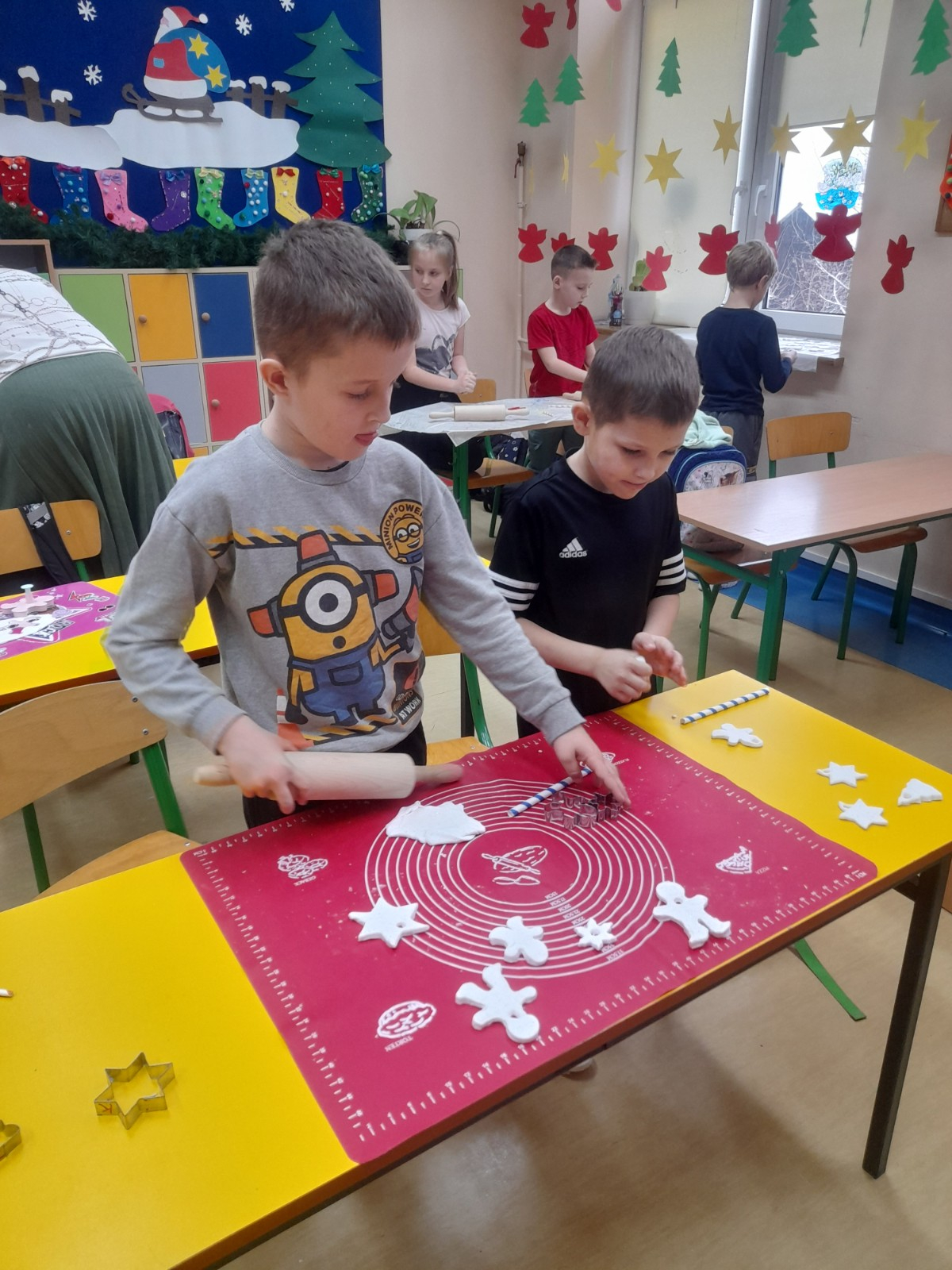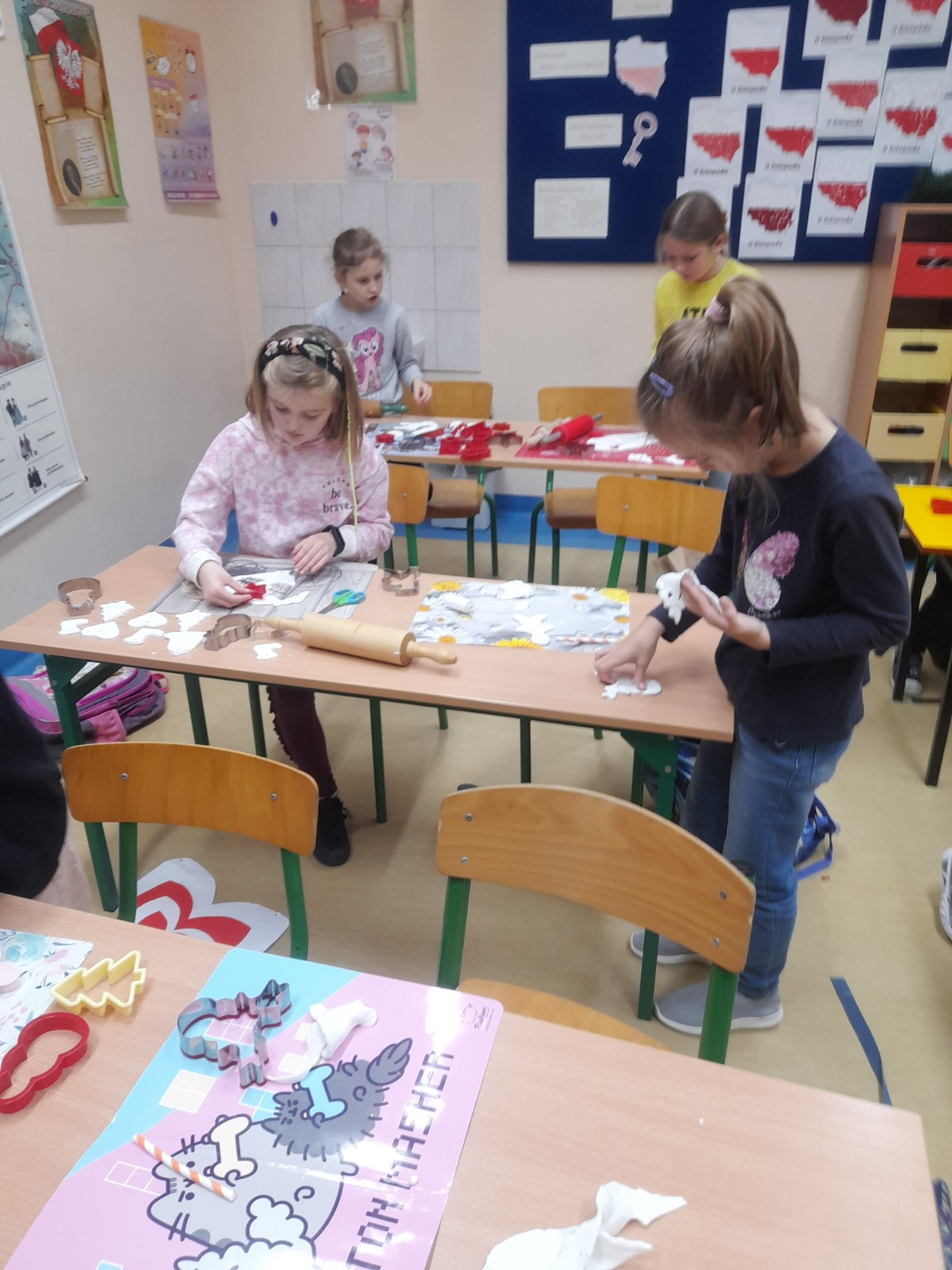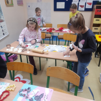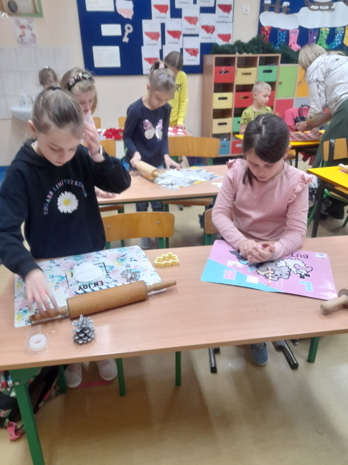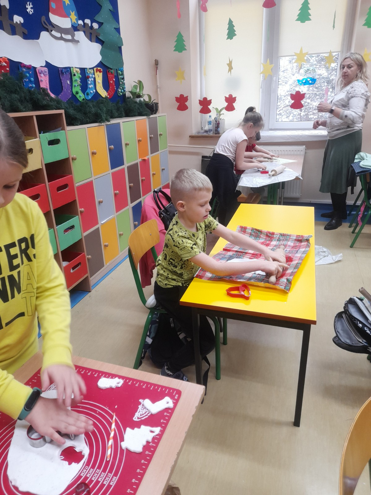 Trwaja przygotowania do świąt. Uczniowie klasy II robią ozdoby choinkowe z masy porcelanowej pod bacznym okiem Pani Danusi i Joasi. Praca dała dzieciom wiele satysfakcji. Teraz trzeba tylko poczekać aż wszystko wyschnie i zostanie powieszone na choince.