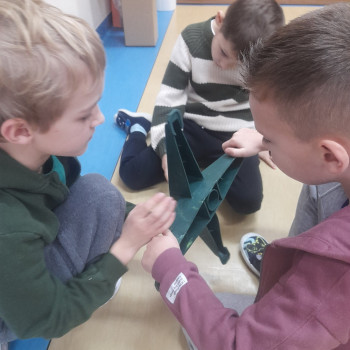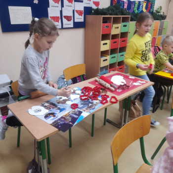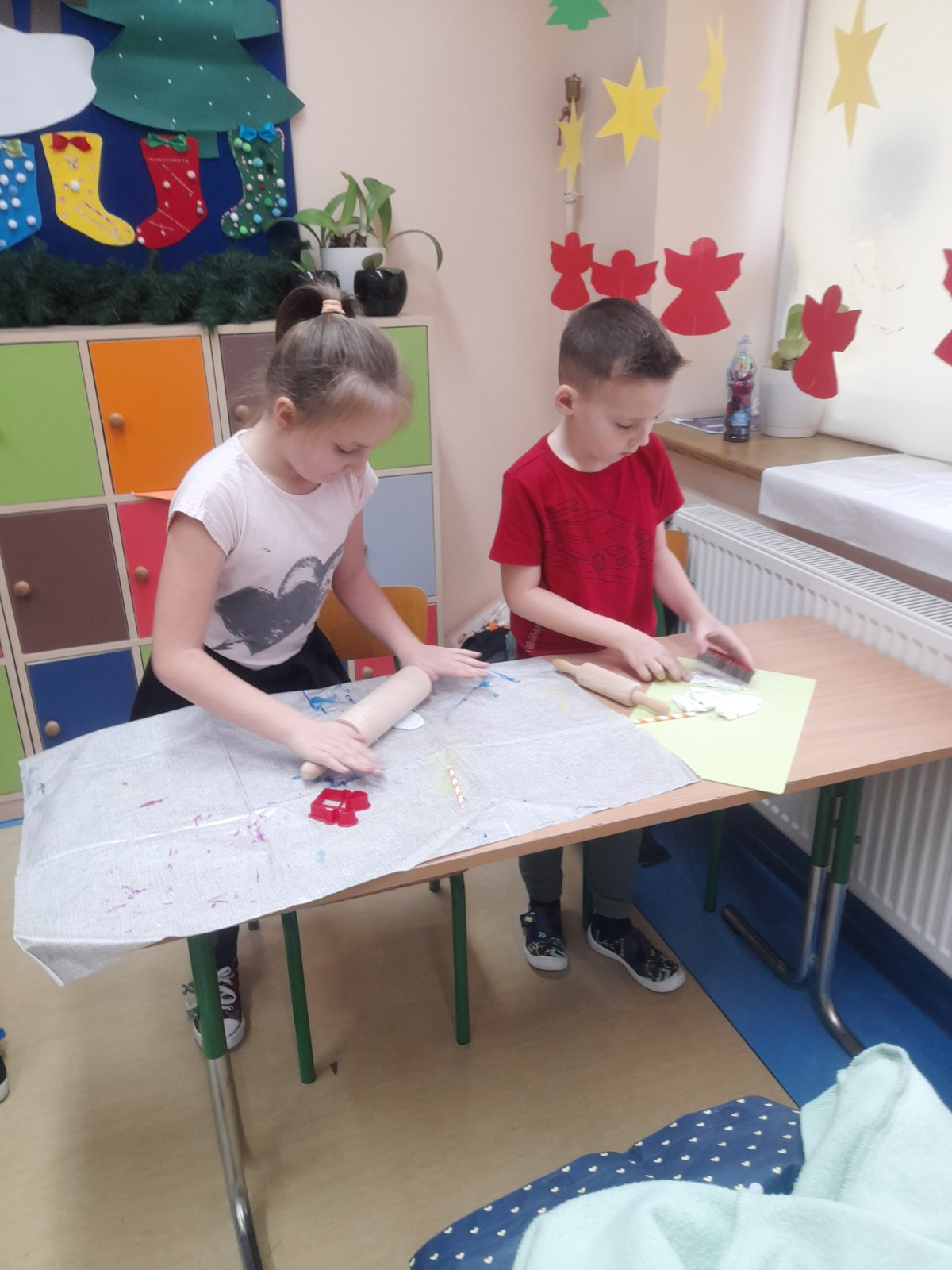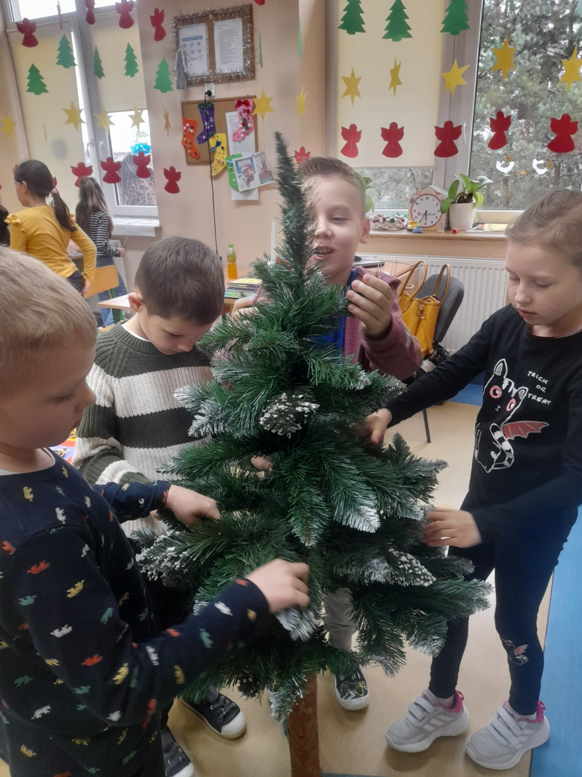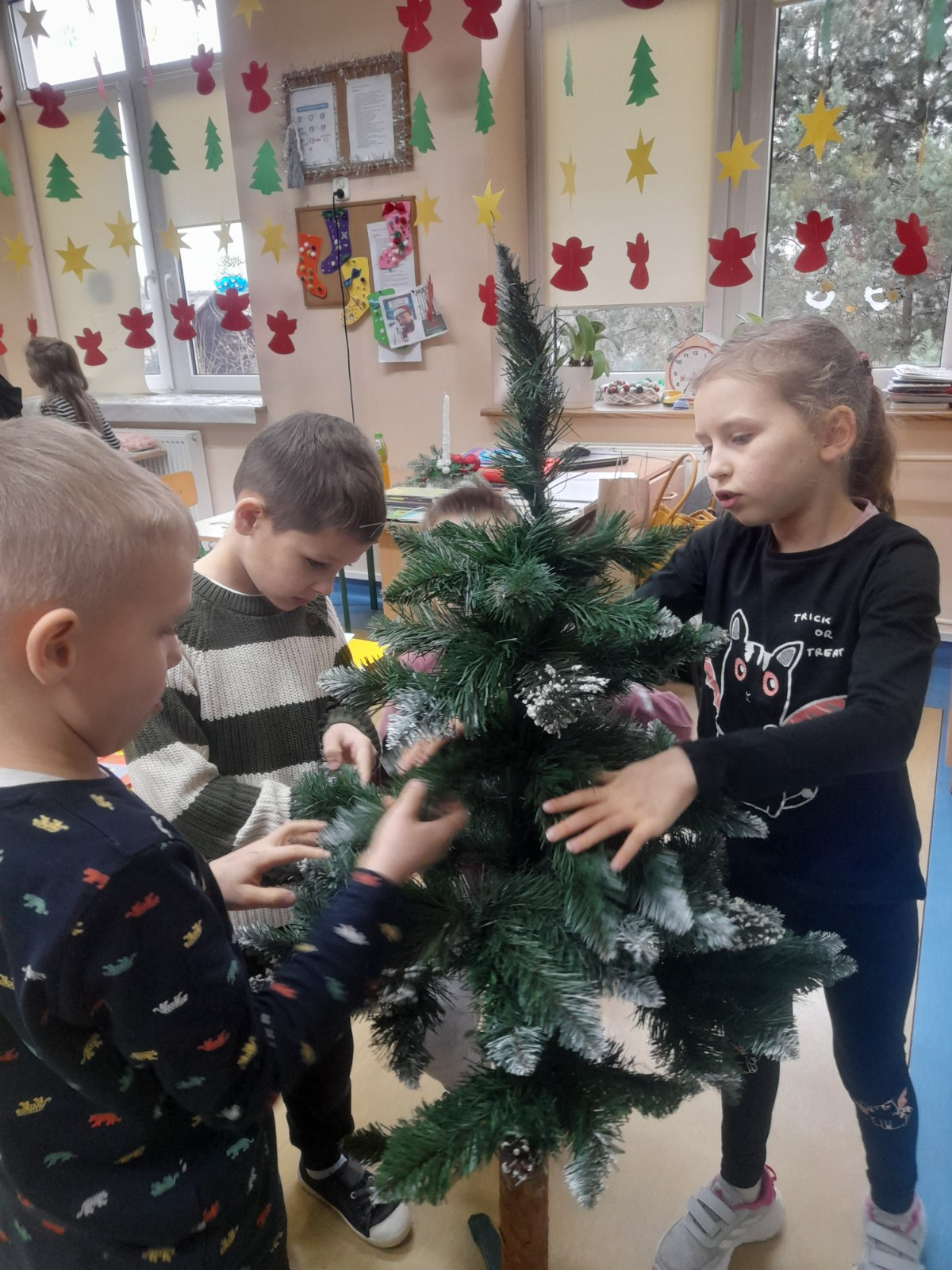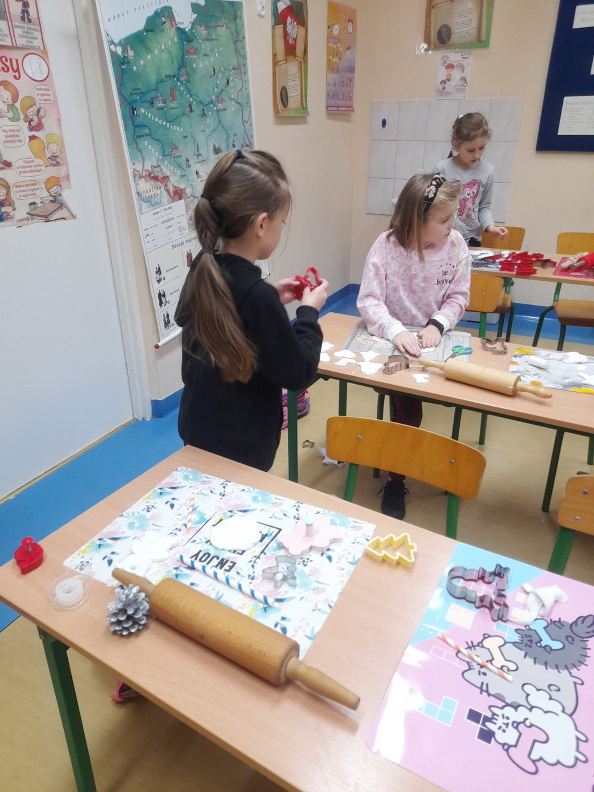 Trwaja przygotowania do świąt. Uczniowie klasy II robią ozdoby choinkowe z masy porcelanowej pod bacznym okiem Pani Danusi i Joasi. Praca dała dzieciom wiele satysfakcji. Teraz trzeba tylko poczekać aż wszystko wyschnie i zostanie powieszone na choince.