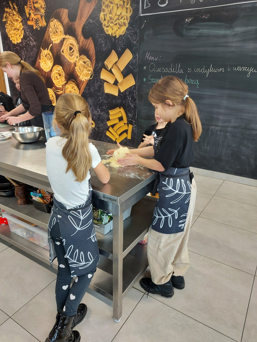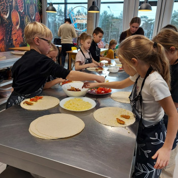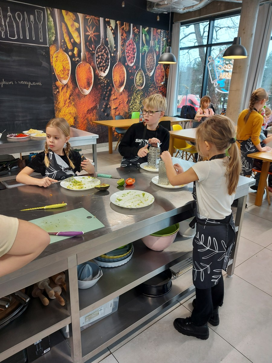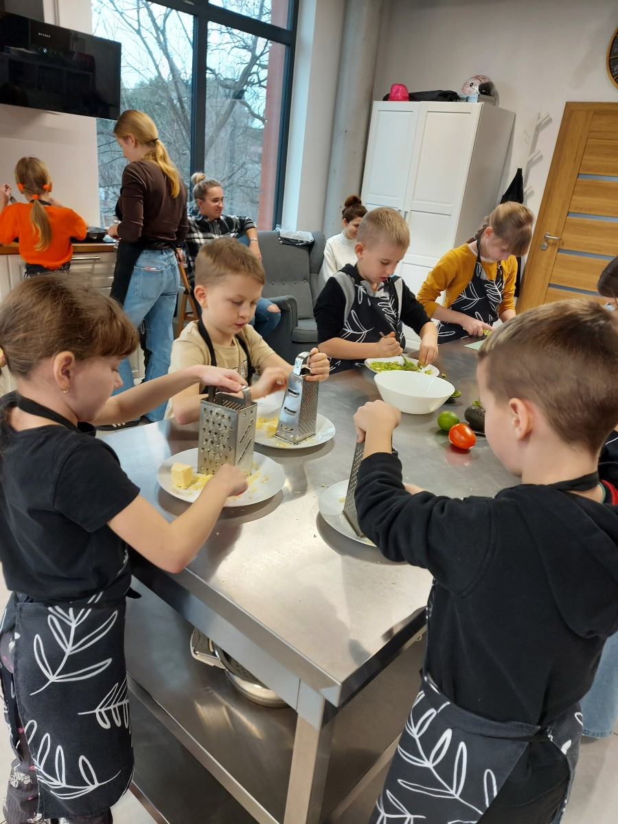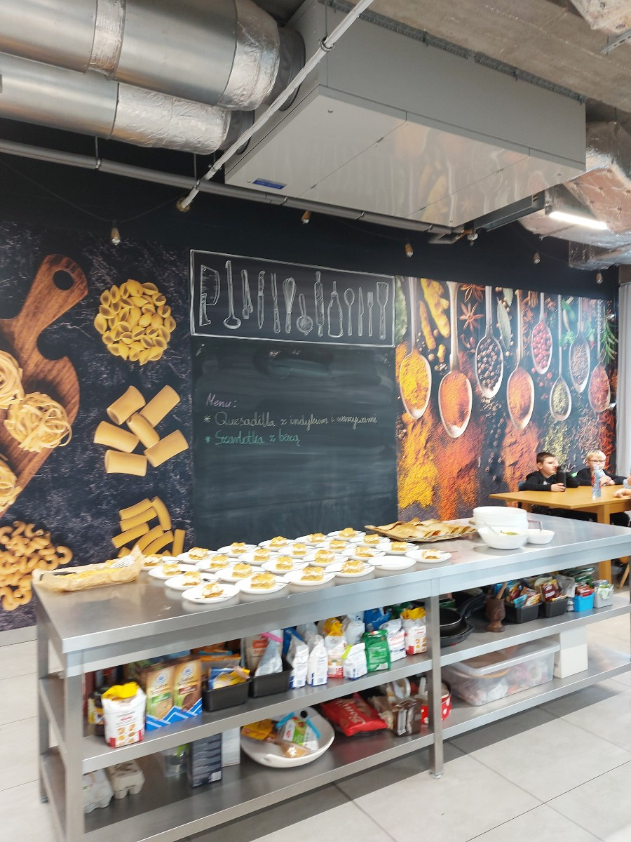 Od podstaw przygotowali danie kuchni meksykańskiej: Quesadilla z warzywami i indykiem, a także deser na ciepło: szarlotkę z bezą. Wyjazd na warsztaty był okazją do zainteresowania Uczniów umiejętnościami kulinarnymi, a także kształcenia u Uczniów umiejętności samodzielnego przygotowywania posiłków i wdrażania zasad higieny.