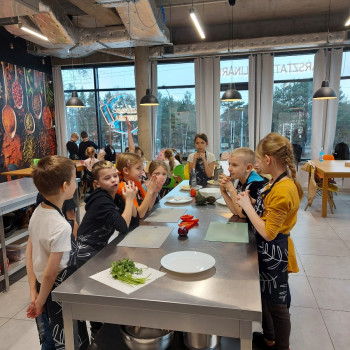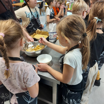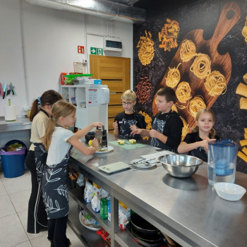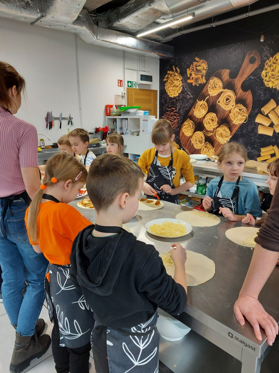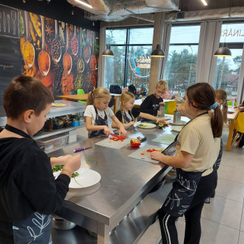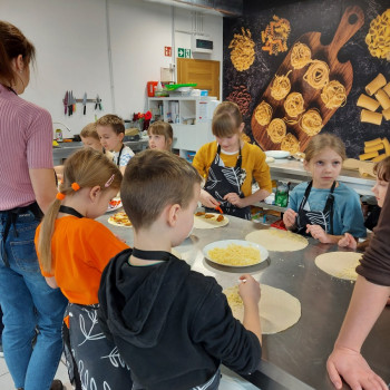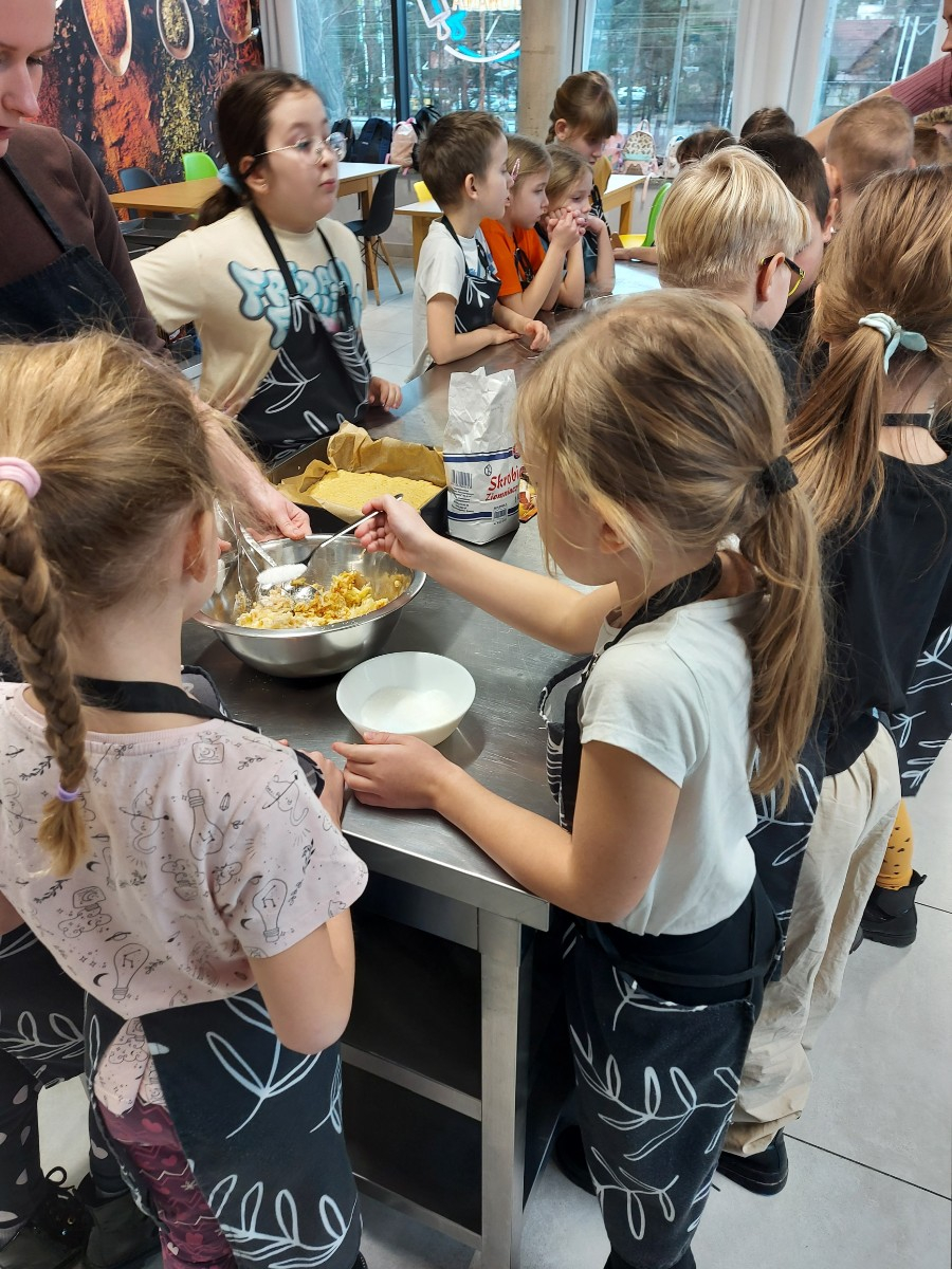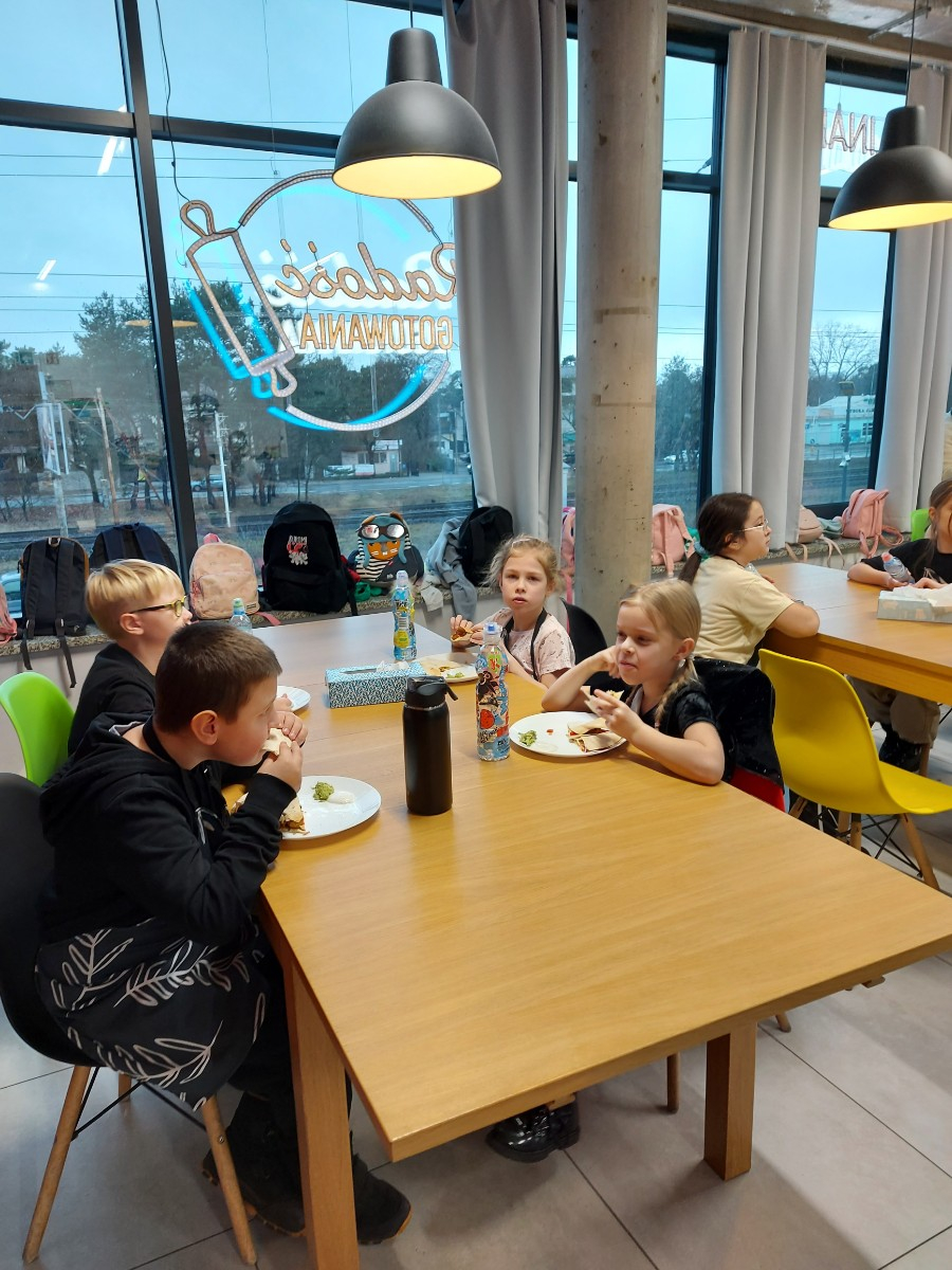 Od podstaw przygotowali danie kuchni meksykańskiej: Quesadilla z warzywami i indykiem, a także deser na ciepło: szarlotkę z bezą. Wyjazd na warsztaty był okazją do zainteresowania Uczniów umiejętnościami kulinarnymi, a także kształcenia u Uczniów umiejętności samodzielnego przygotowywania posiłków i wdrażania zasad higieny.