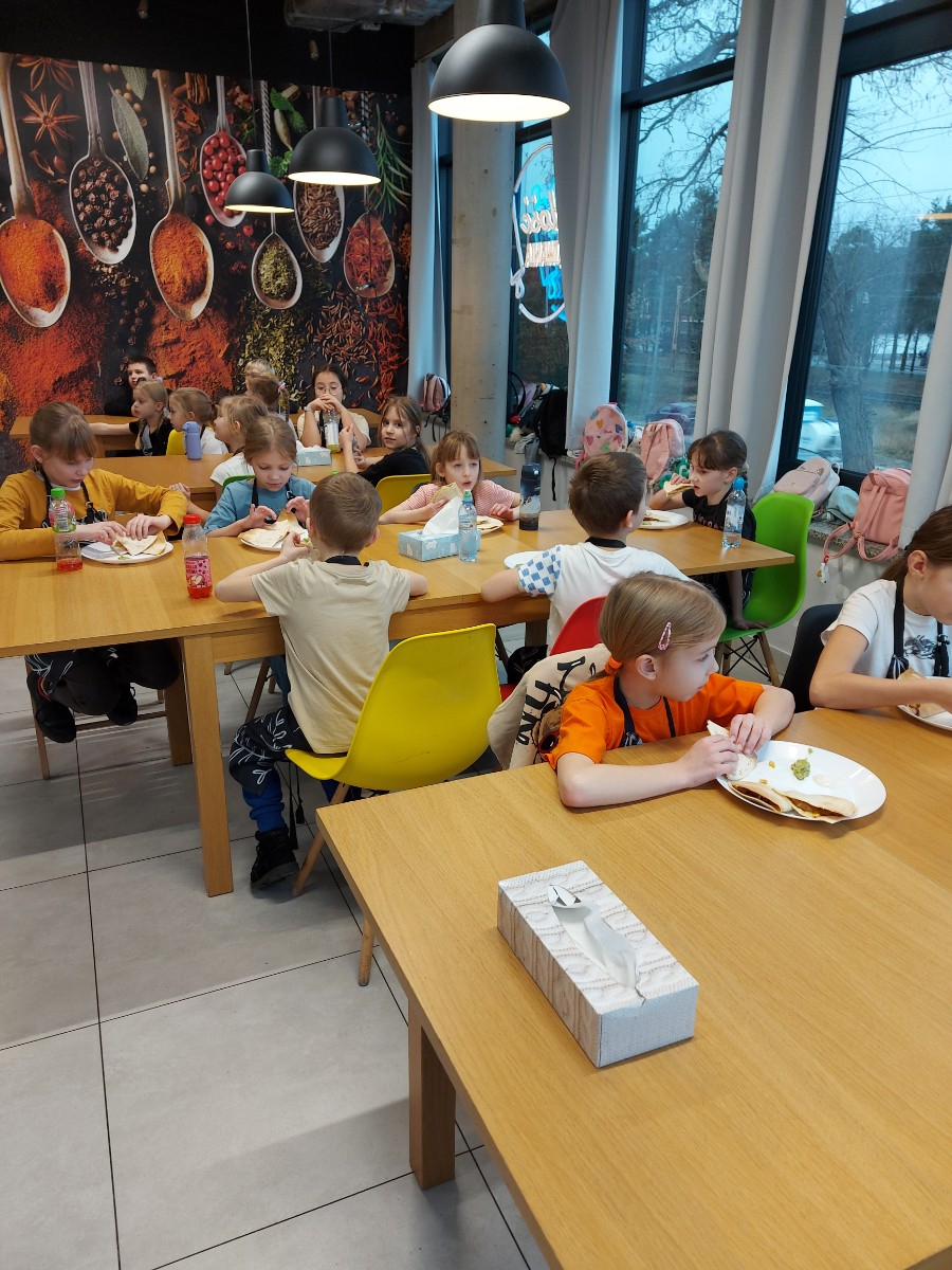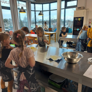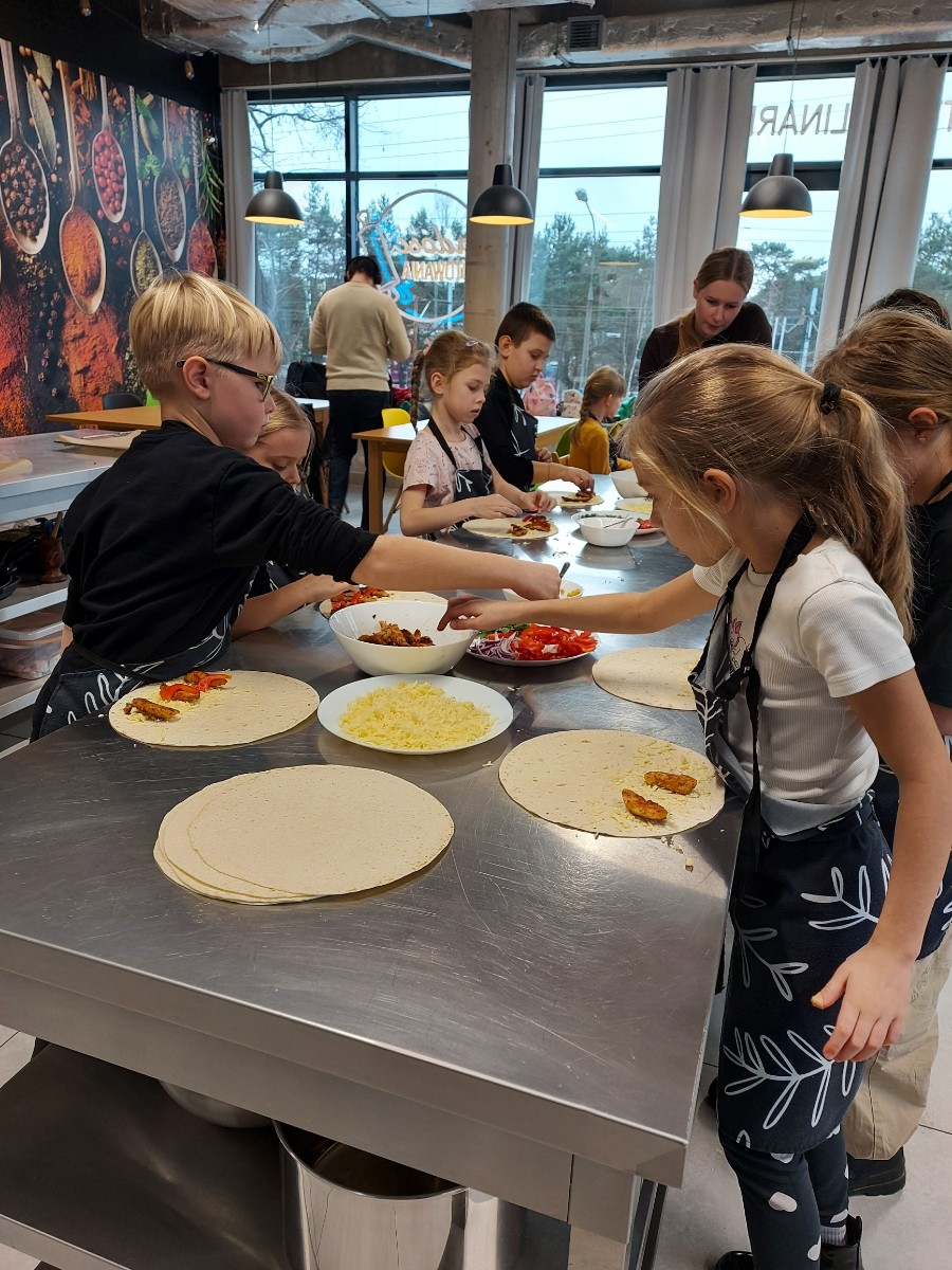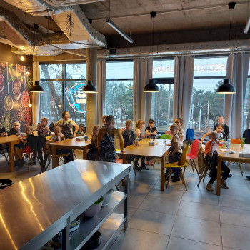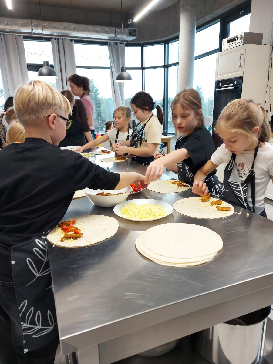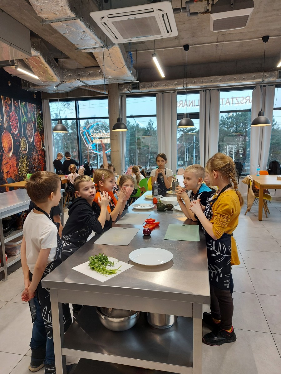Od podstaw przygotowali danie kuchni meksykańskiej: Quesadilla z warzywami i indykiem, a także deser na ciepło: szarlotkę z bezą. Wyjazd na warsztaty był okazją do zainteresowania Uczniów umiejętnościami kulinarnymi, a także kształcenia u Uczniów umiejętności samodzielnego przygotowywania posiłków i wdrażania zasad higieny.