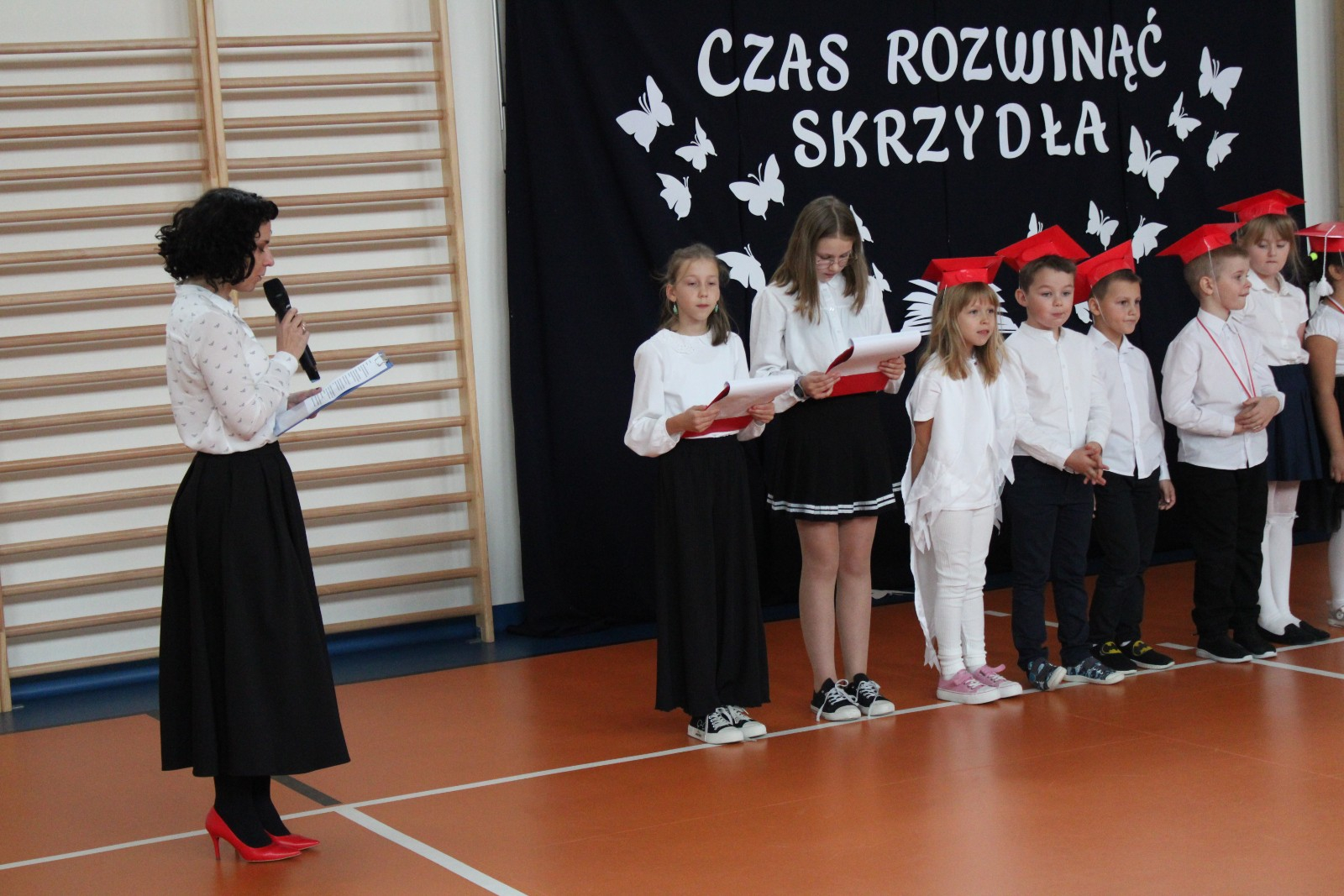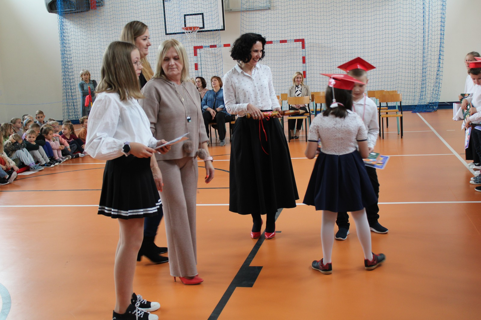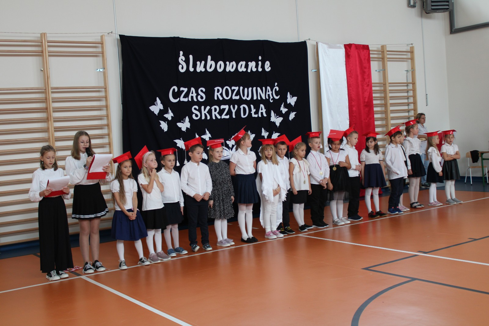 Społeczność szkolna powitała PIERWSZOKLASISTÓW gromkimi brawami.